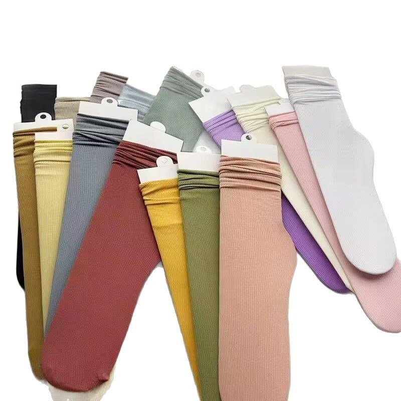堆堆袜女薄款冰冰袜色袜子女中筒袜夏天白色长袜冰丝袜长筒夏季