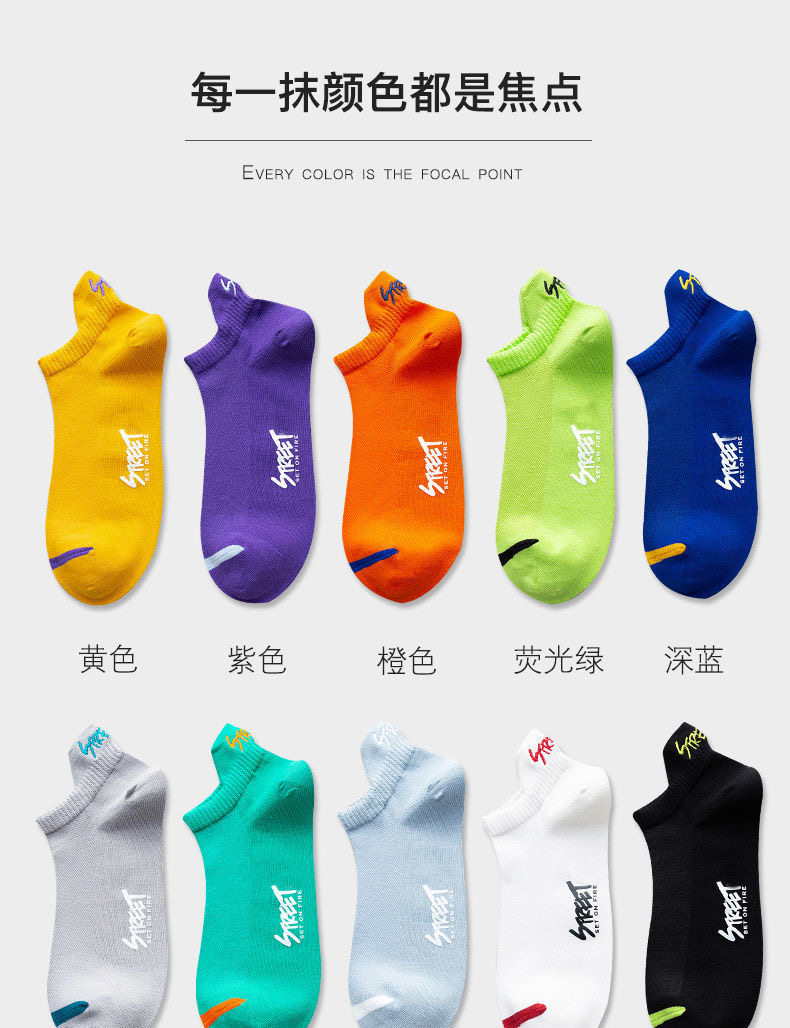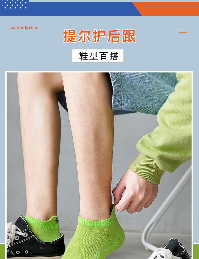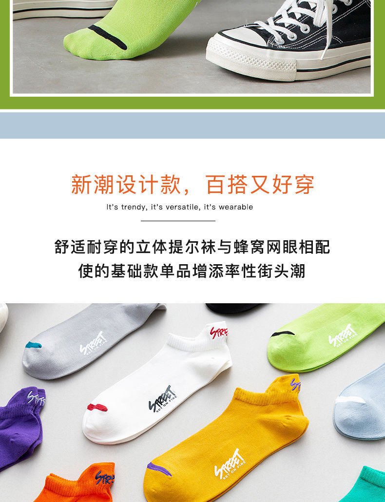 袜子男夏季薄款短袜网眼透气防臭韩版百搭低帮船袜彩色船袜ins潮
