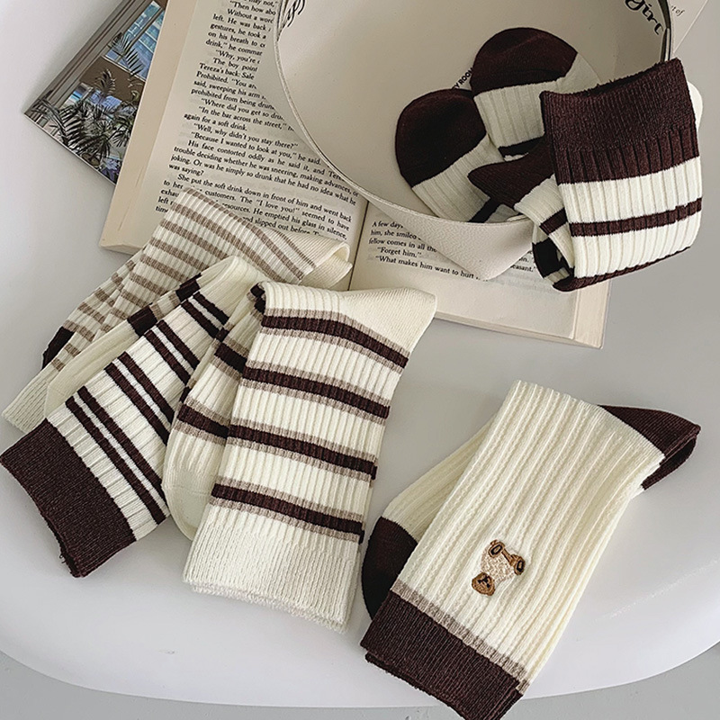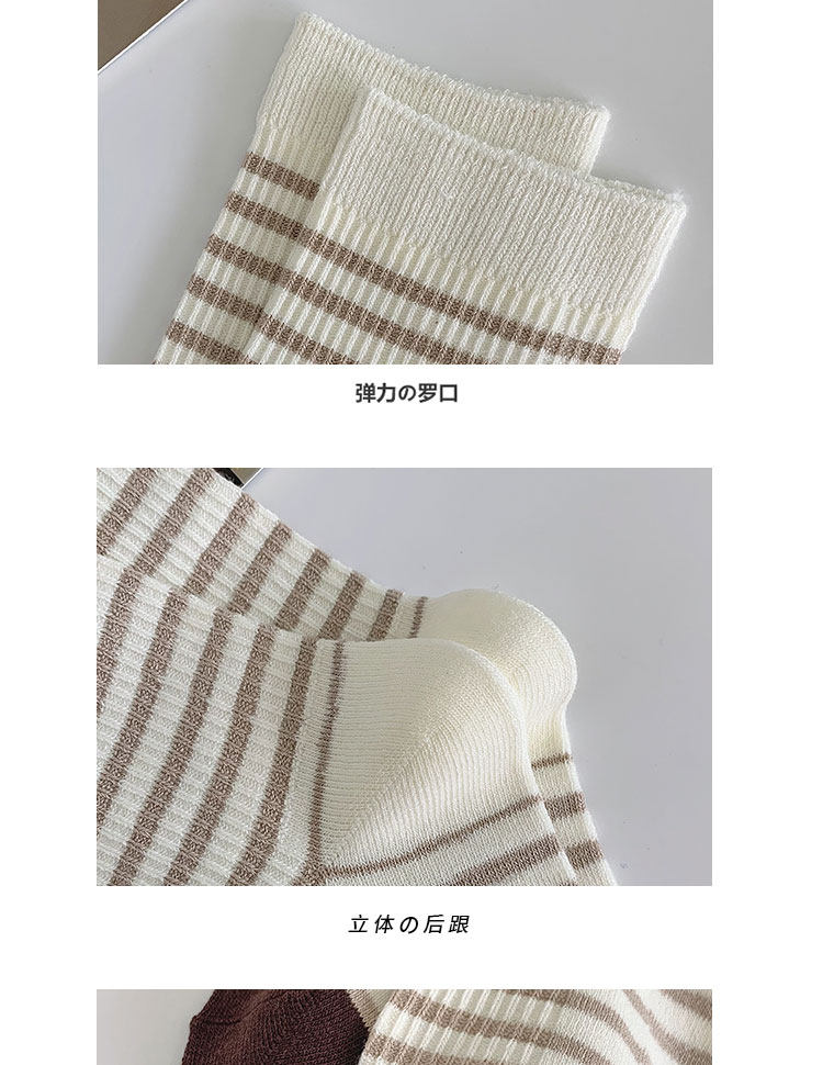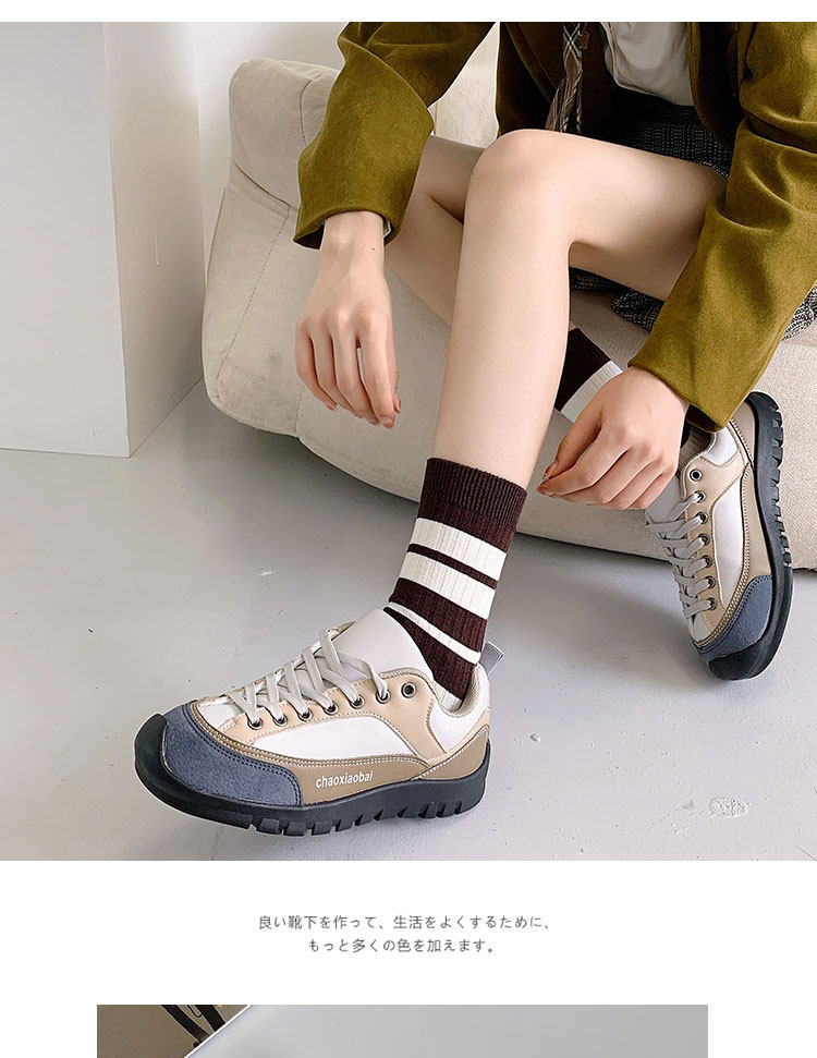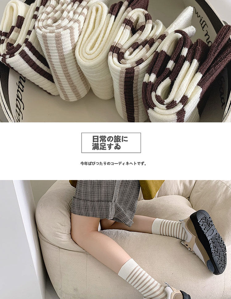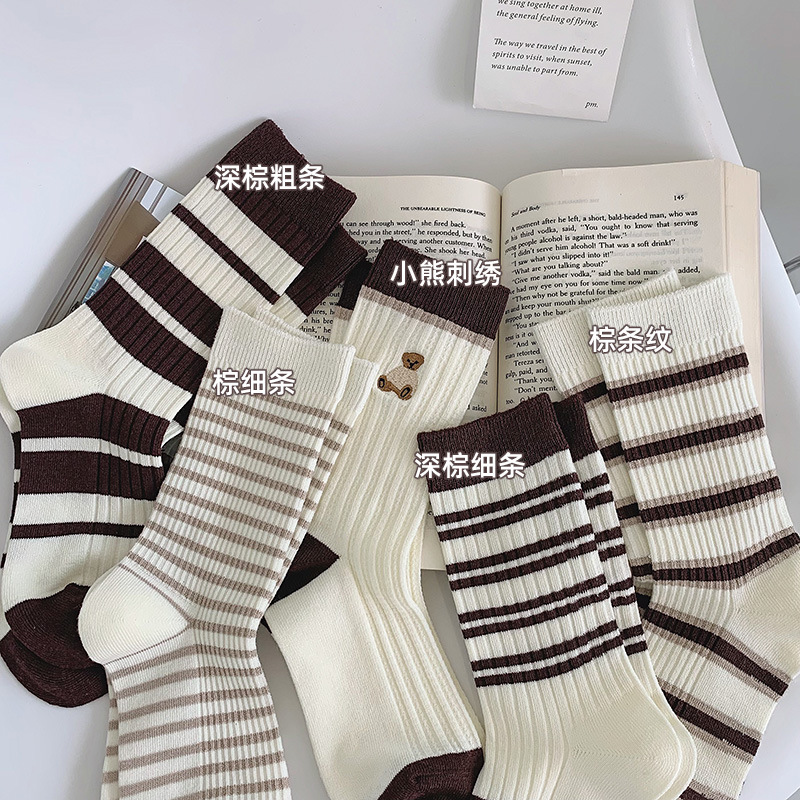棕色条纹袜子女中筒秋冬百搭棉ins潮复古咖色长筒运动春秋长袜