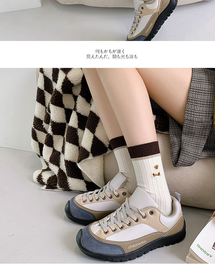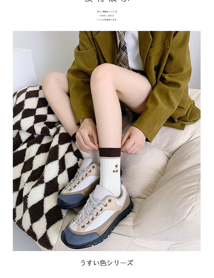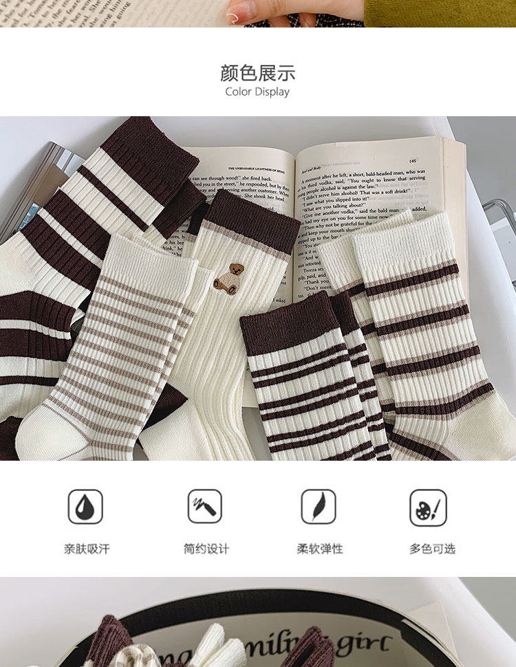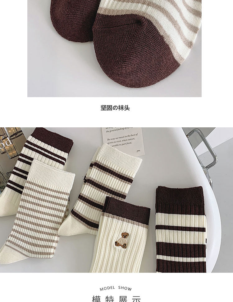 棕色条纹袜子女中筒秋冬百搭棉ins潮复古咖色长筒运动春秋长袜