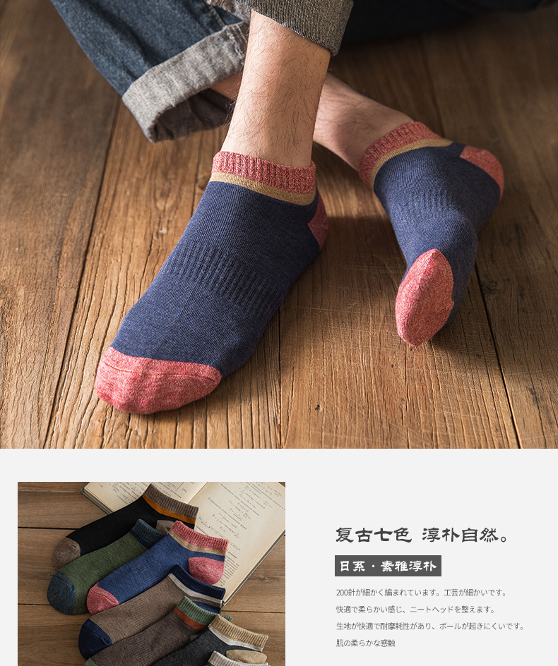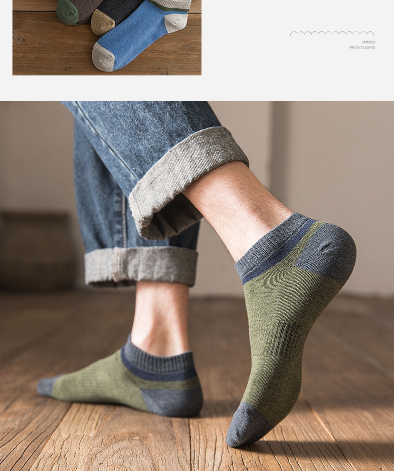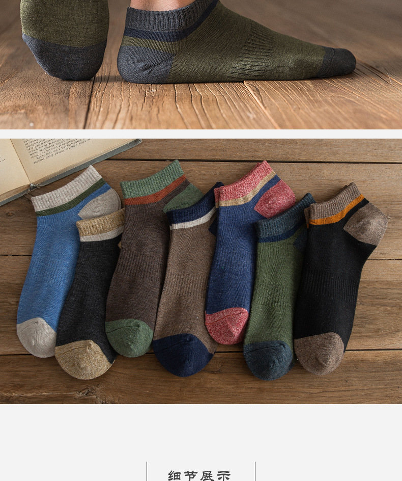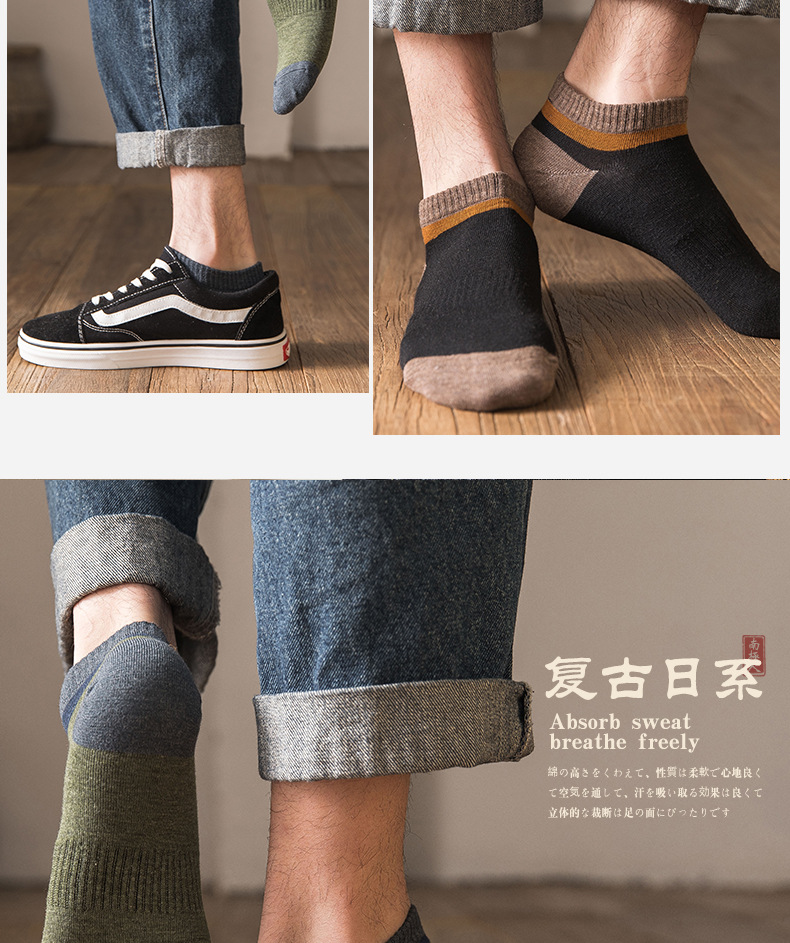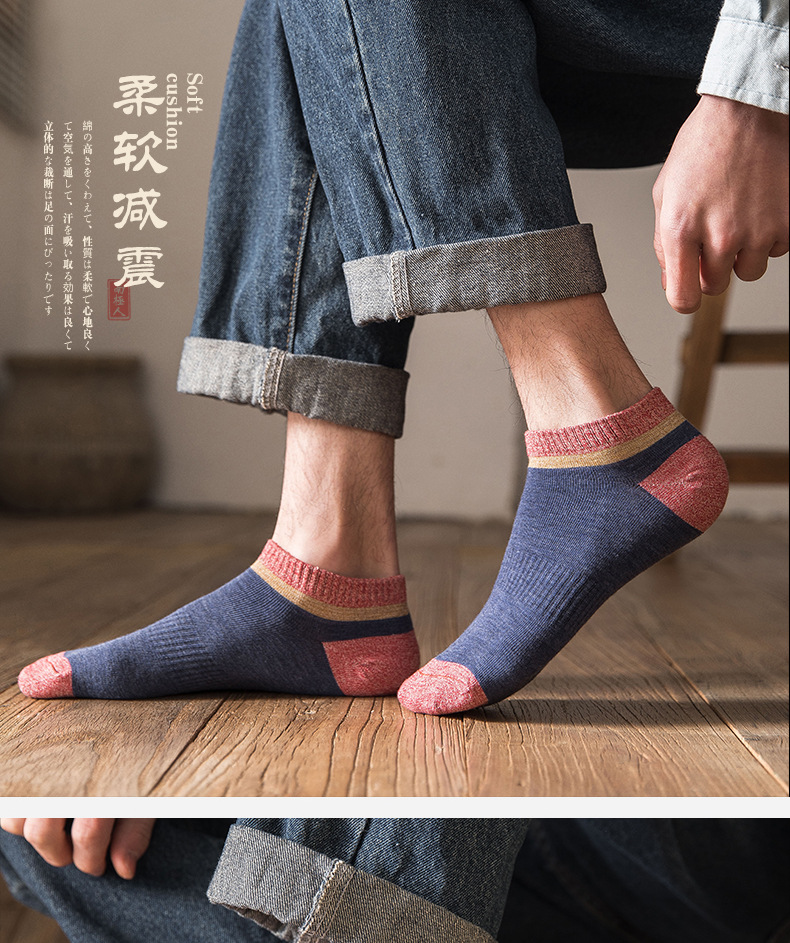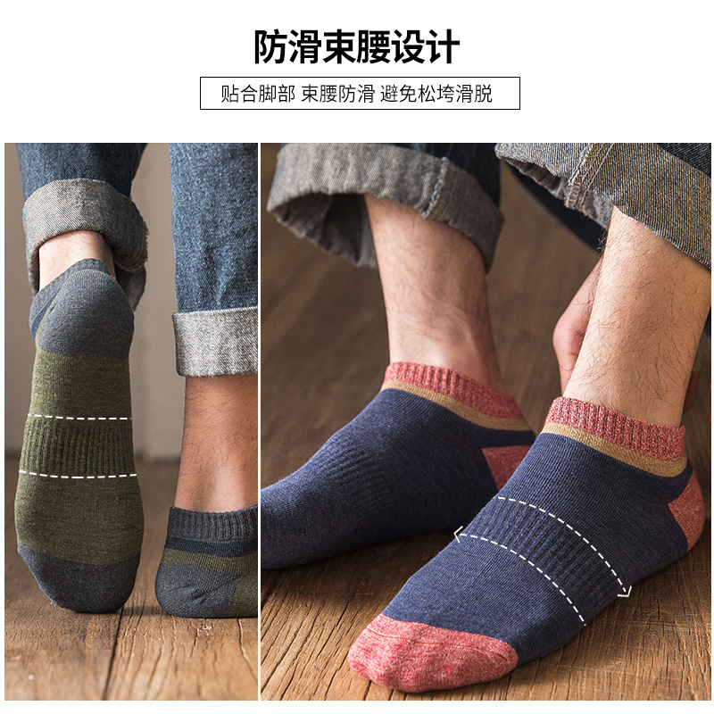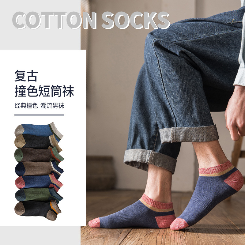 袜子男士短袜春夏季吸汗透气隐形船袜浅口低帮棉袜潮复古拼色袜