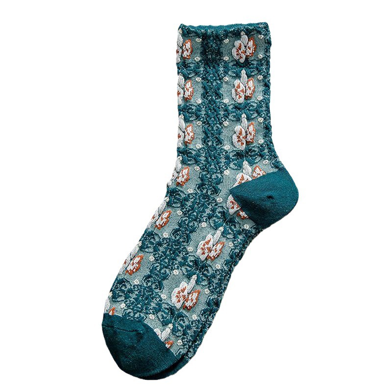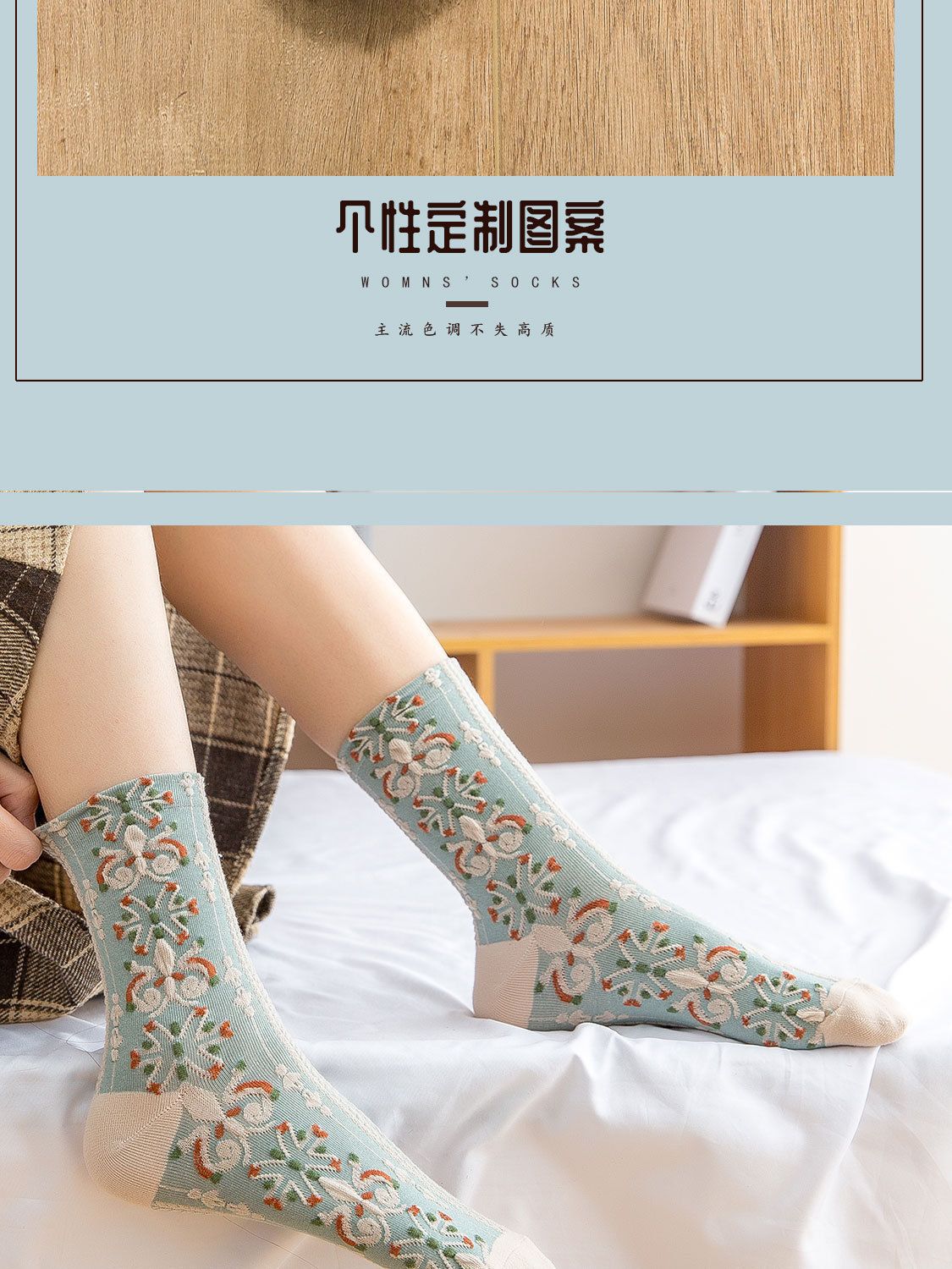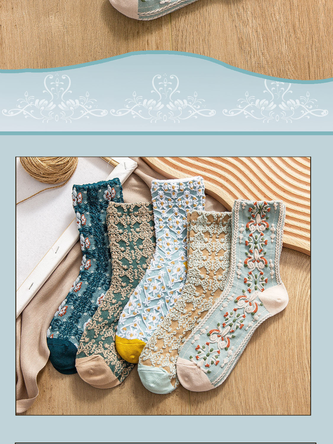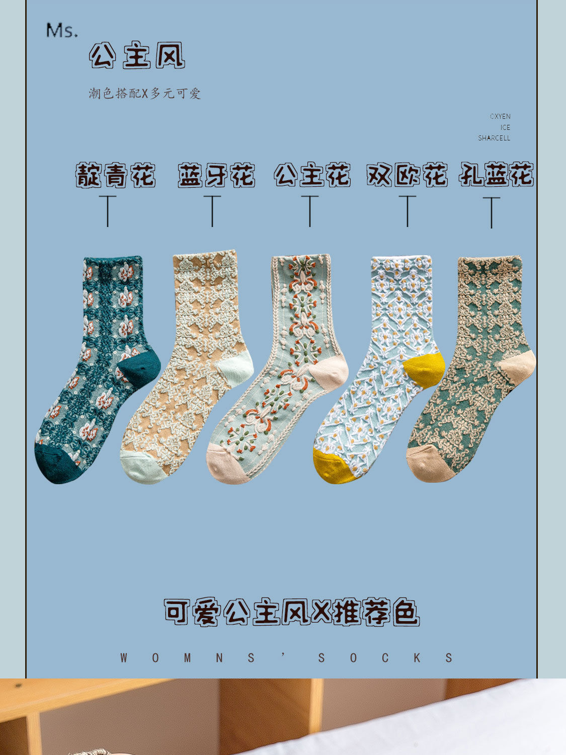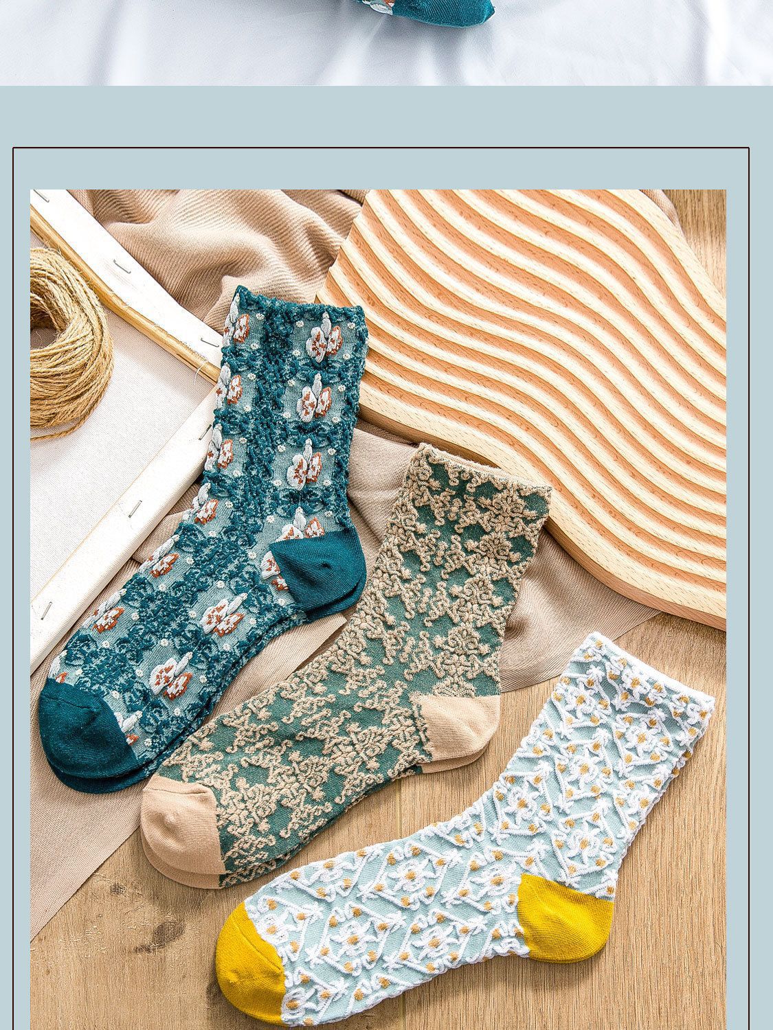 贵族范欧式复古女袜春秋款女士中筒袜艺术浮雕花纹宫廷风休闲女袜