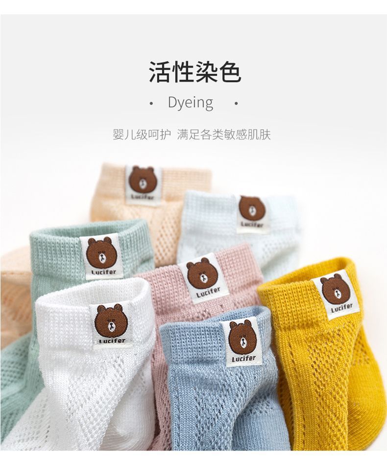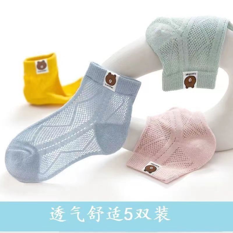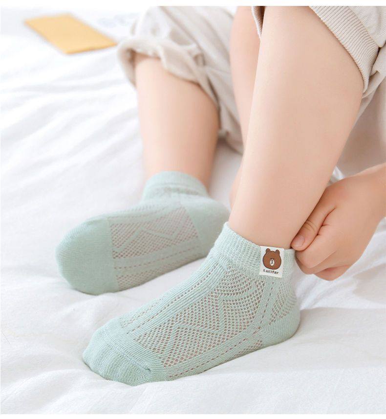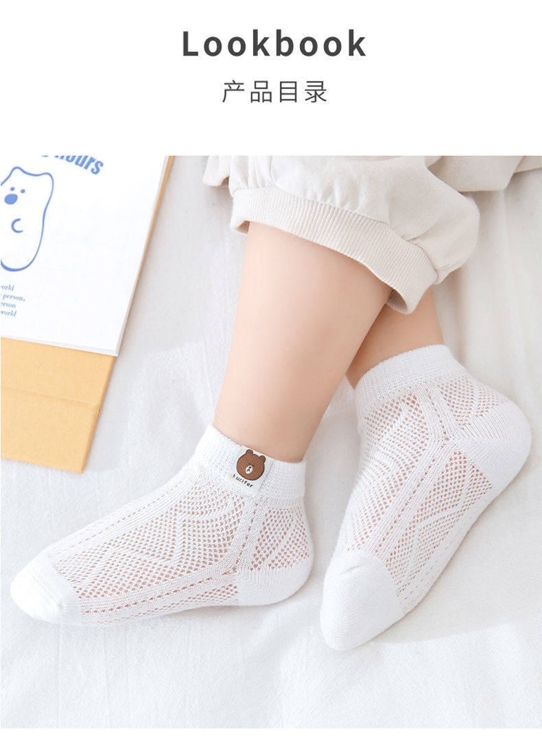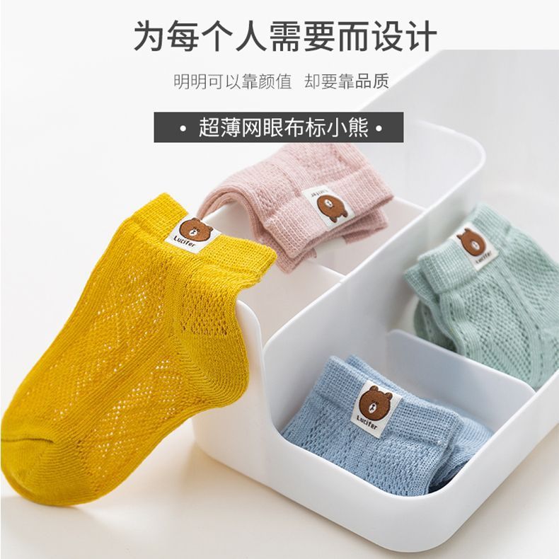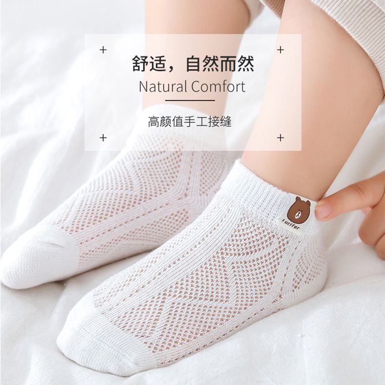 小熊儿童袜子薄款夏季网眼袜子童袜夏天袜子透气薄袜子男孩短袜