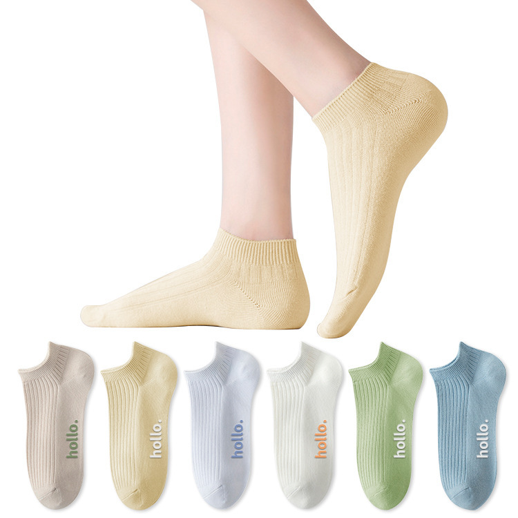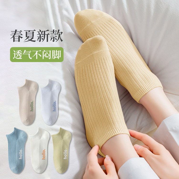 袜子女春夏季新款浅口纯色字母ins短袜吸汗透气袜子舒适现货