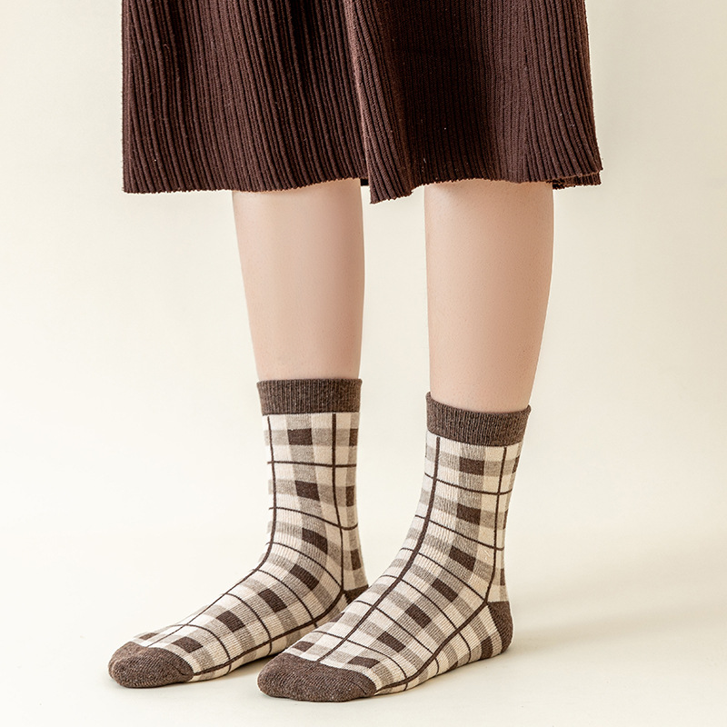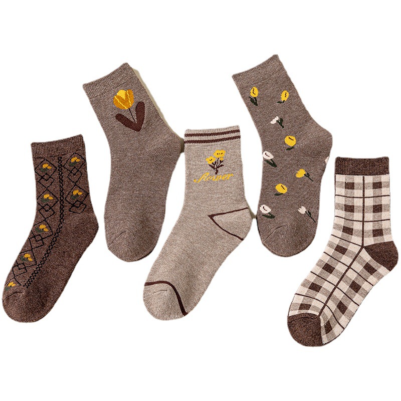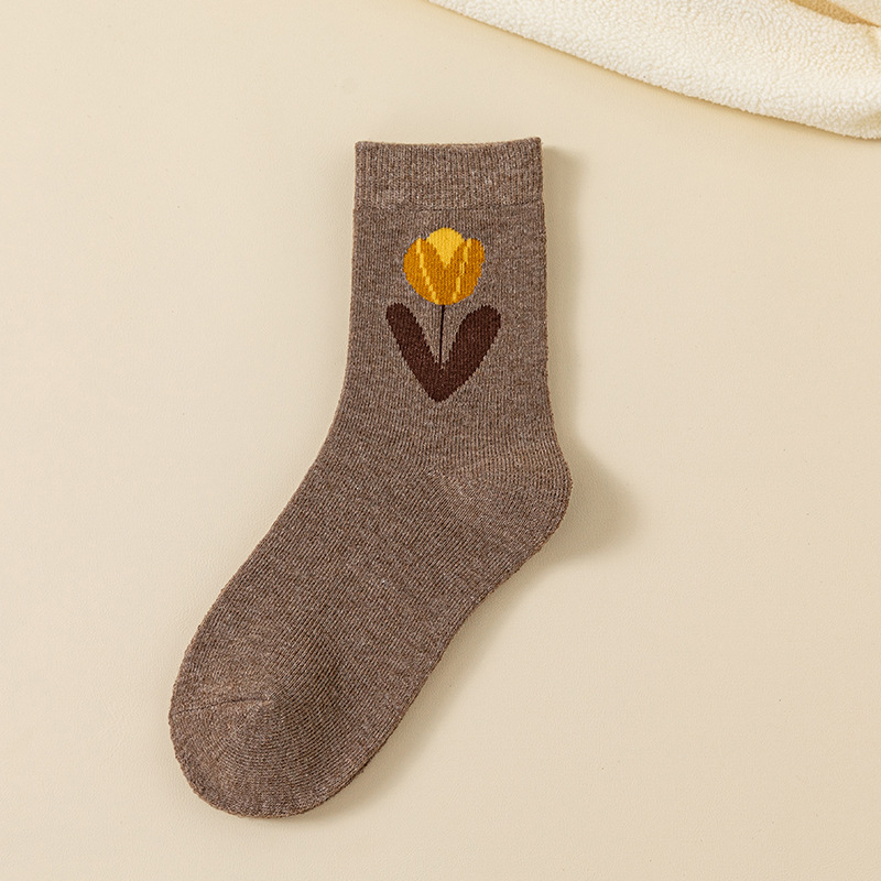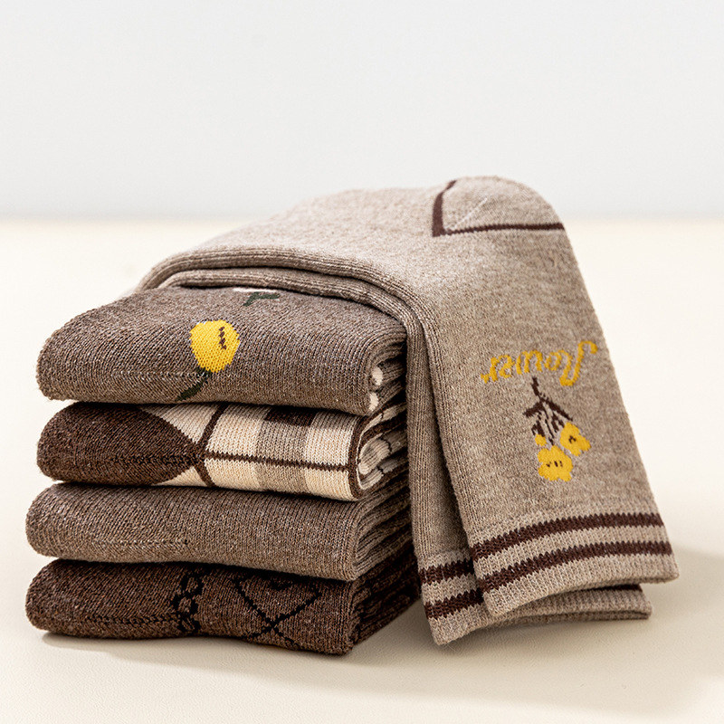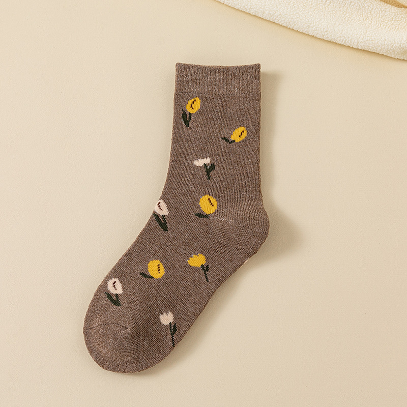 秋冬加厚棉女士中筒袜加绒加厚棉质日系女袜花朵长筒保暖毛圈袜子