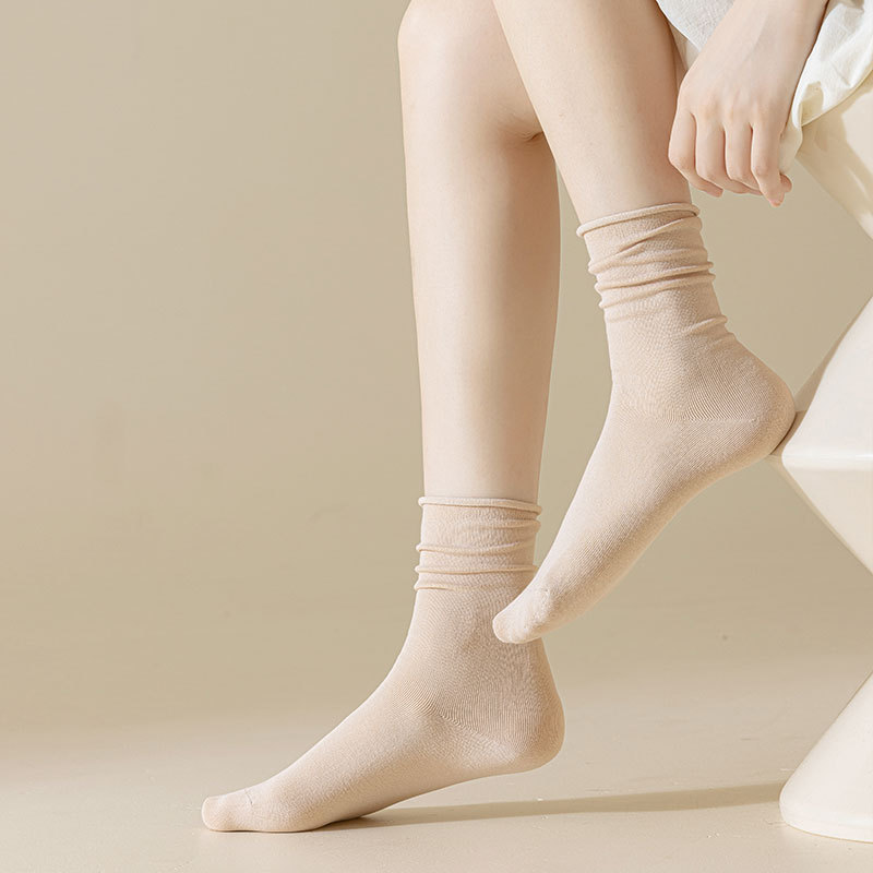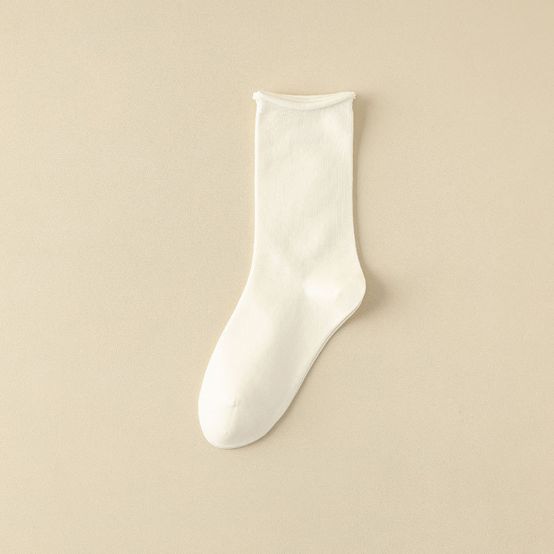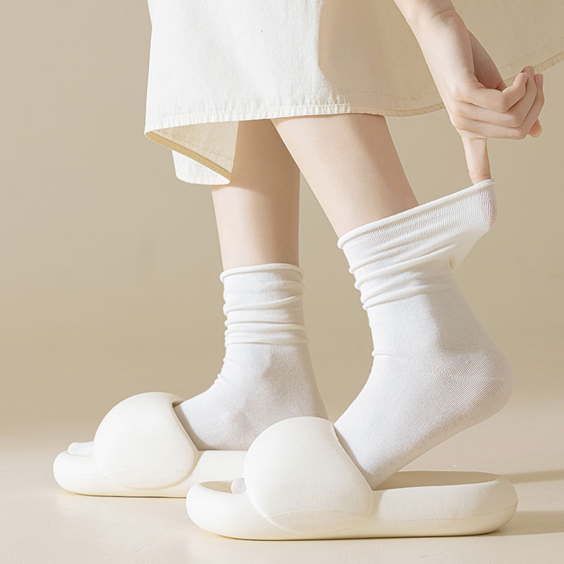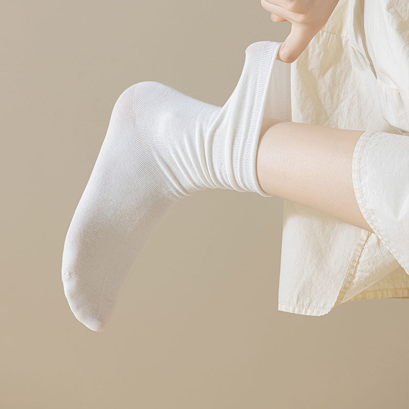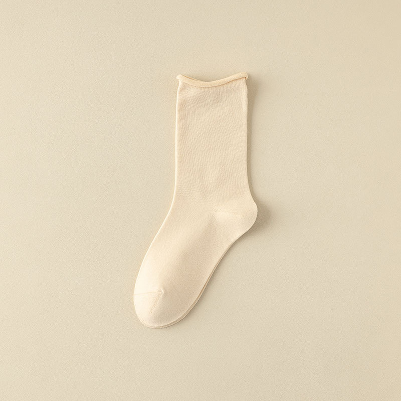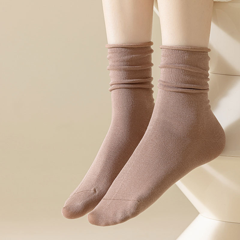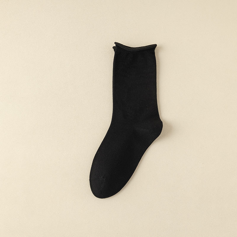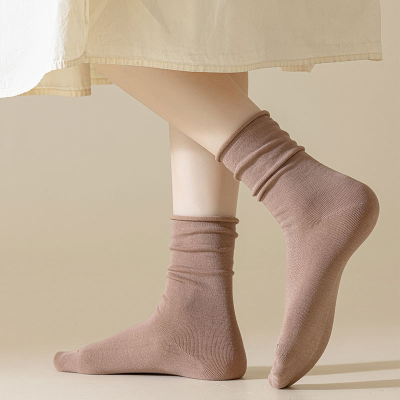 新款月子袜女士抗起球中筒袜ins休闲松口堆堆袜棉袜手工对目袜子