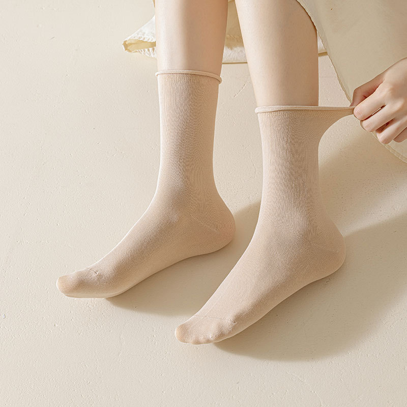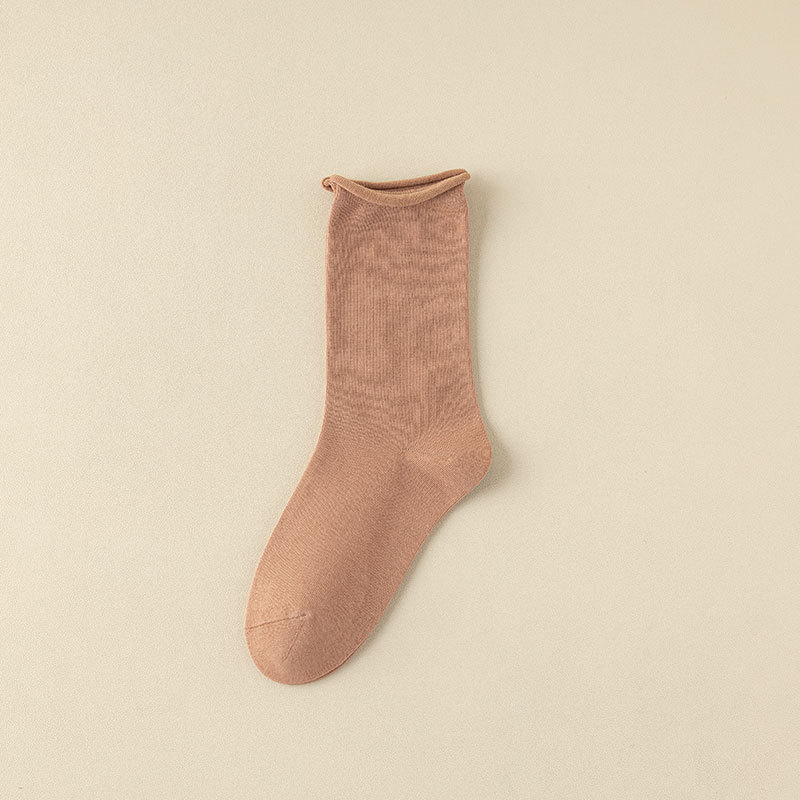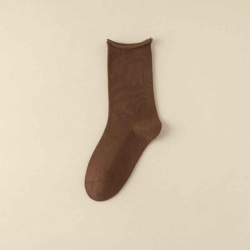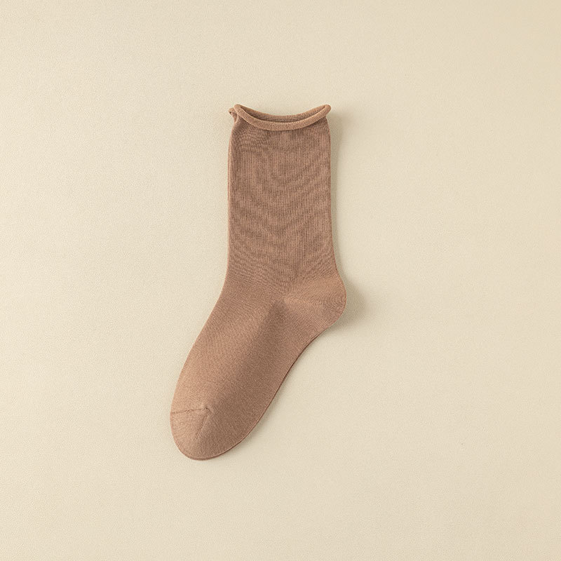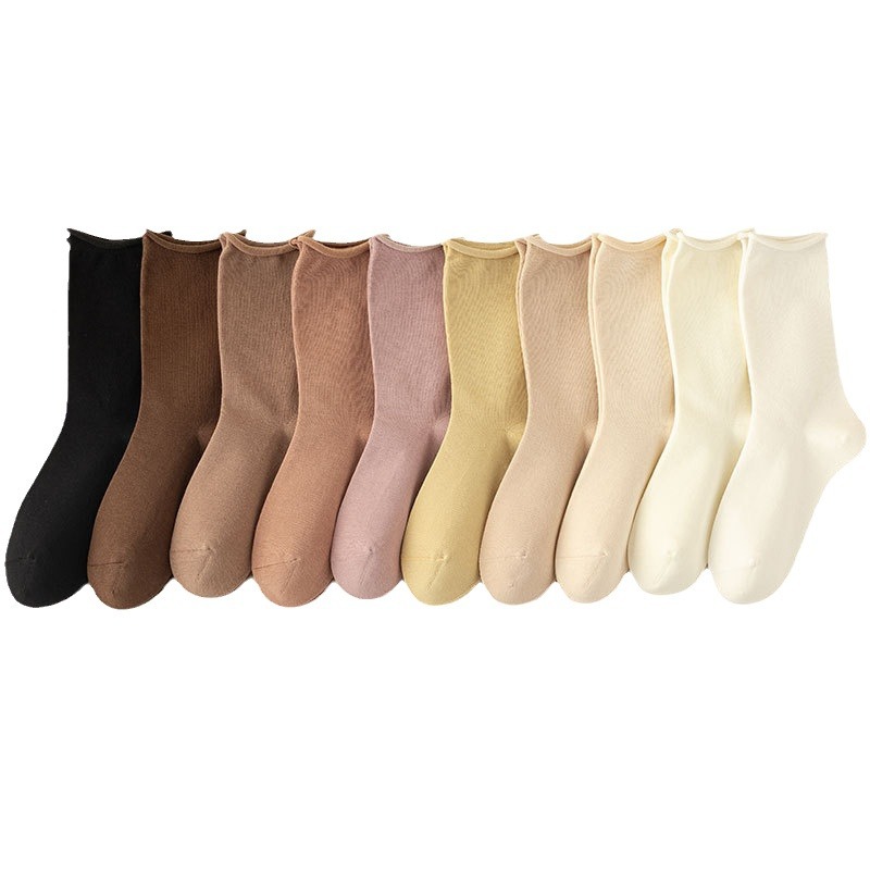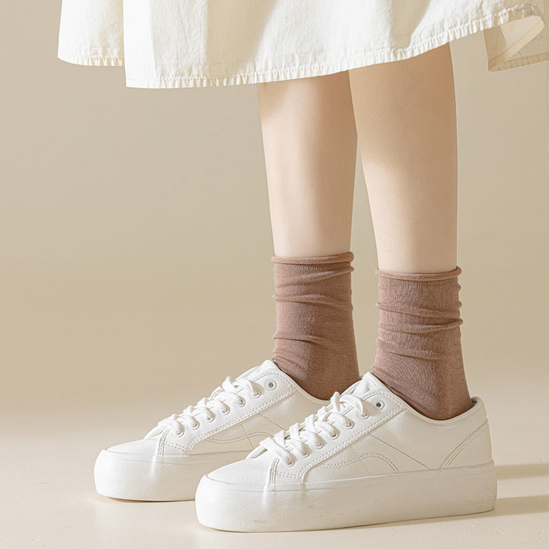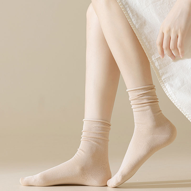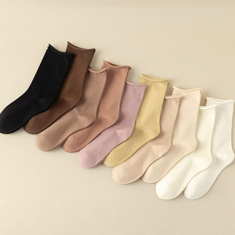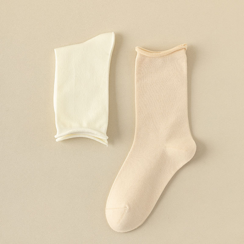 新款月子袜女士抗起球中筒袜ins休闲松口堆堆袜棉袜手工对目袜子