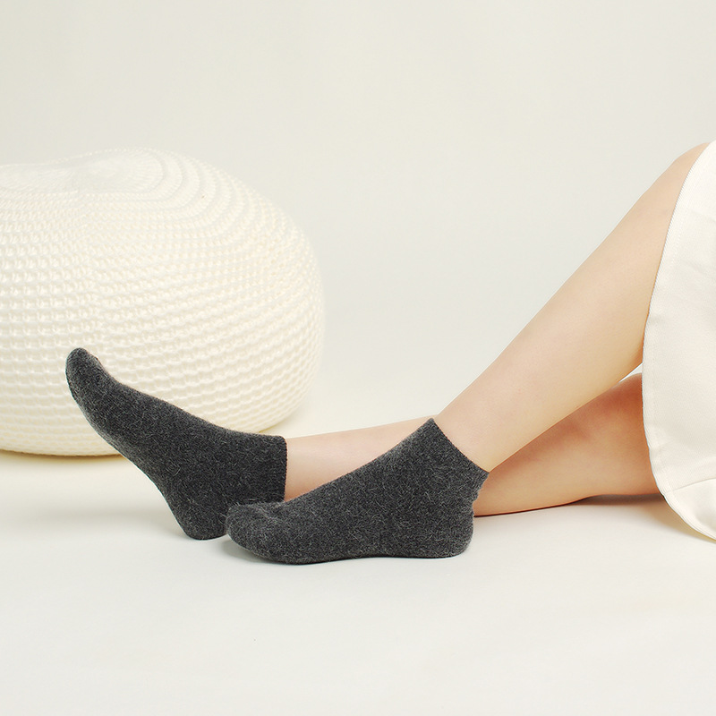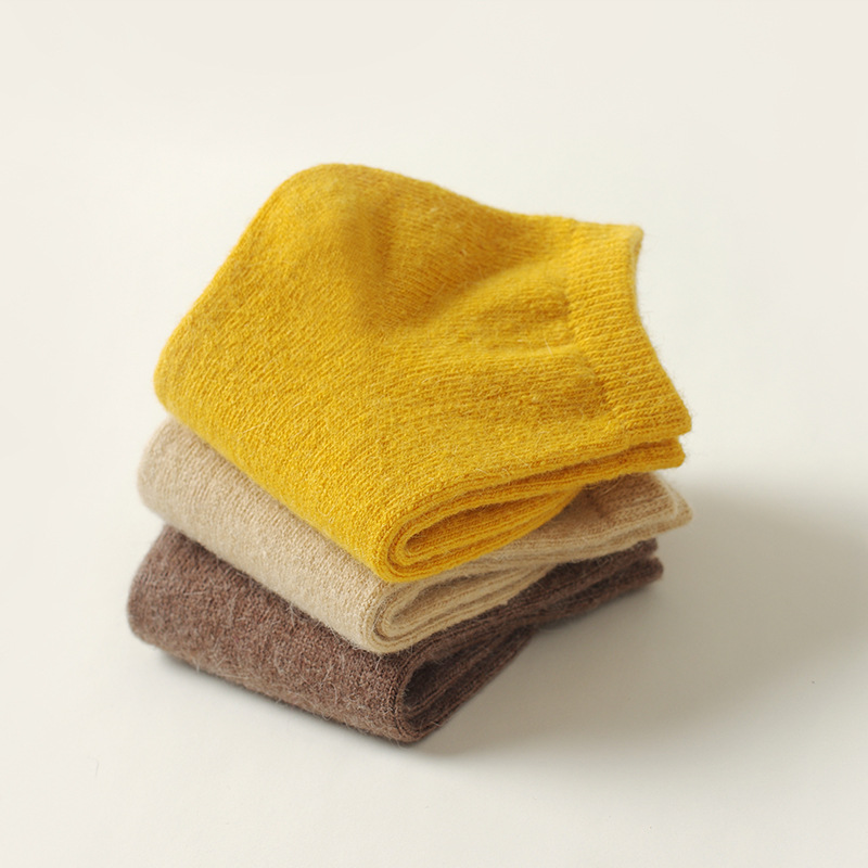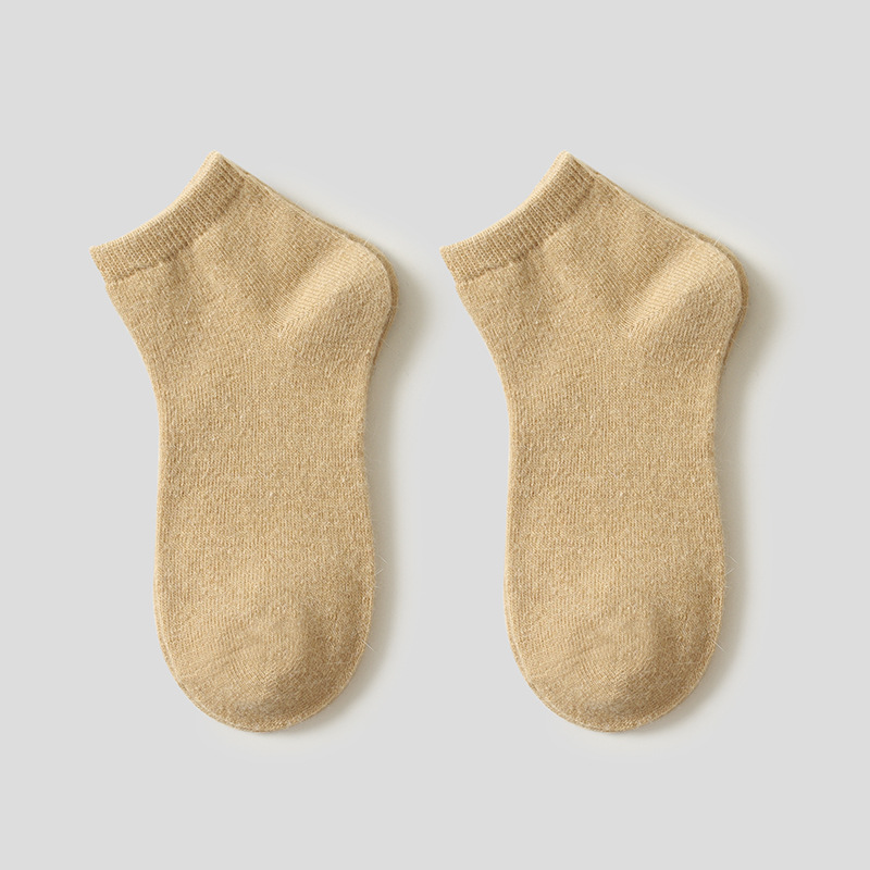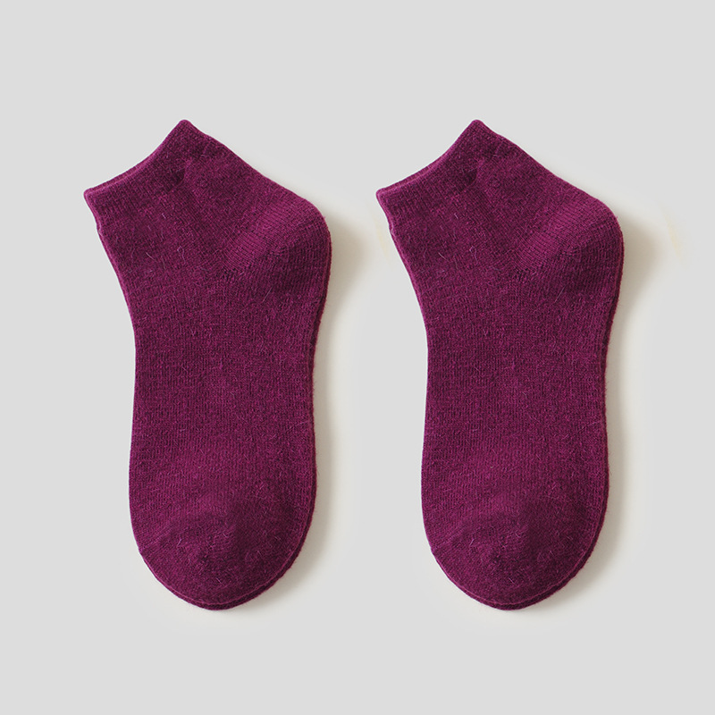 秋冬新款羊毛船袜女士保暖加厚羊毛袜子日系短筒袜子纯色羊毛短袜