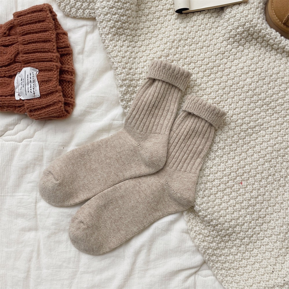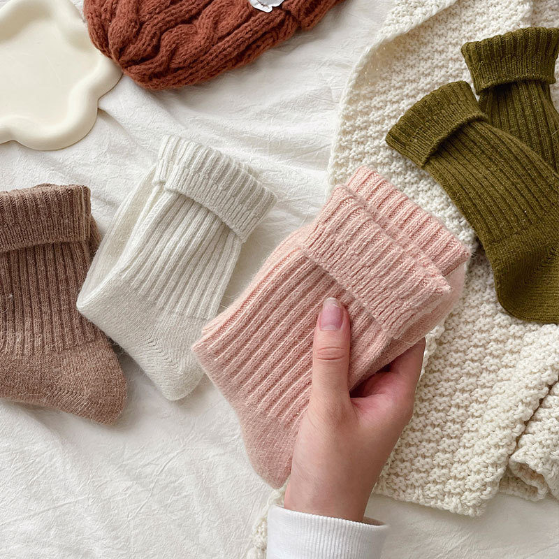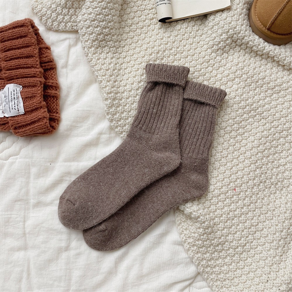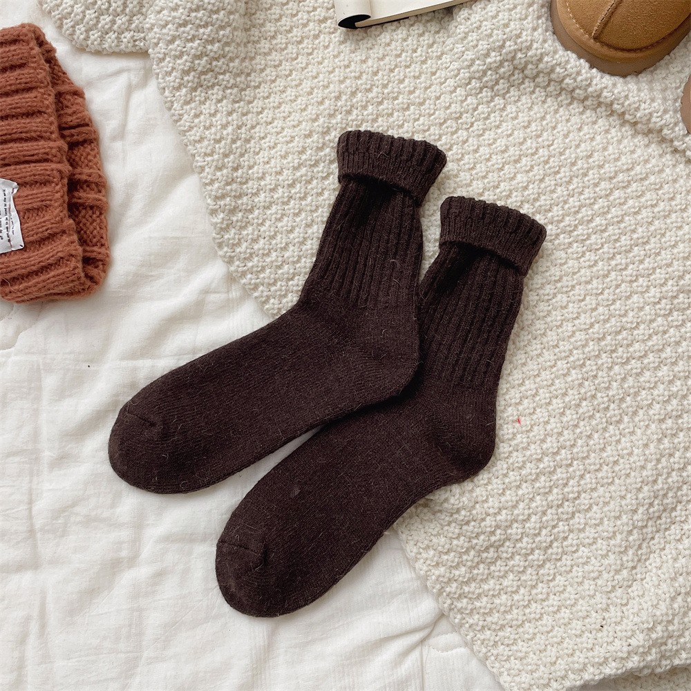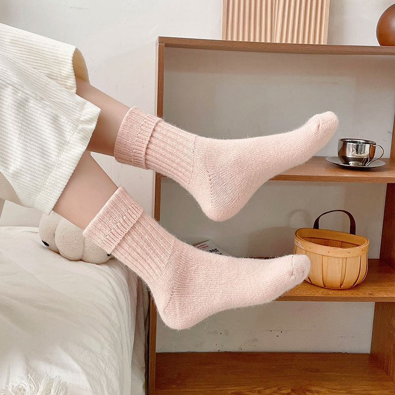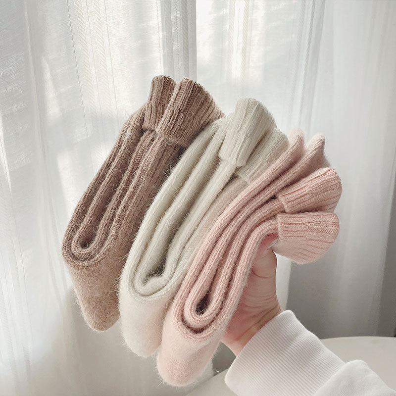 冬季新款兔羊毛袜子加厚保暖女士中筒袜美拉德色系袜子加厚兔毛袜