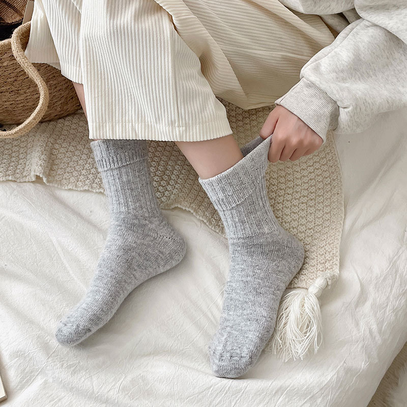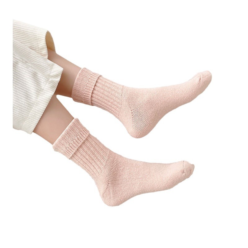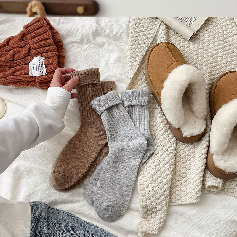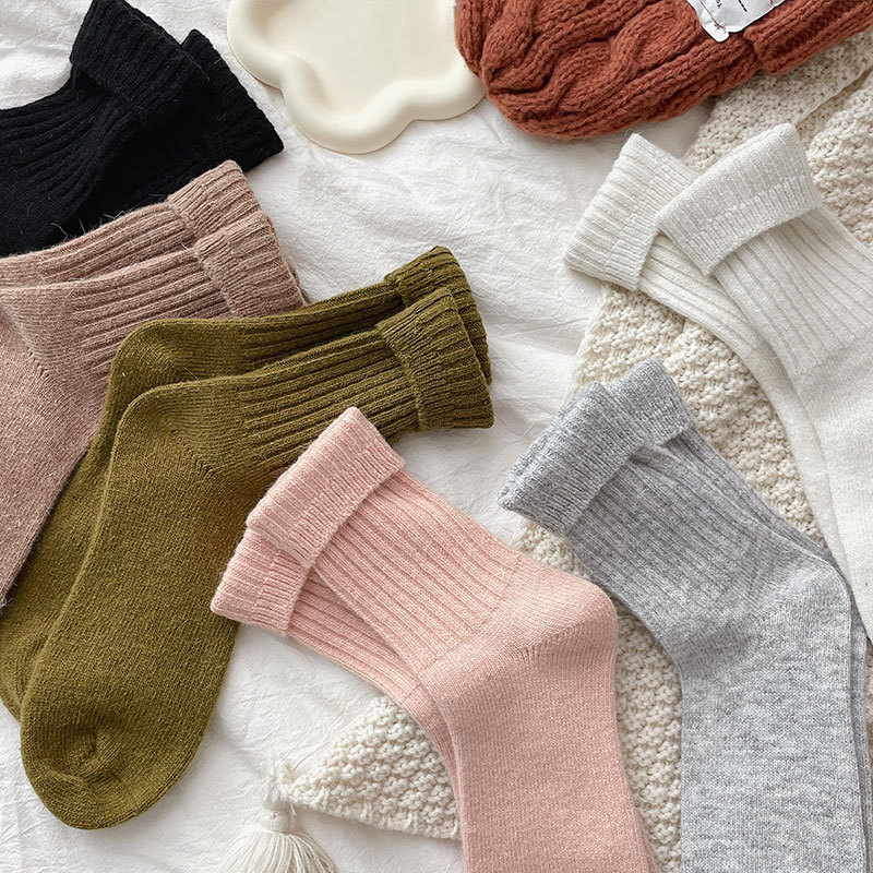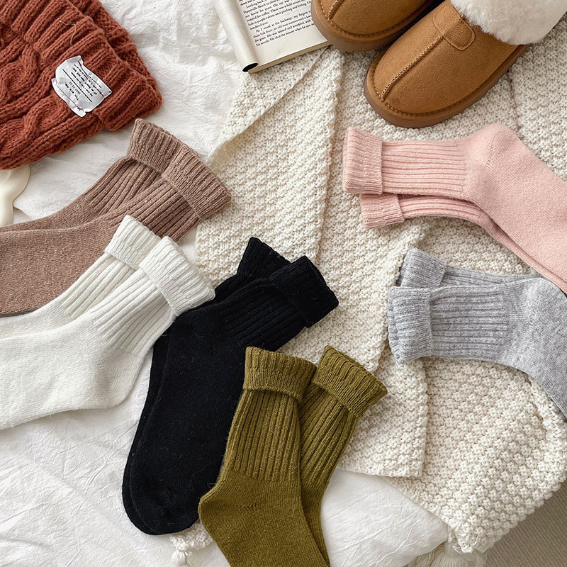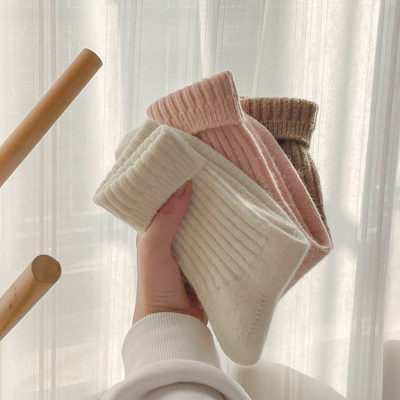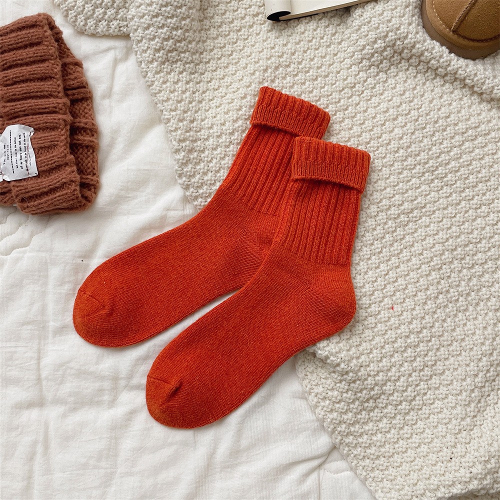 冬季新款兔羊毛袜子加厚保暖女士中筒袜美拉德色系袜子加厚兔毛袜