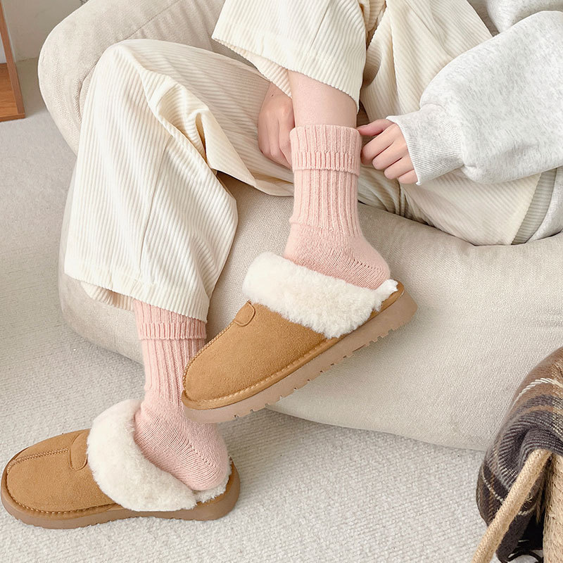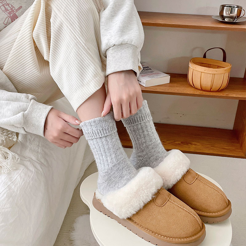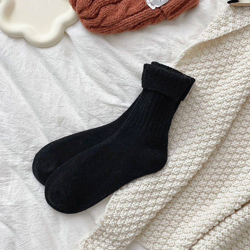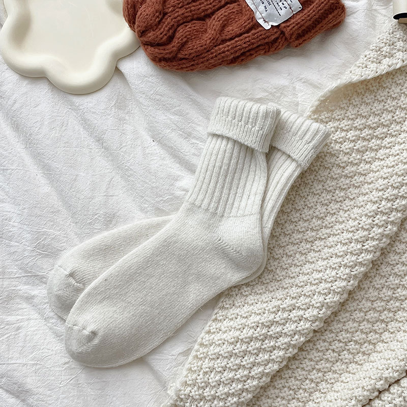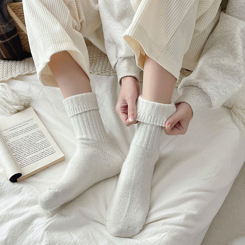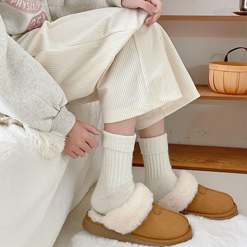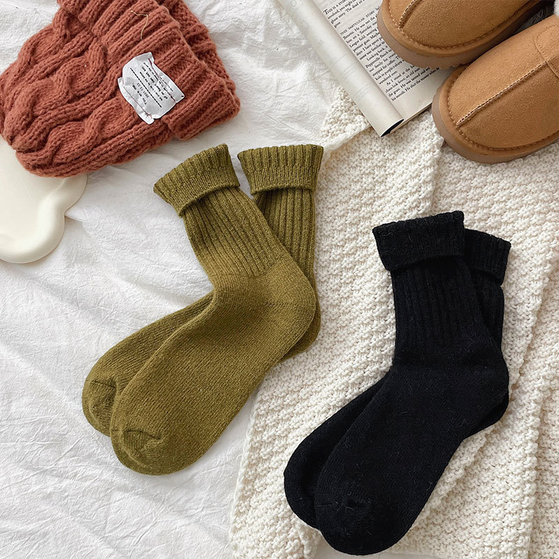 冬季新款兔羊毛袜子加厚保暖女士中筒袜美拉德色系袜子加厚兔毛袜