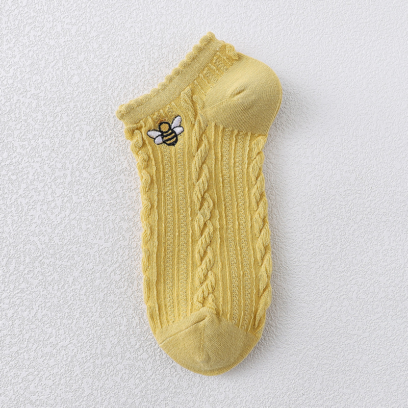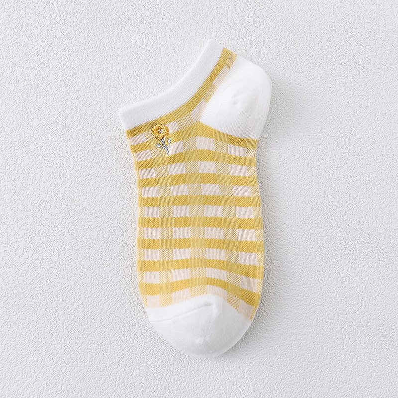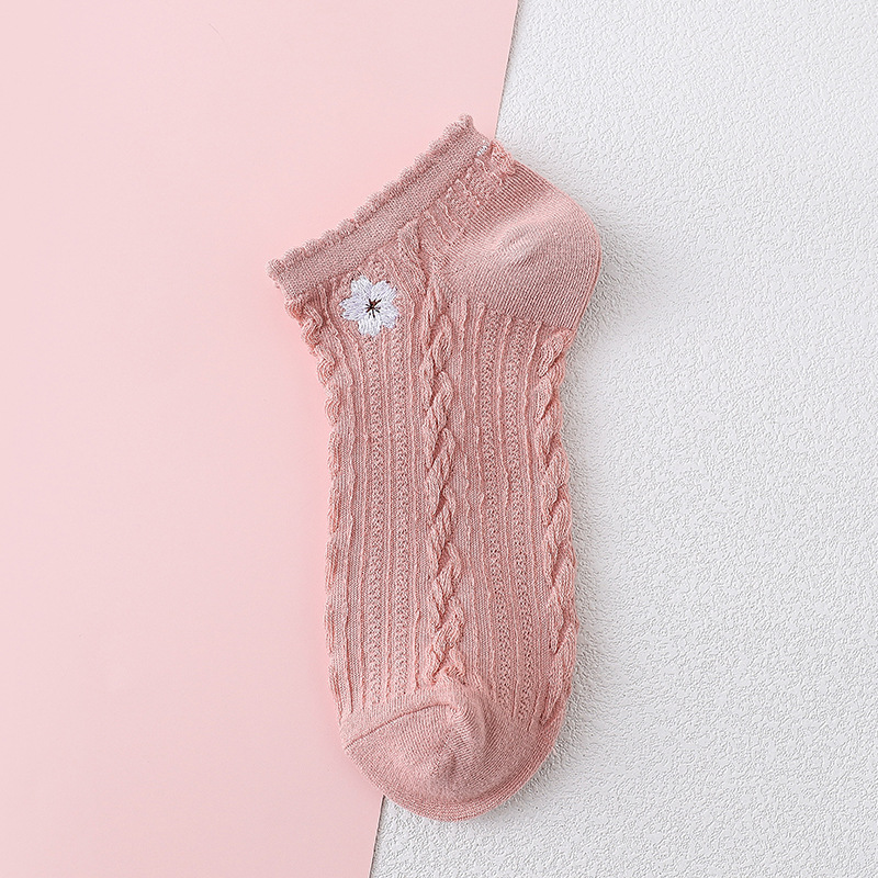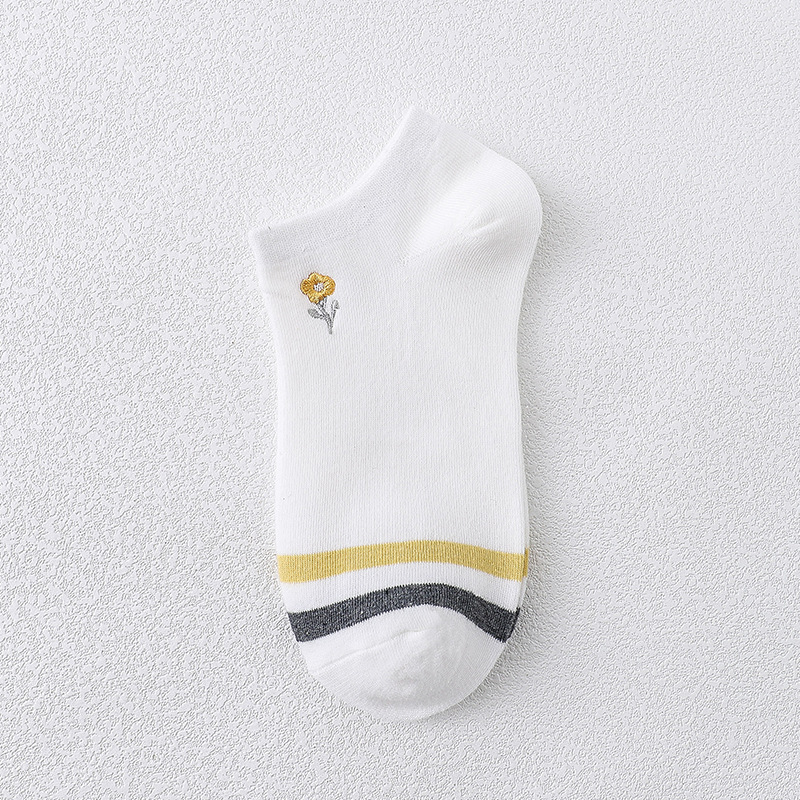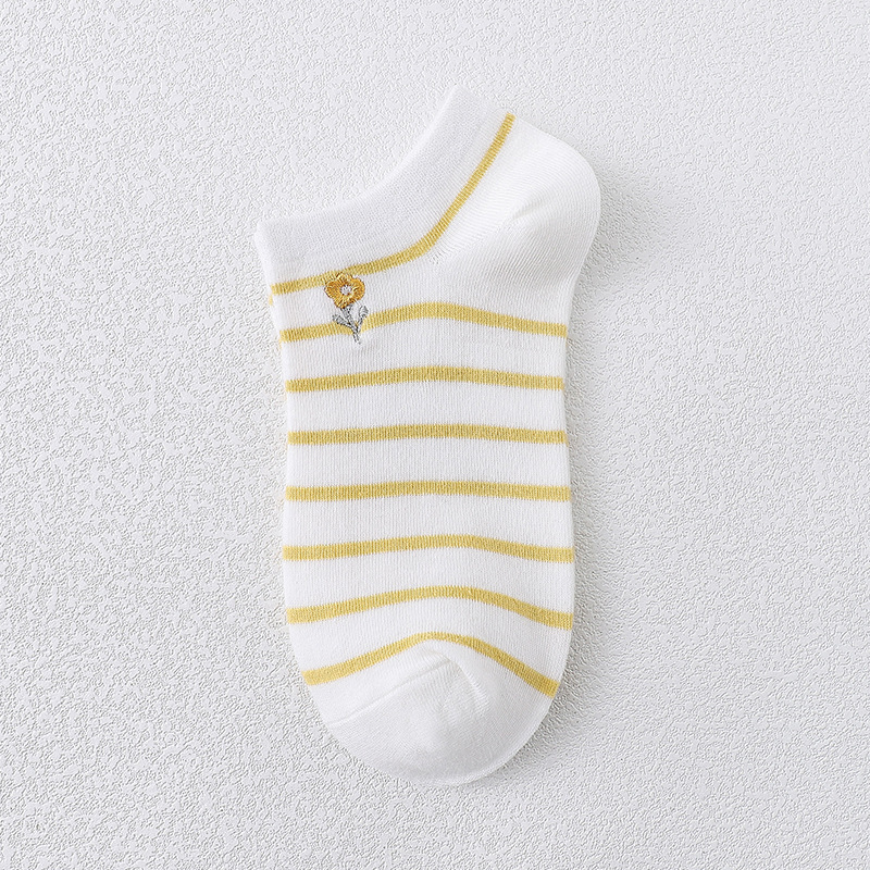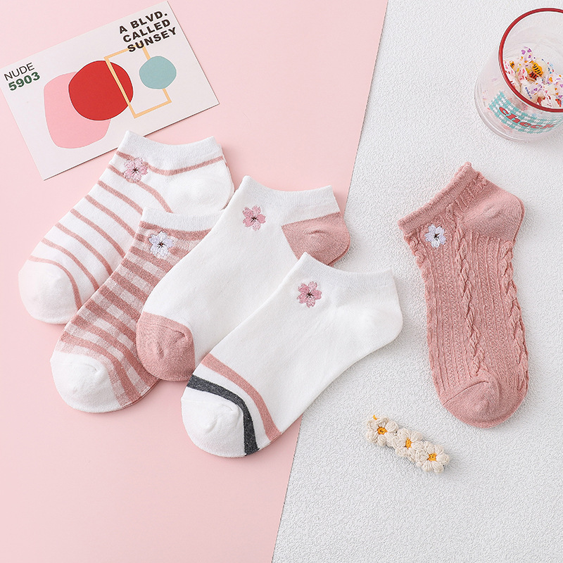 樱花刺绣女船袜夏季薄款护跟刺绣可爱潮夏天浅口短袜条纹棉船袜