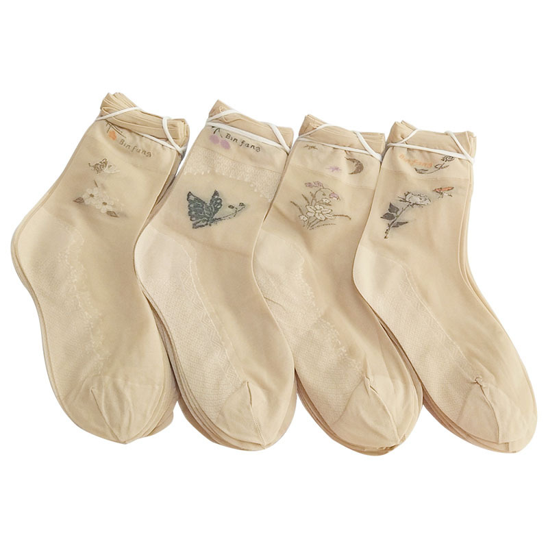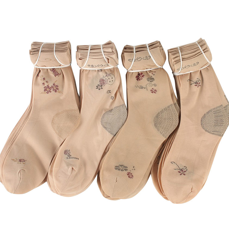 丝袜女士后跟丝袜天鹅绒提花老年丝袜中筒短丝袜脚跟加固厂家批发