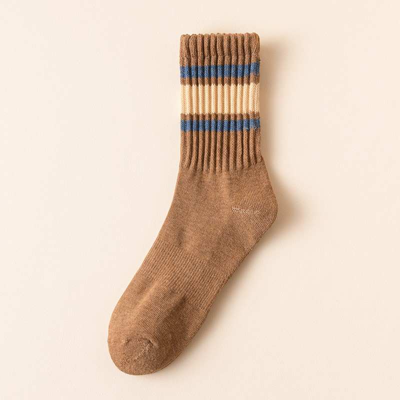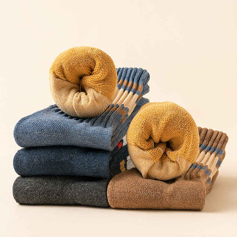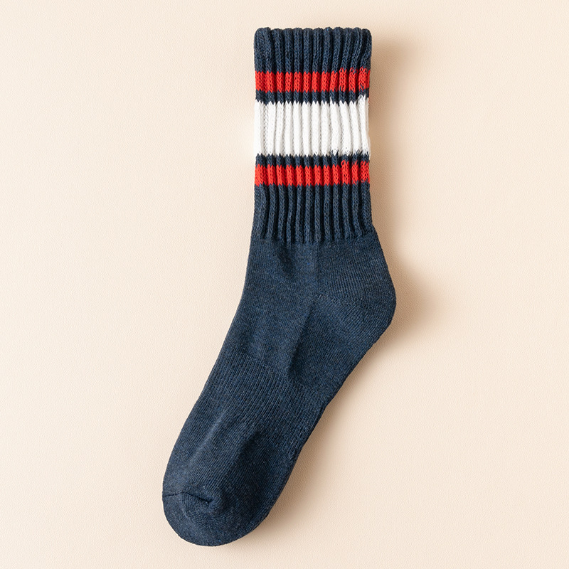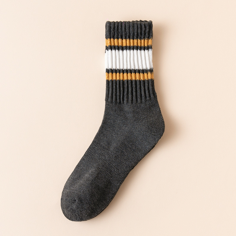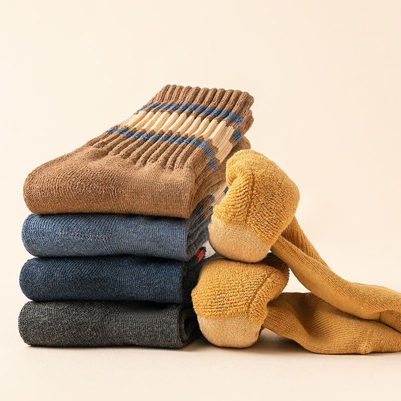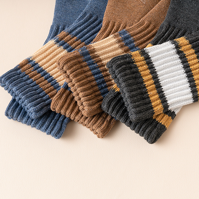 秋冬季男士袜子批发条纹加厚商务半拉毛棉袜吸汗男新款休闲毛圈袜