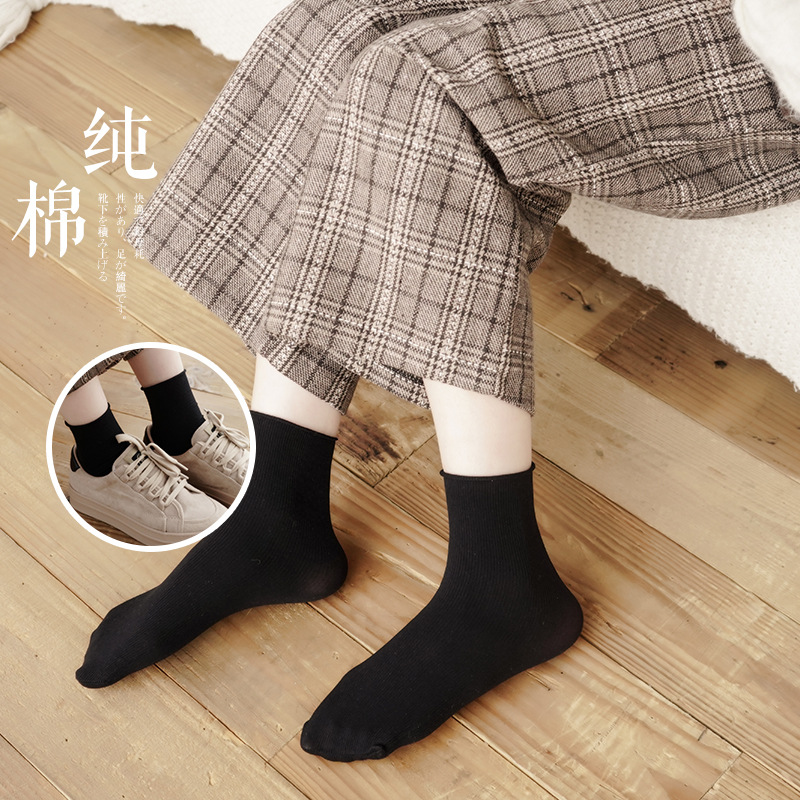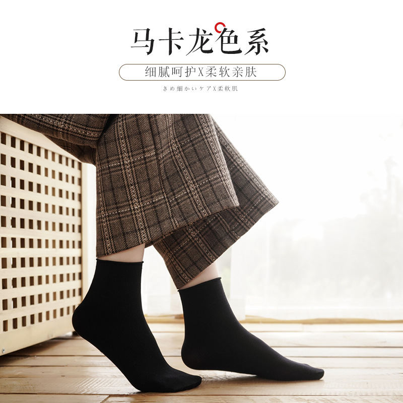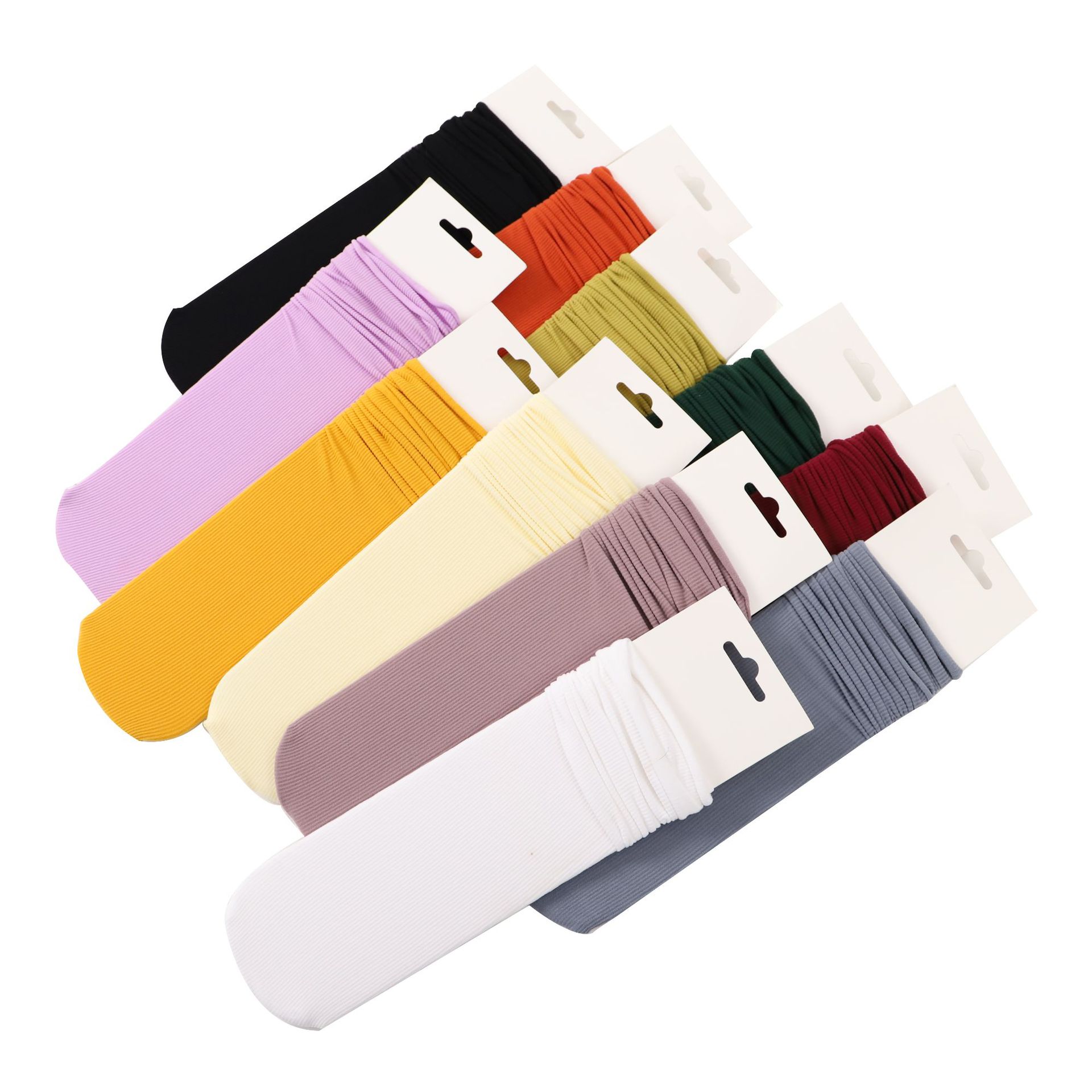 袜子女春夏冰冰袜冰丝凉感纯色可爱薄款堆堆袜透气韩式纯色潮袜