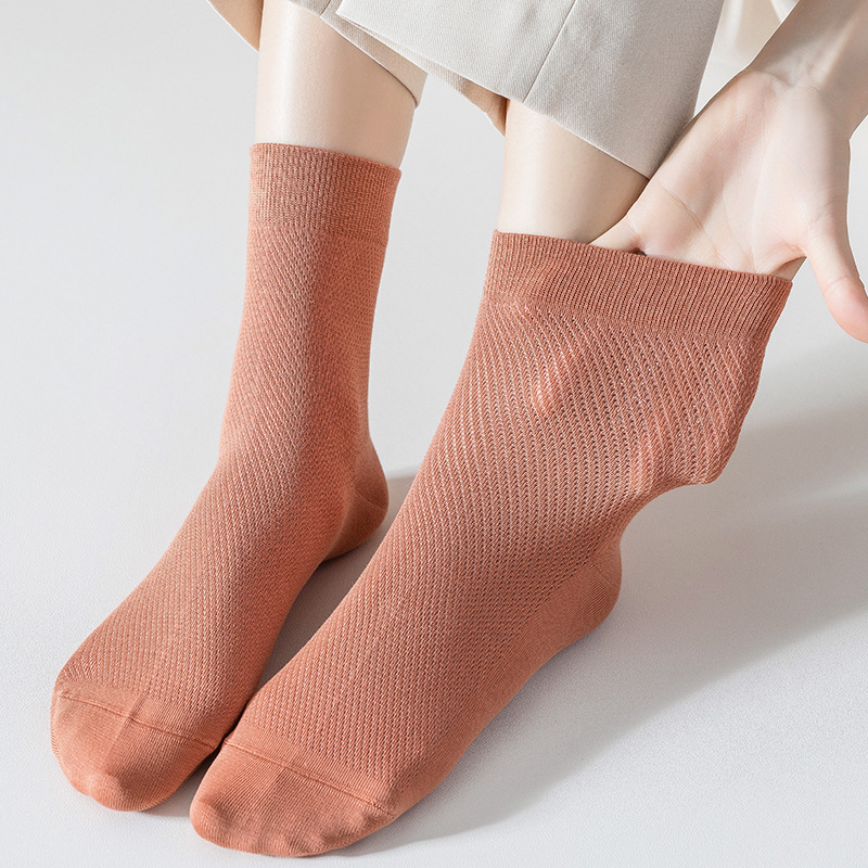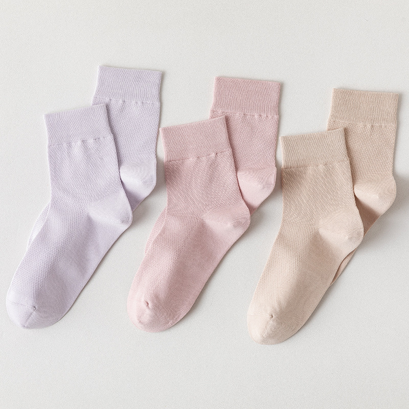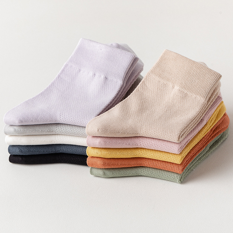 春夏中筒袜女网眼全棉袜子纯色手工对目中筒袜抗起球日系女棉袜