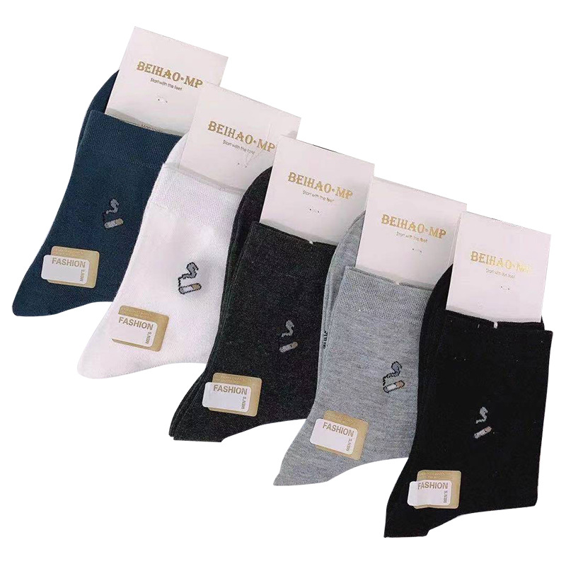 春夏季男士袜子中筒东北棉吸汗商务纯色棉袜子男中筒袜厂家批发