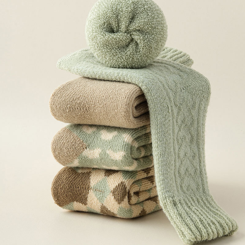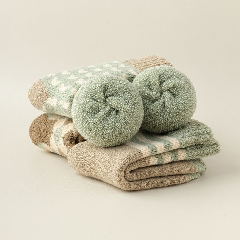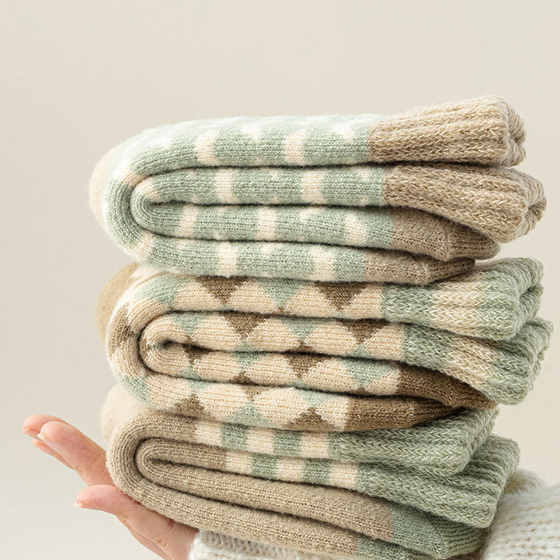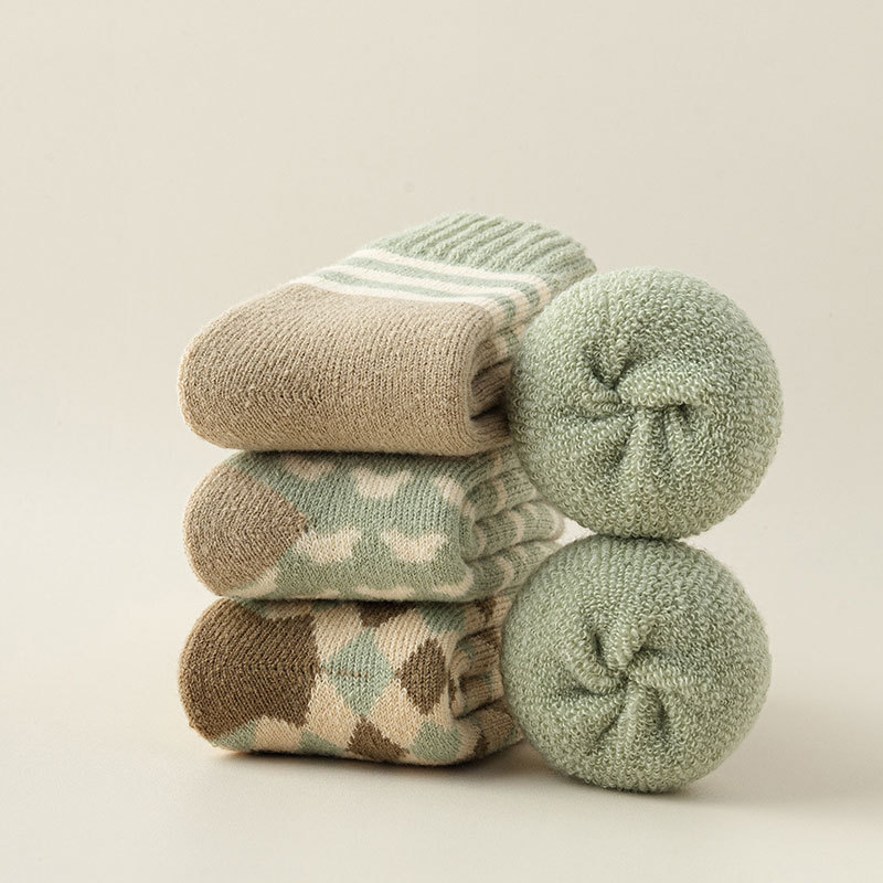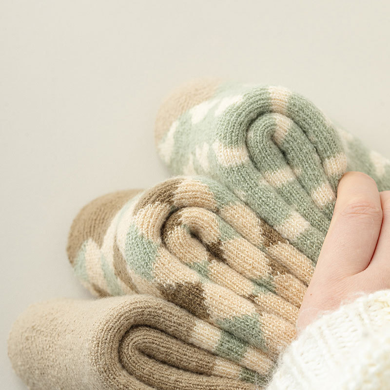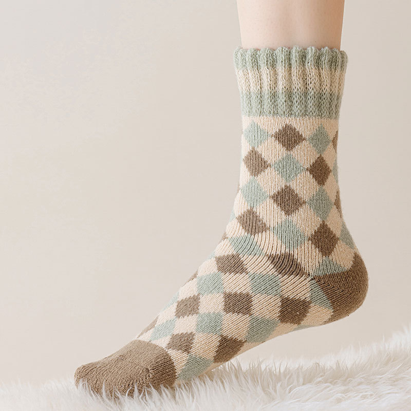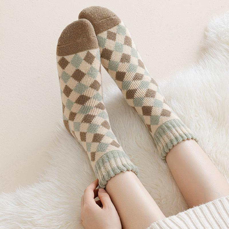 秋冬新款袜子女加厚毛圈袜中筒袜休闲保暖棉袜格子毛巾袜冬季袜子