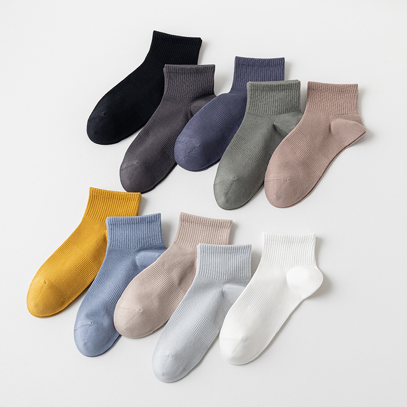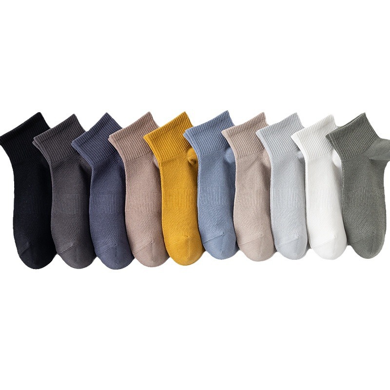 春夏新款纯棉短筒袜抗起球手工对目船袜男士休闲短袜低帮网眼袜子