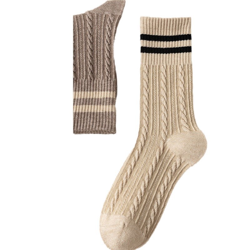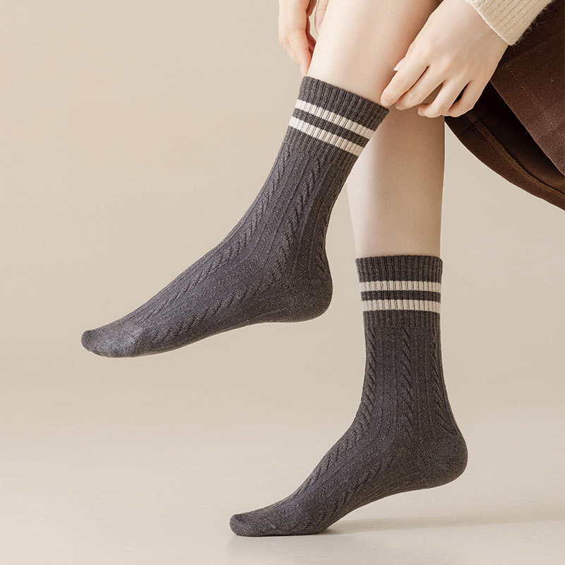 冬季新款羊毛女袜加厚毛巾袜休闲条纹中筒袜棉袜女保暖袜羊毛袜