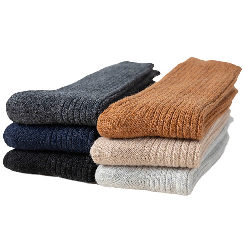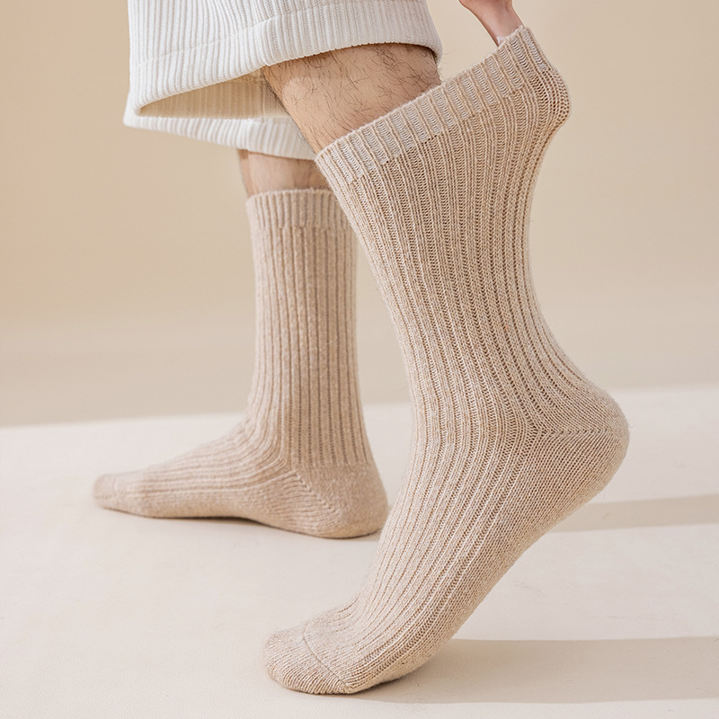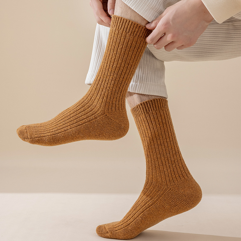 冬季新款羊毛袜男士加厚保暖中筒袜羊毛袜批发男士纯色休闲商务袜