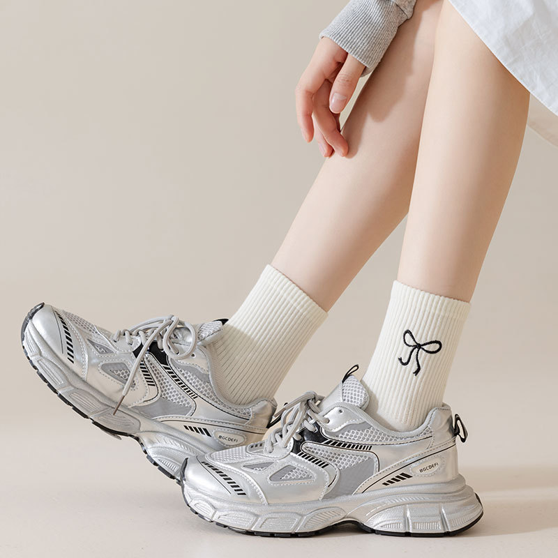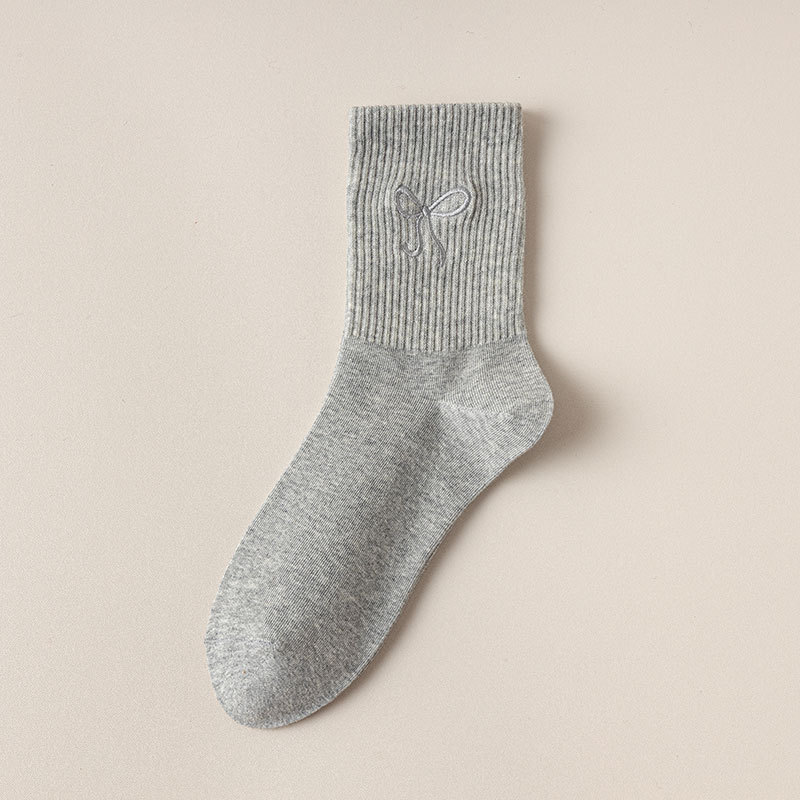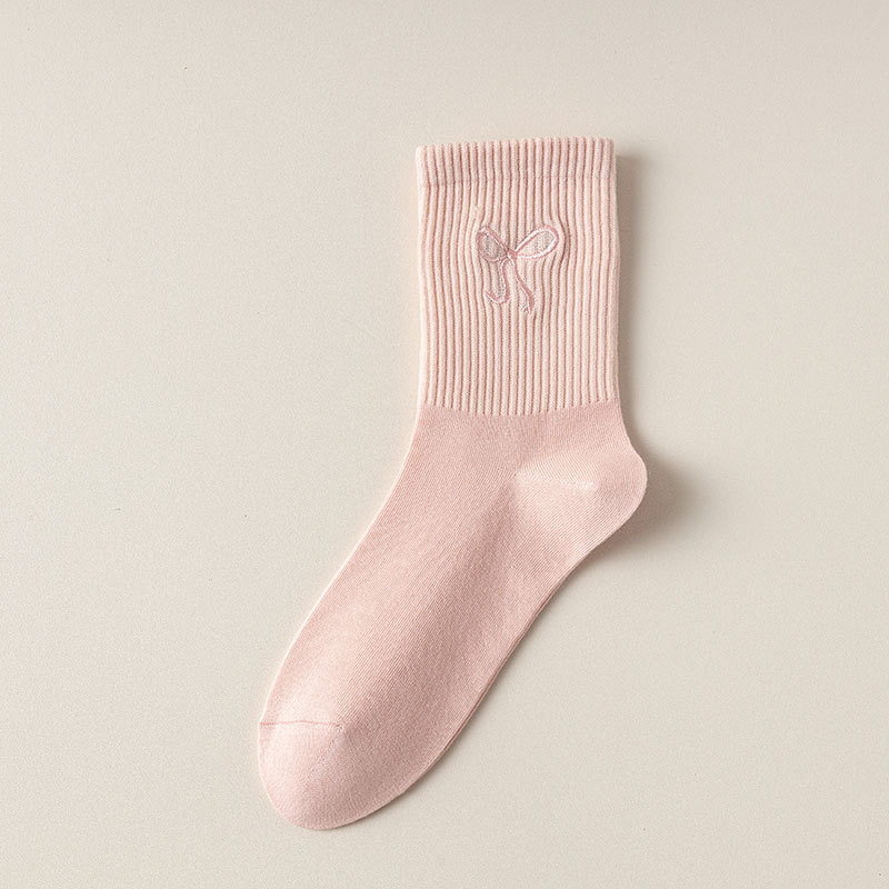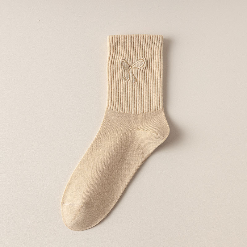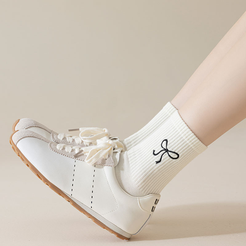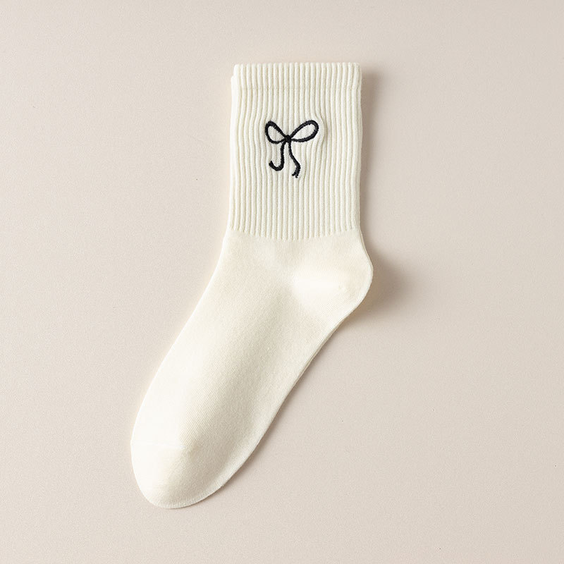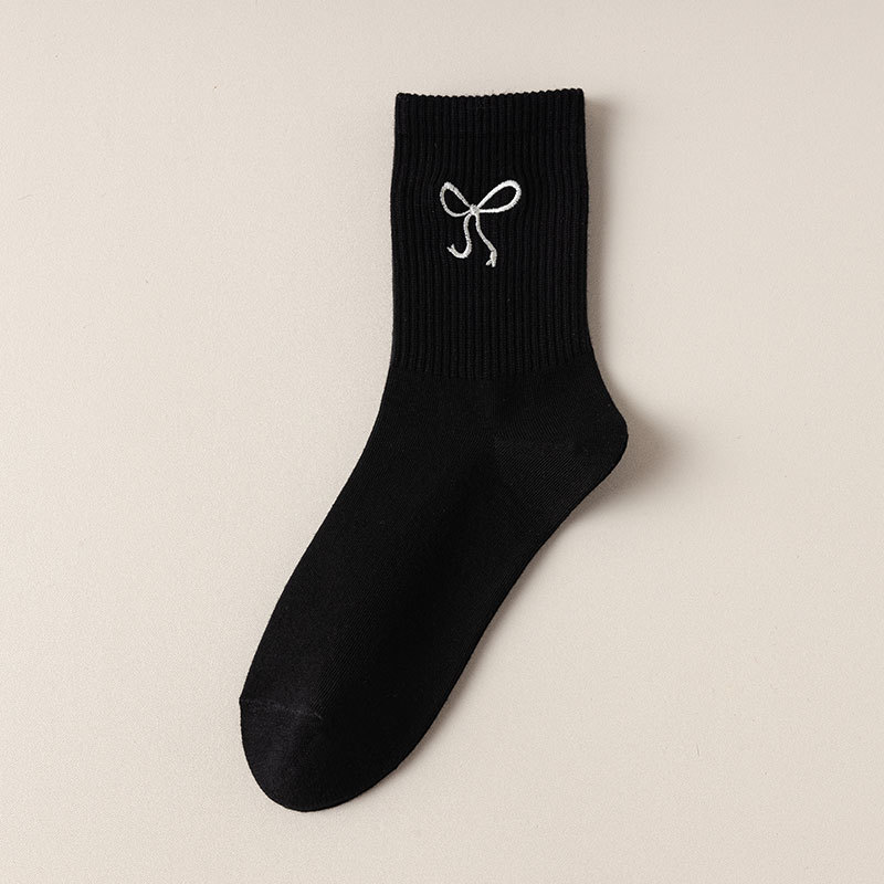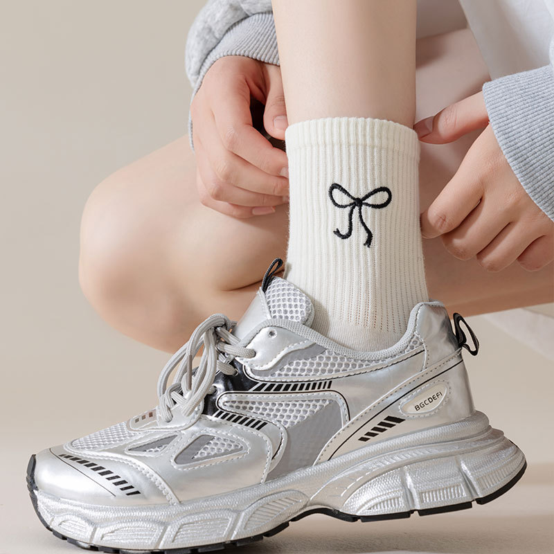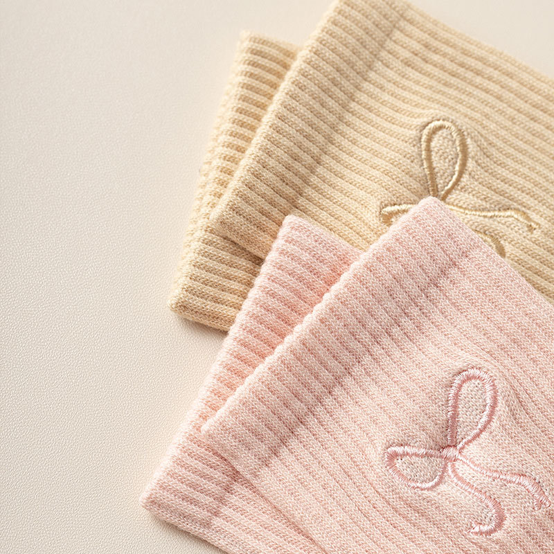秋冬新款袜子女抗起球中筒袜刺绣蝴蝶结堆堆袜棉袜女士袜子厂家
