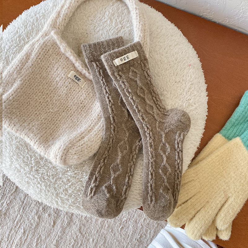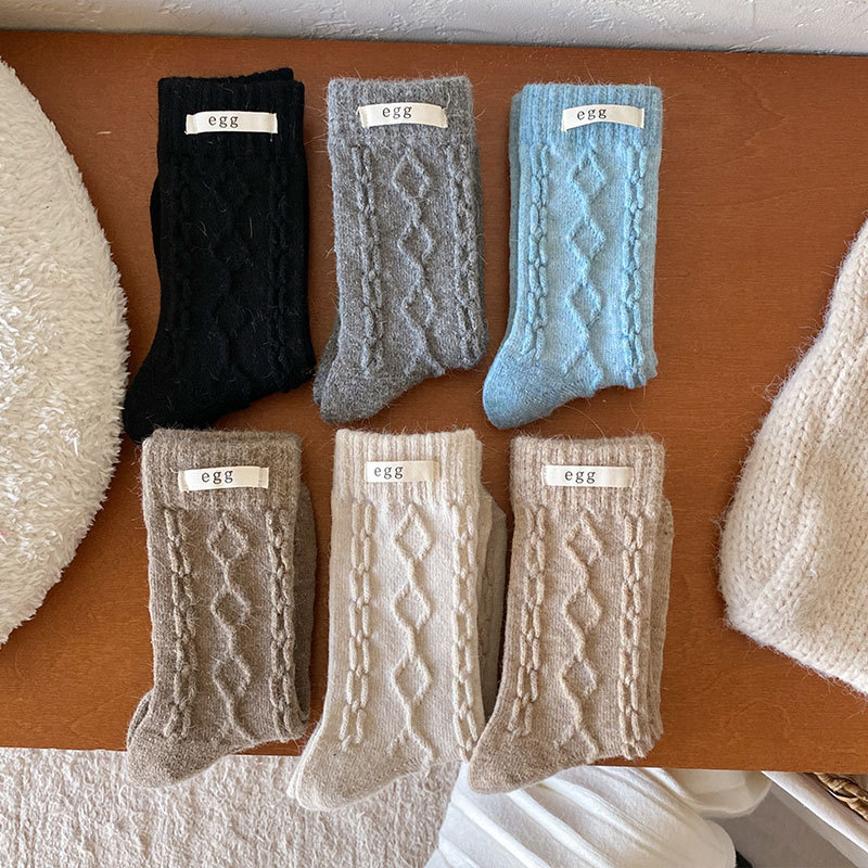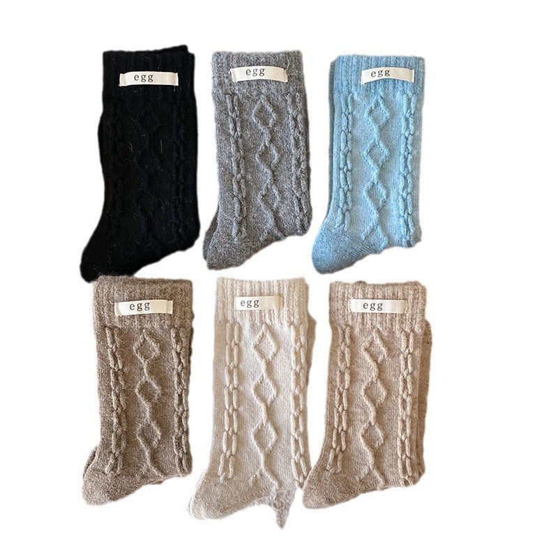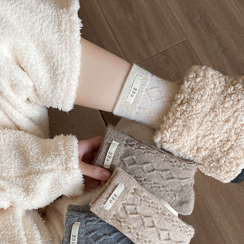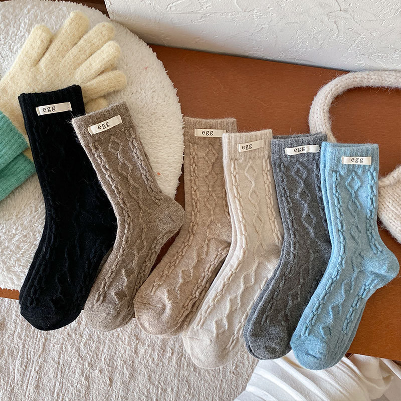 秋冬蓄热羊毛袜兔羊毛袜子女中筒袜保暖袜女士厚款冬天针织长袜
