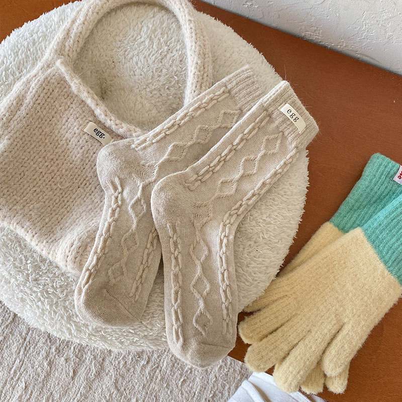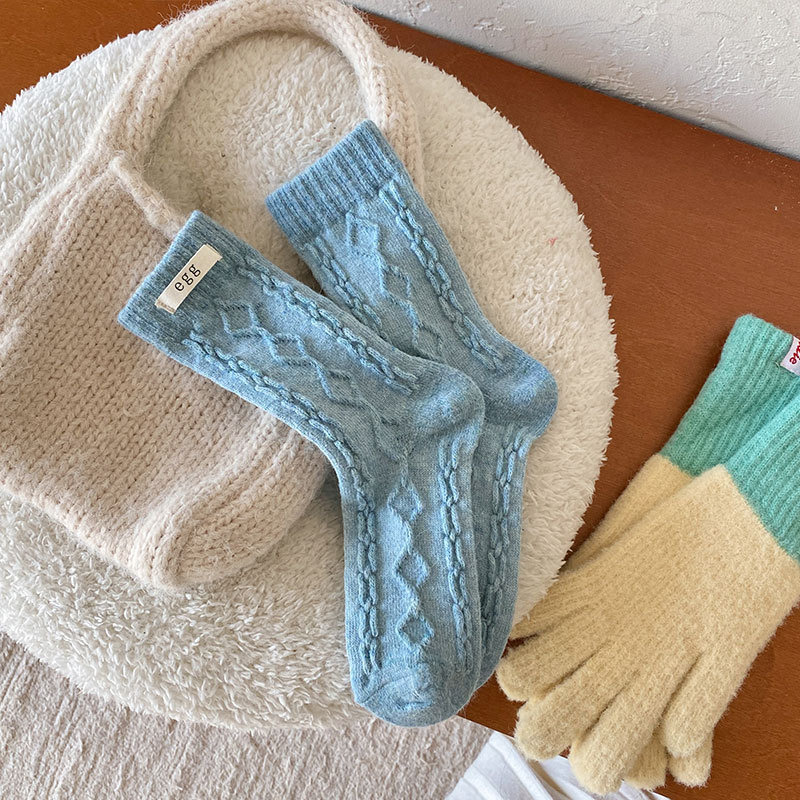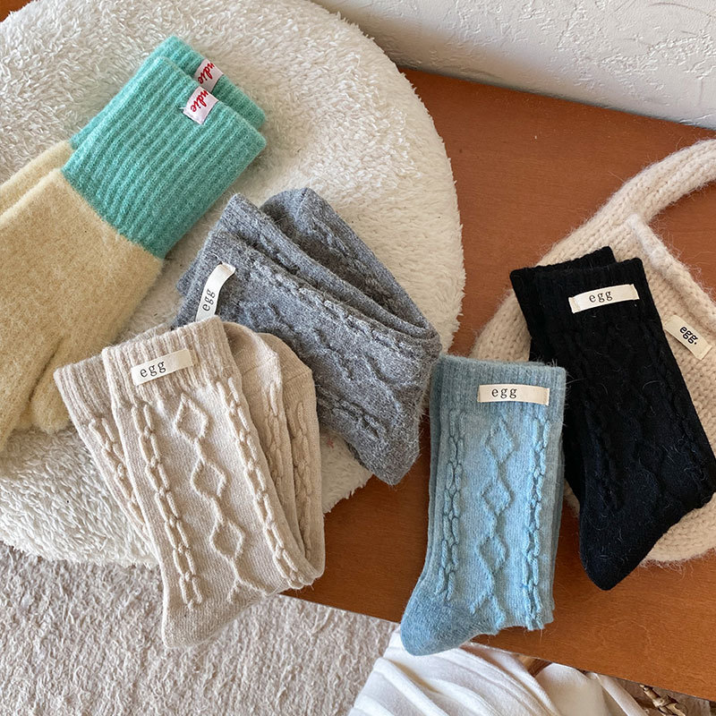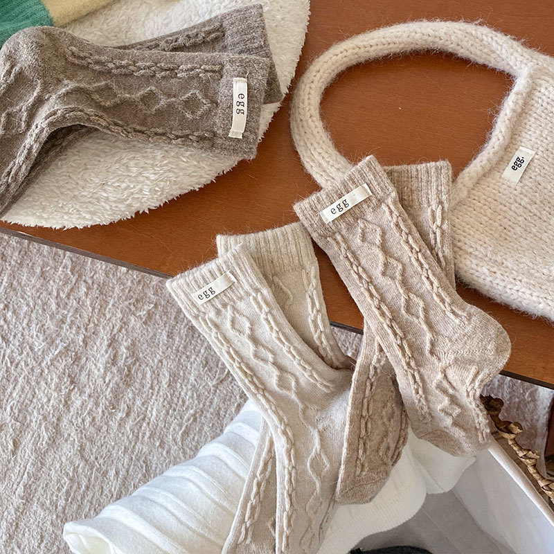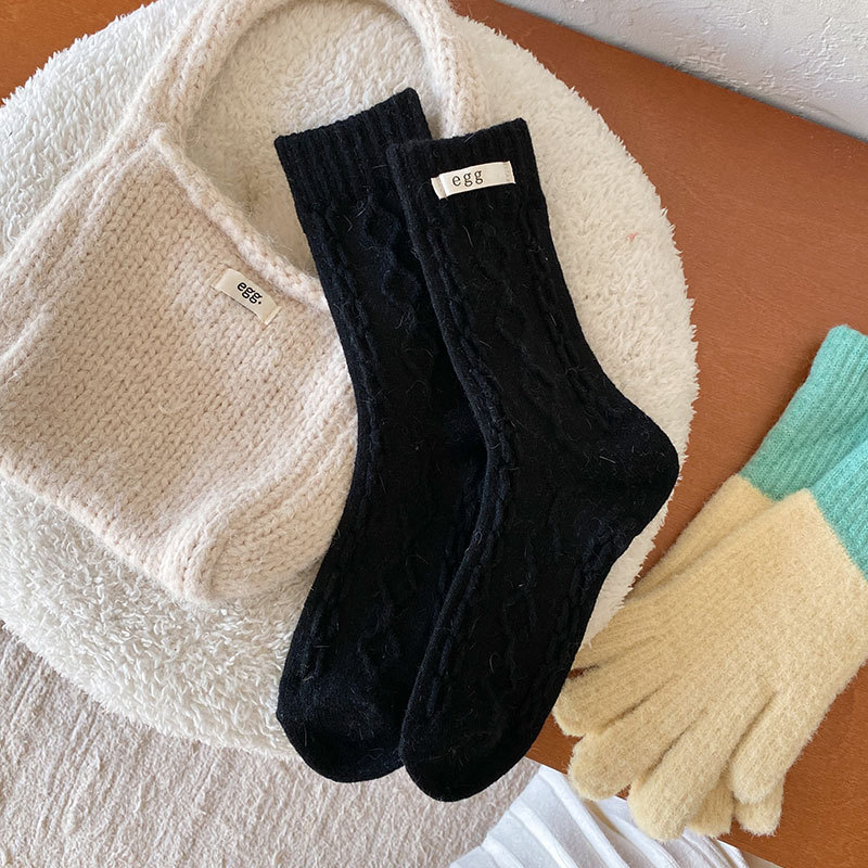 秋冬蓄热羊毛袜兔羊毛袜子女中筒袜保暖袜女士厚款冬天针织长袜