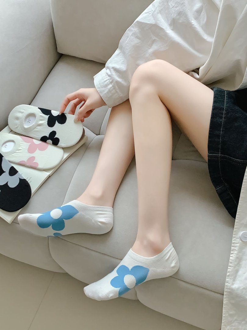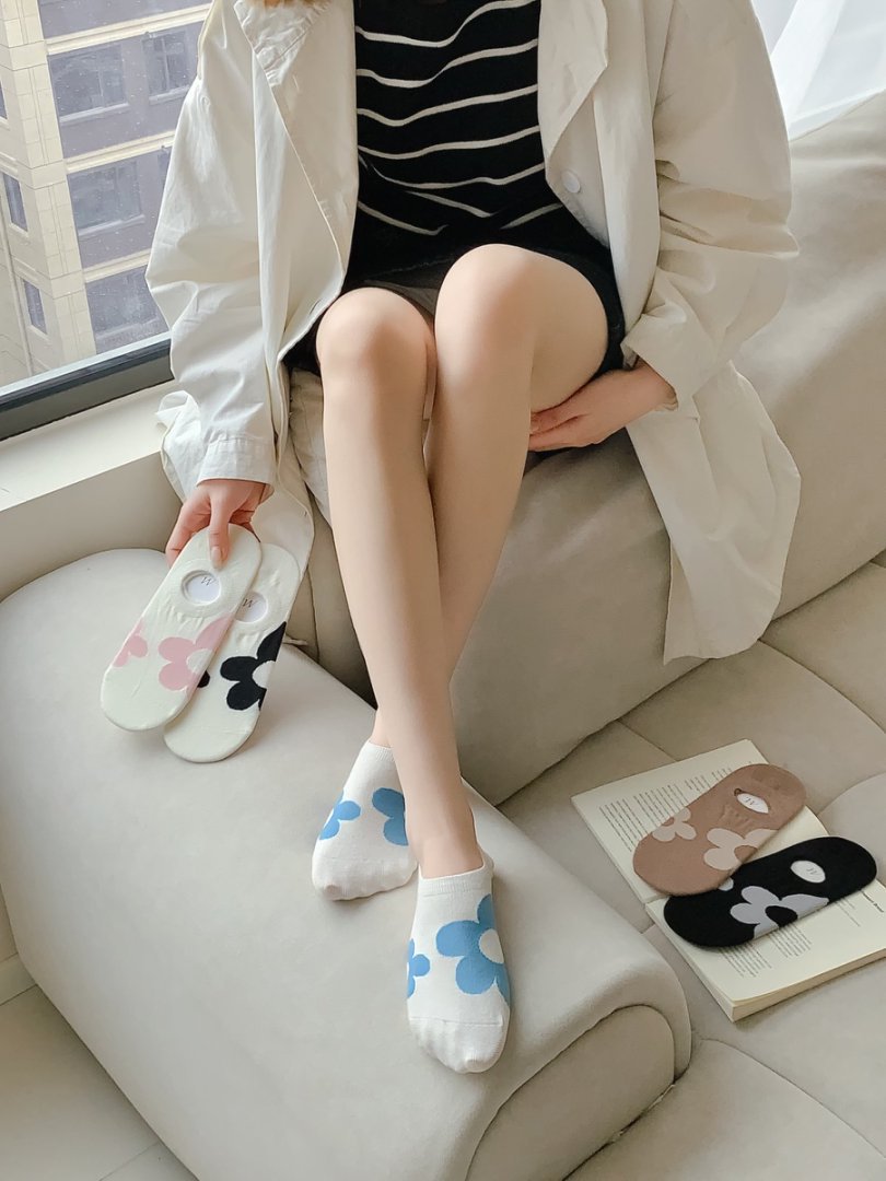 短袜女隐形袜船袜奶油蓝色潮流时尚可爱百搭浅口袜子夏季薄袜子