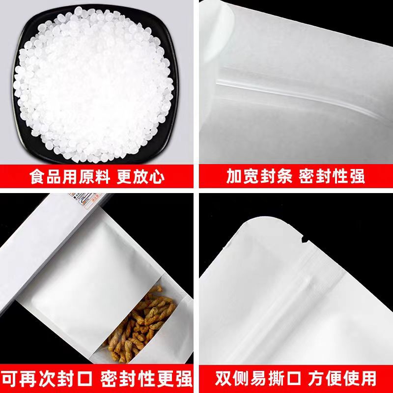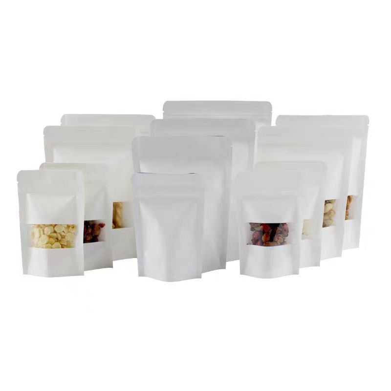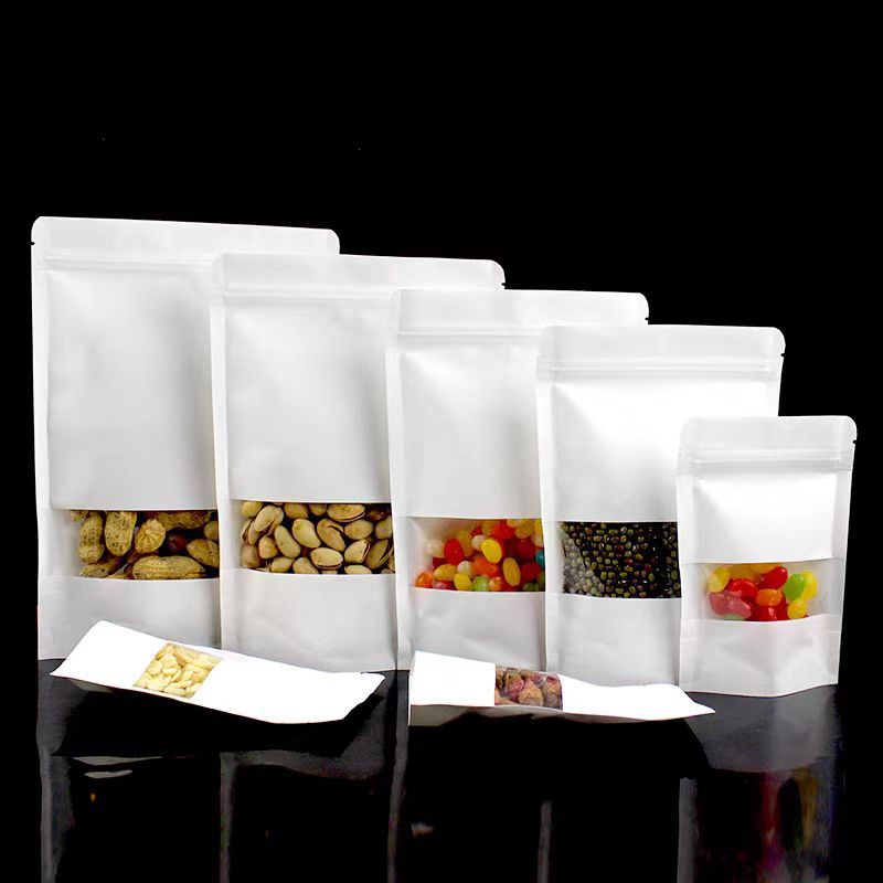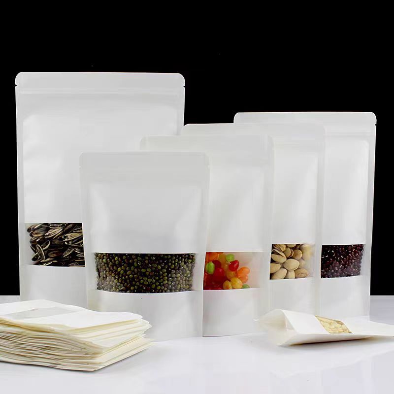 高清开窗白色牛皮纸袋食品自立袋牛皮纸自封袋防潮加厚密封包装袋
