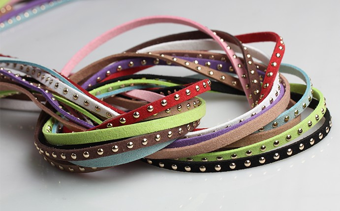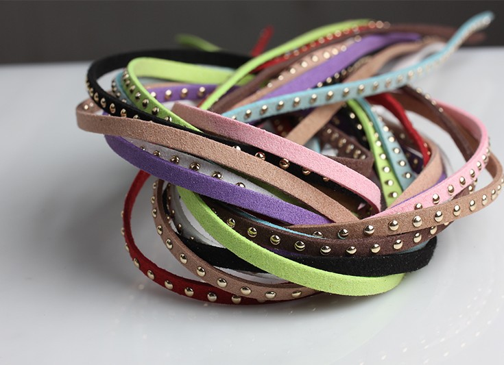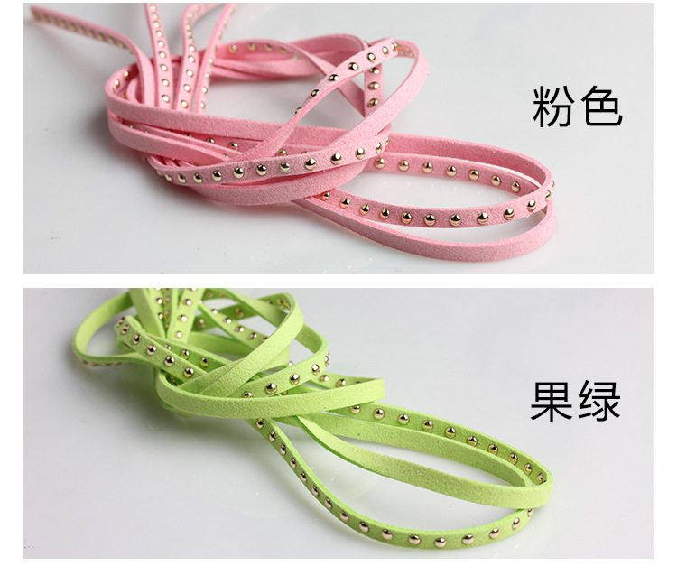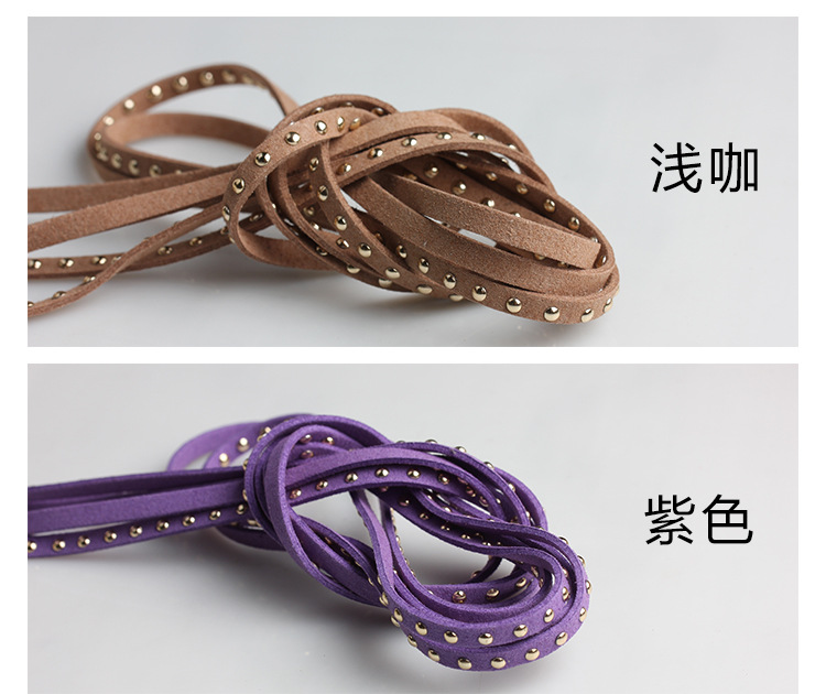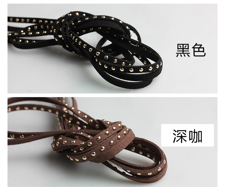 现货批发 5mm宽铆钉绳 黑色绒布镶钉绳 双面绒镶嵌铆钉麂皮绳
