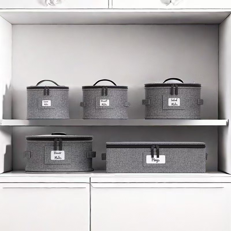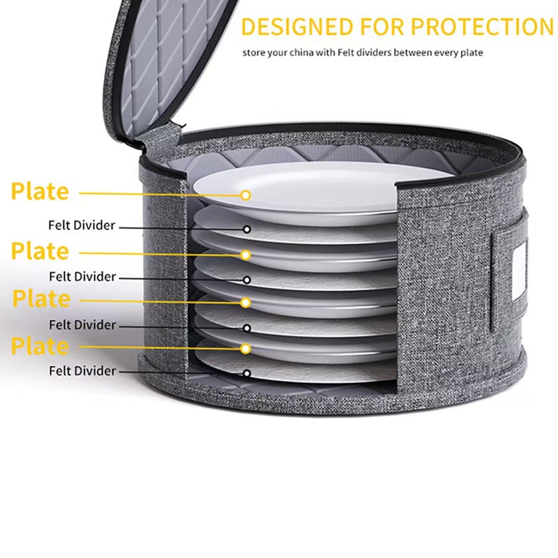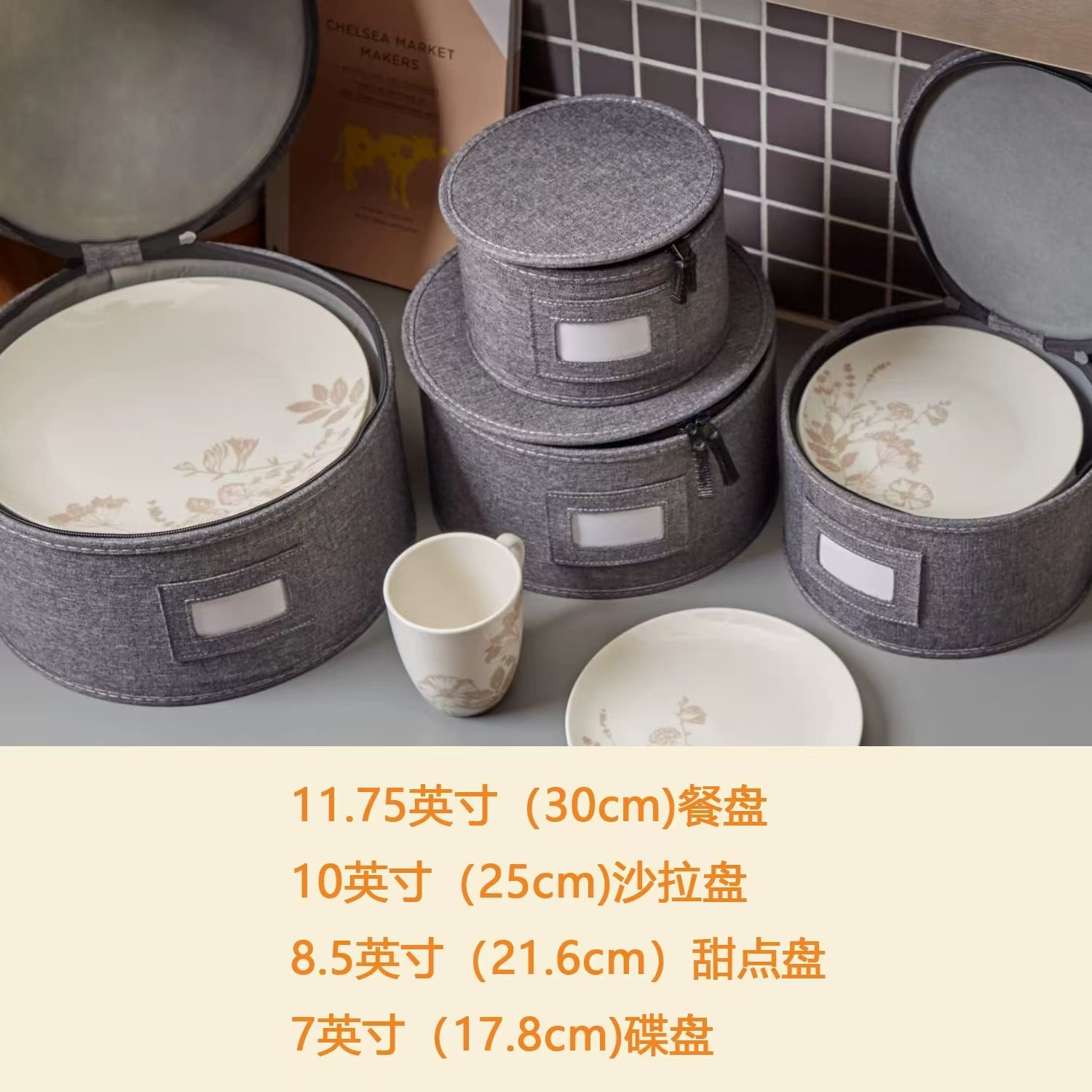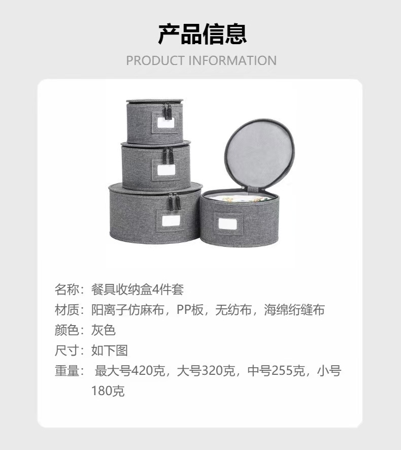 亚马逊跨境餐盘圆桶收纳盒布艺厨房餐具防尘收纳箱带盖送针刺棉