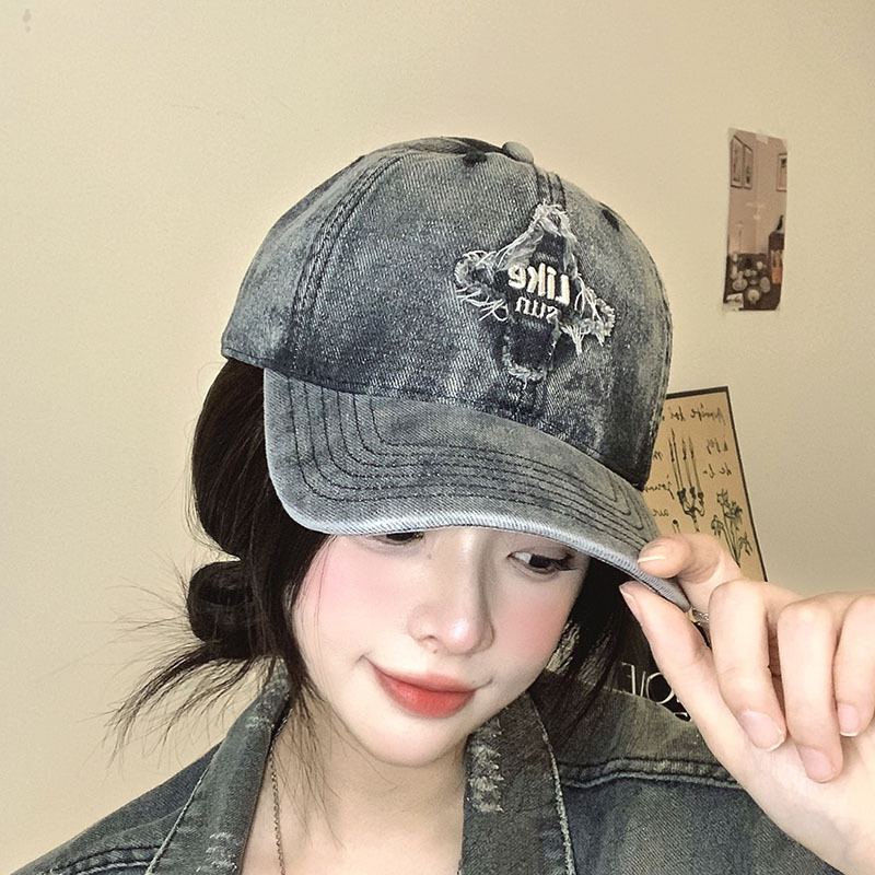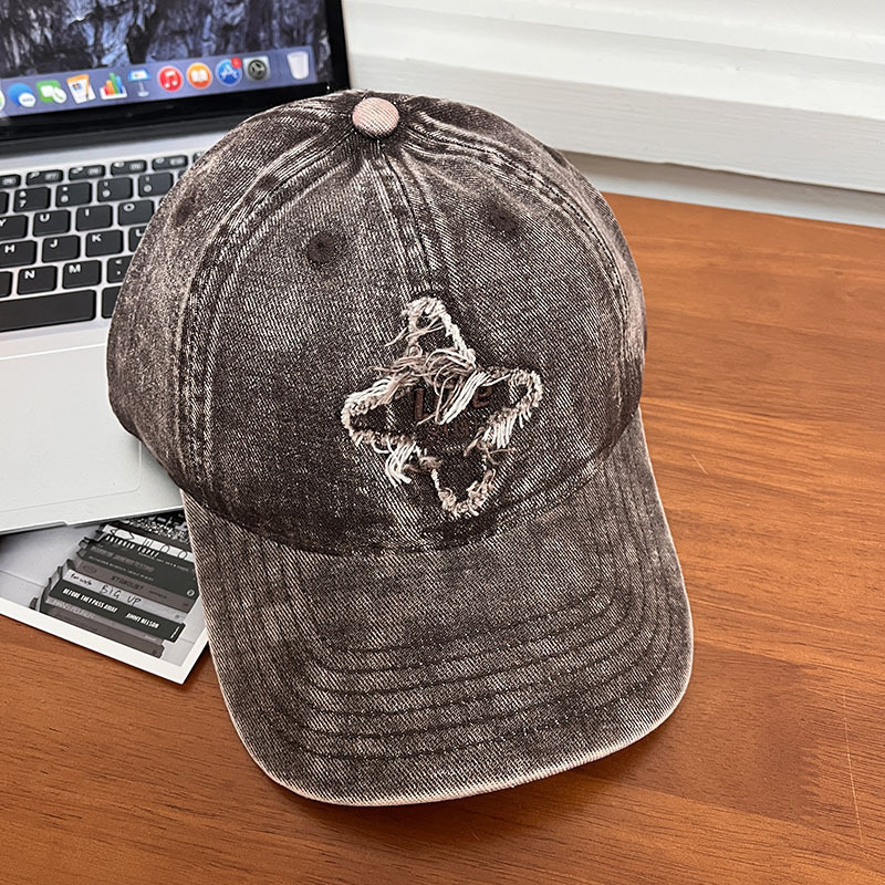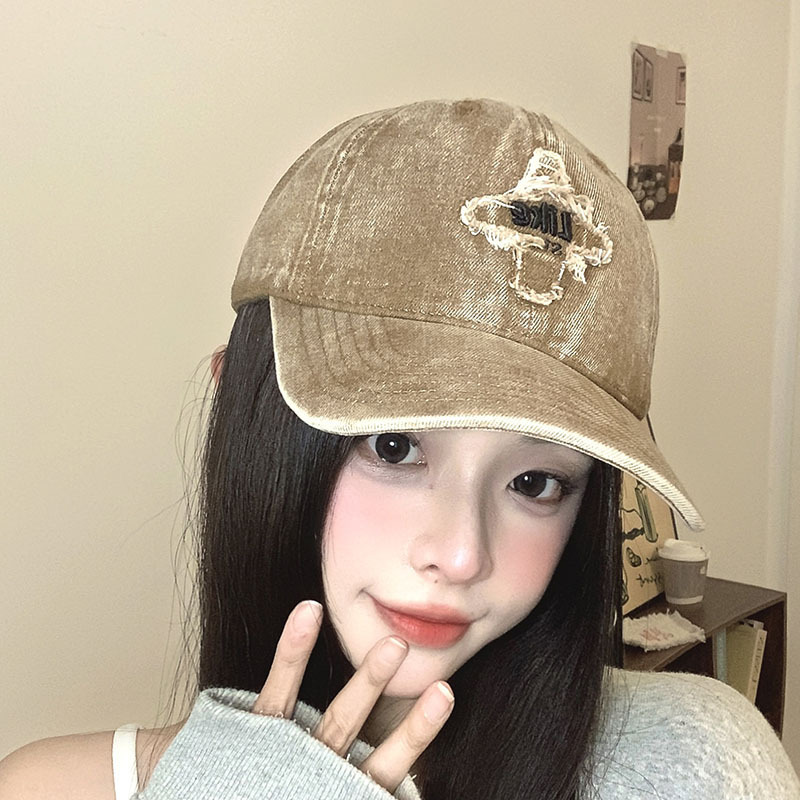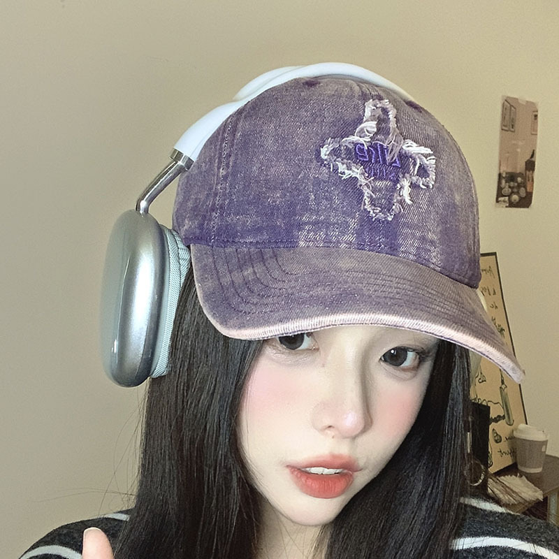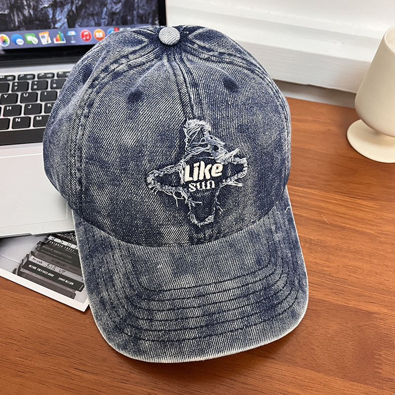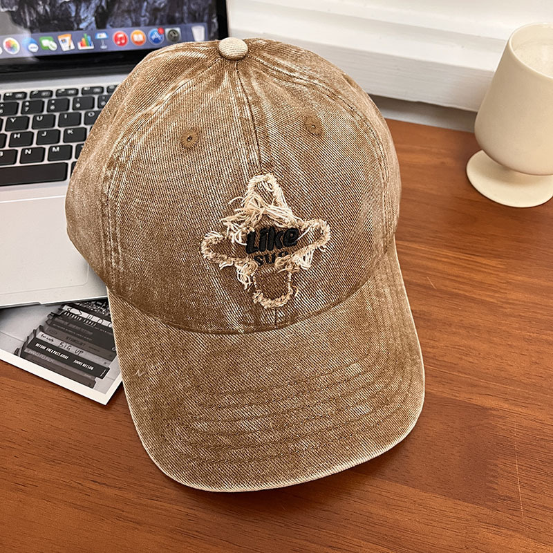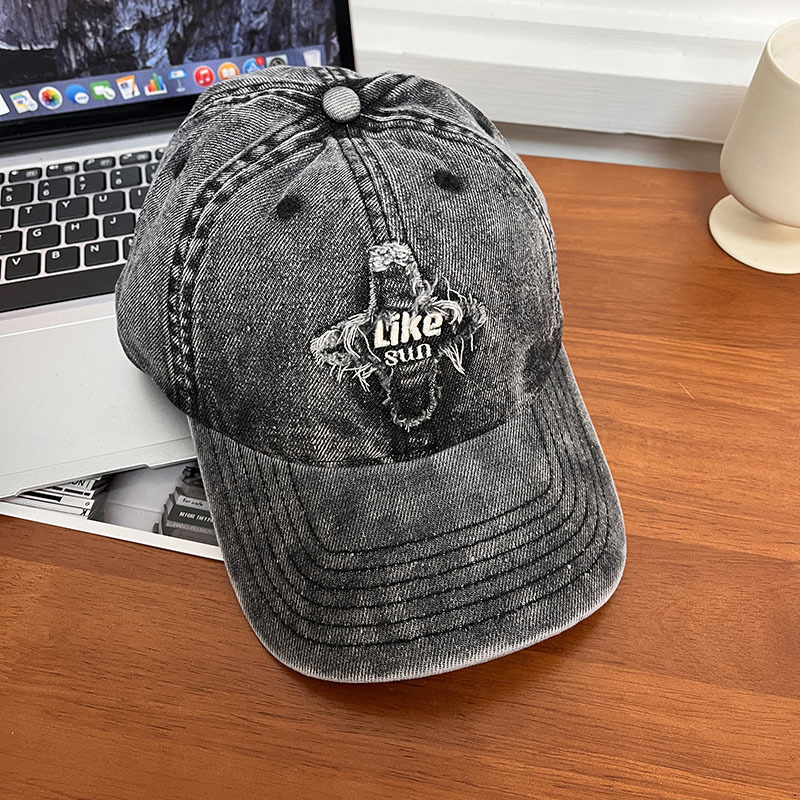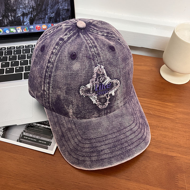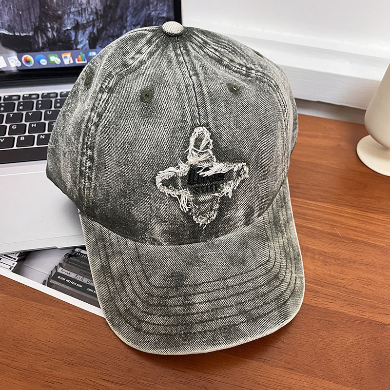 韩版男女做旧十字毛边水洗风格棒球帽子休闲时尚字母潮流个性情侣
