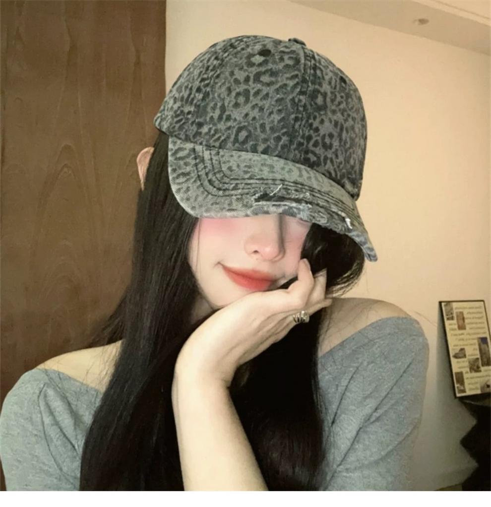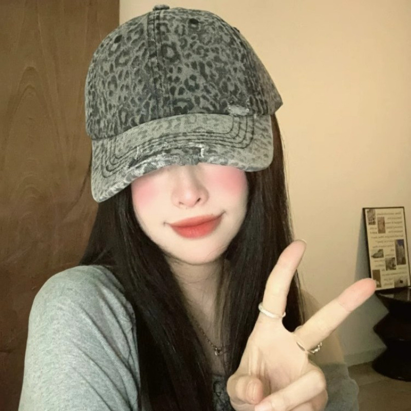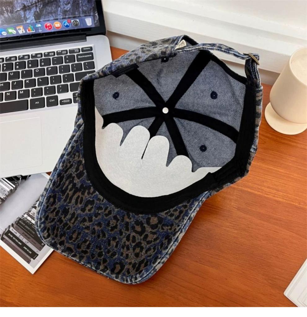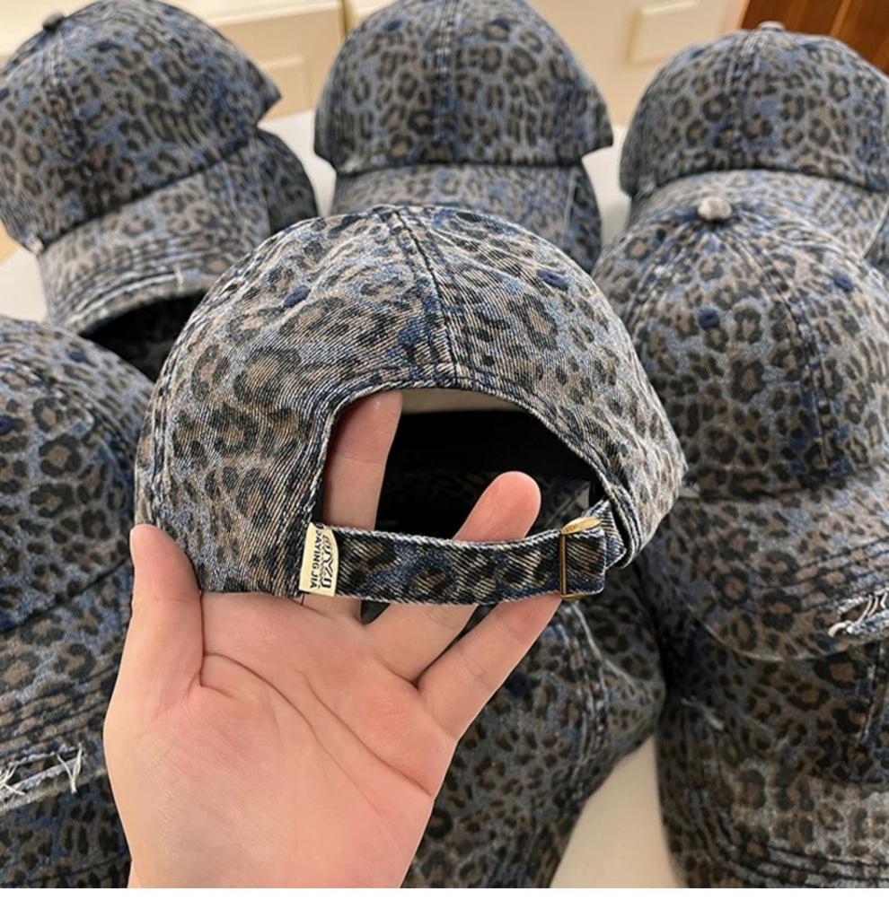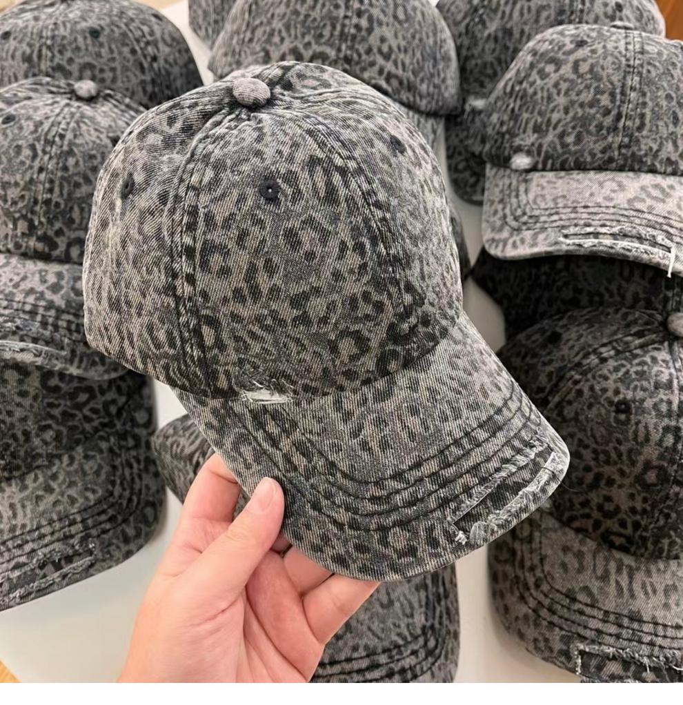 复古水洗豹纹棒球帽子女春夏街头时尚潮流显脸小游玩遮阳防晒鸭舌