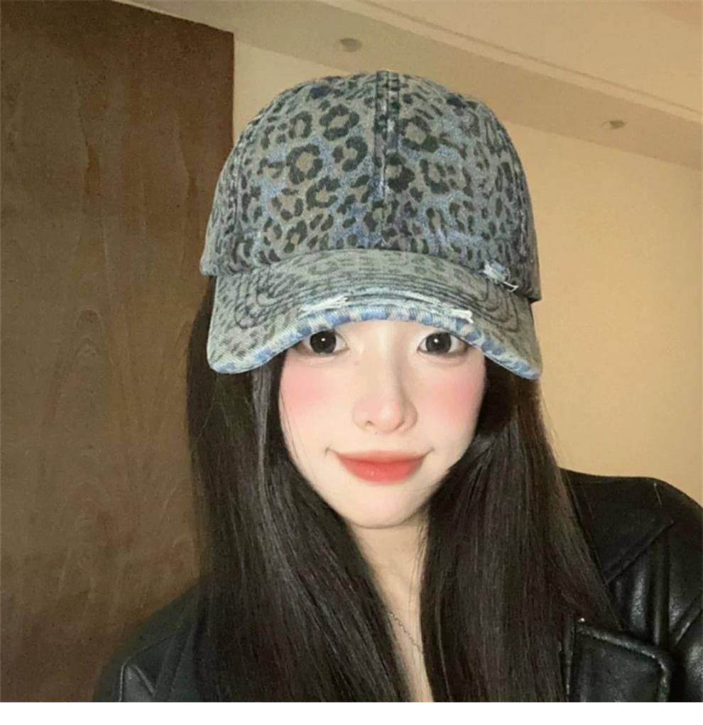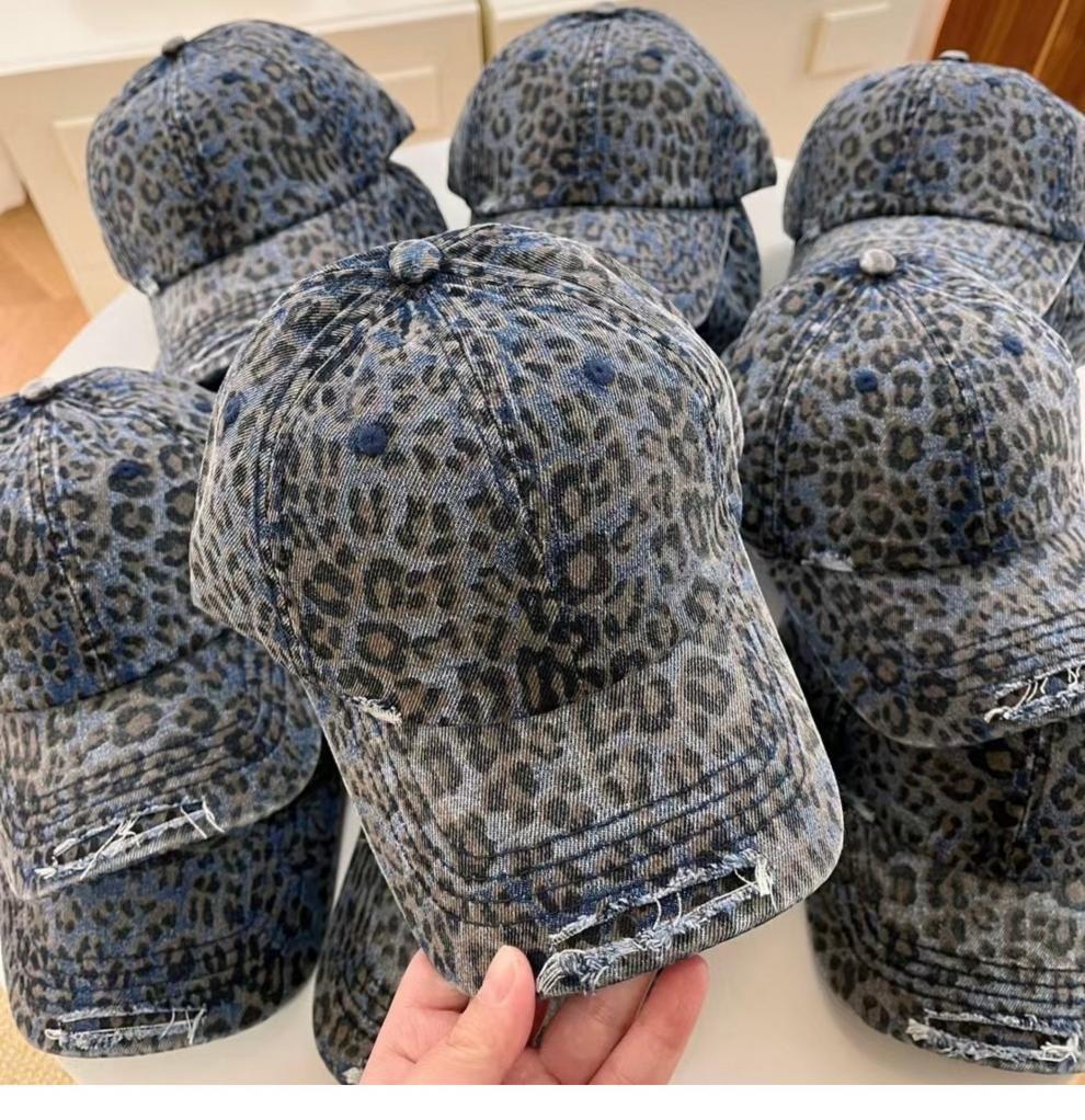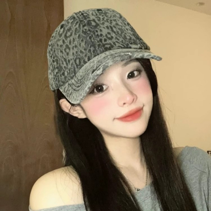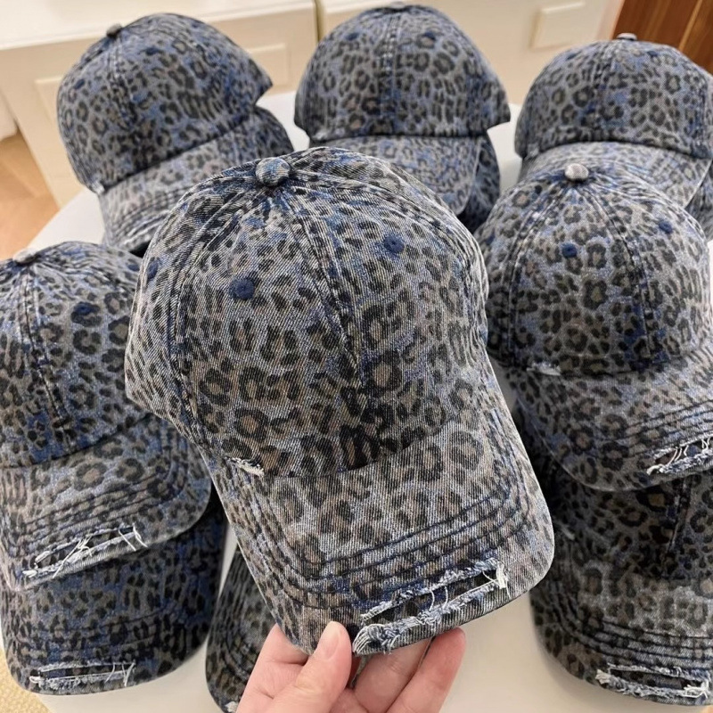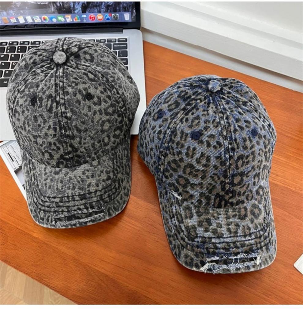复古水洗豹纹棒球帽子女春夏街头时尚潮流显脸小游玩遮阳防晒鸭舌
