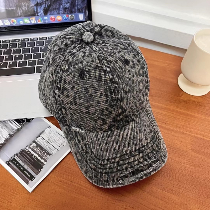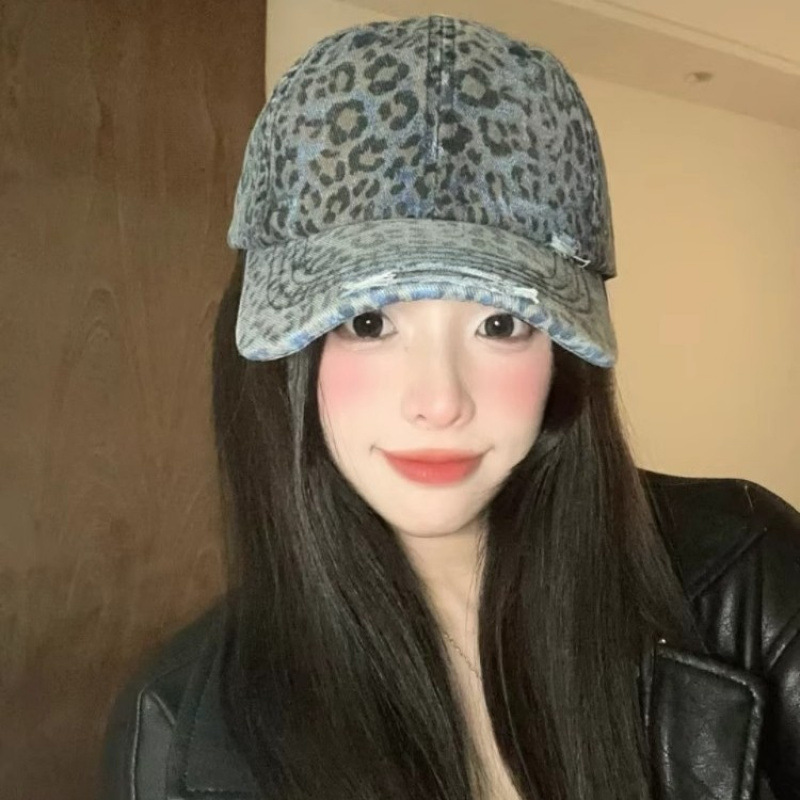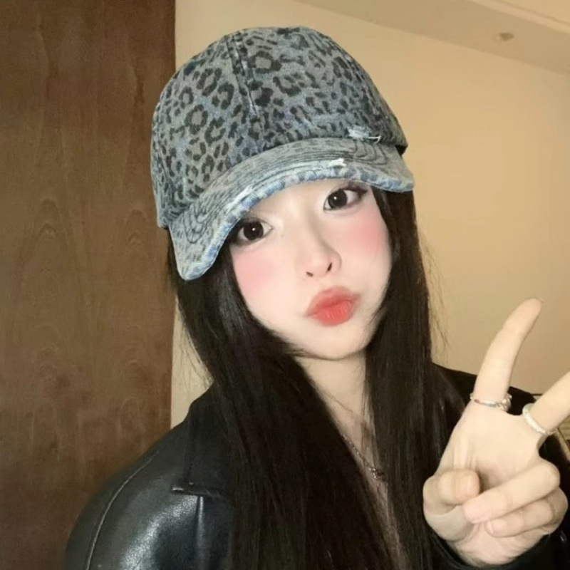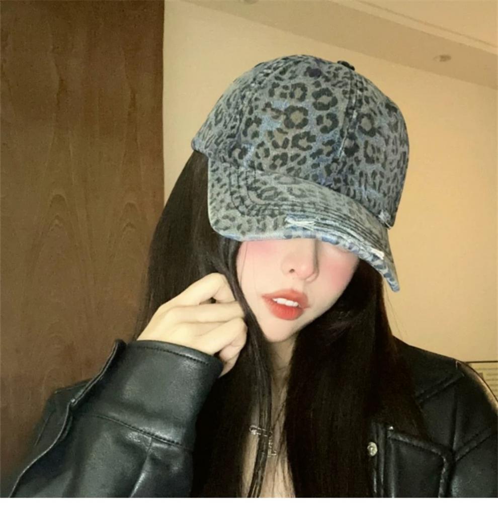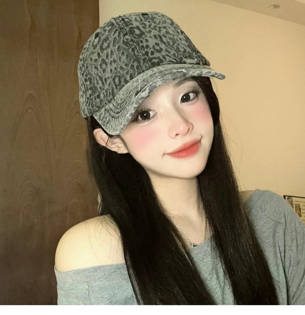 复古水洗豹纹棒球帽子女春夏街头时尚潮流显脸小游玩遮阳防晒鸭舌