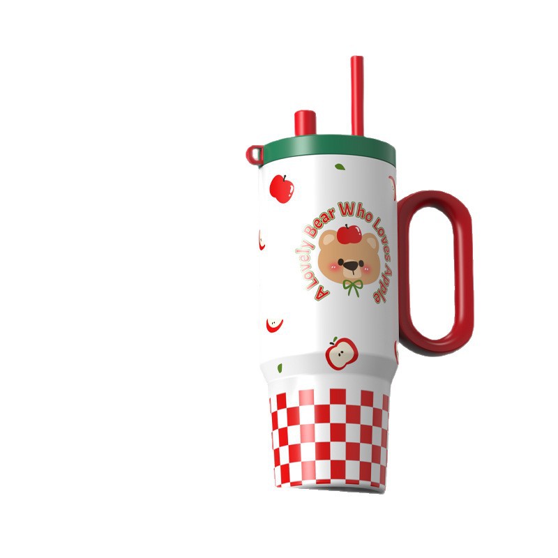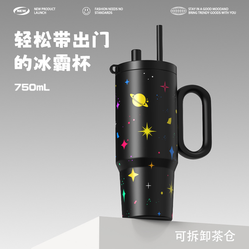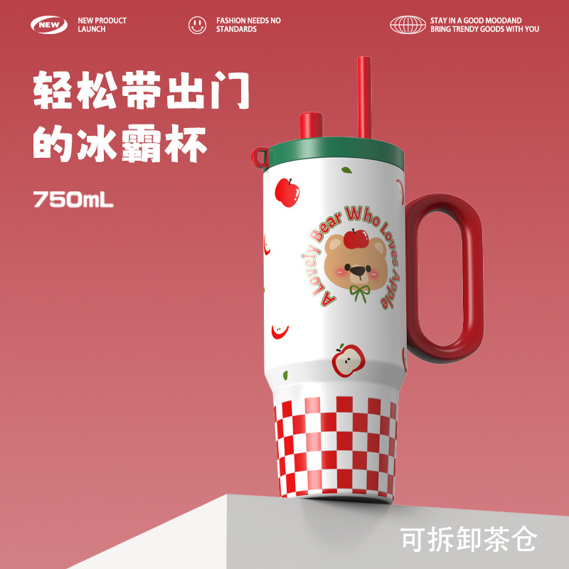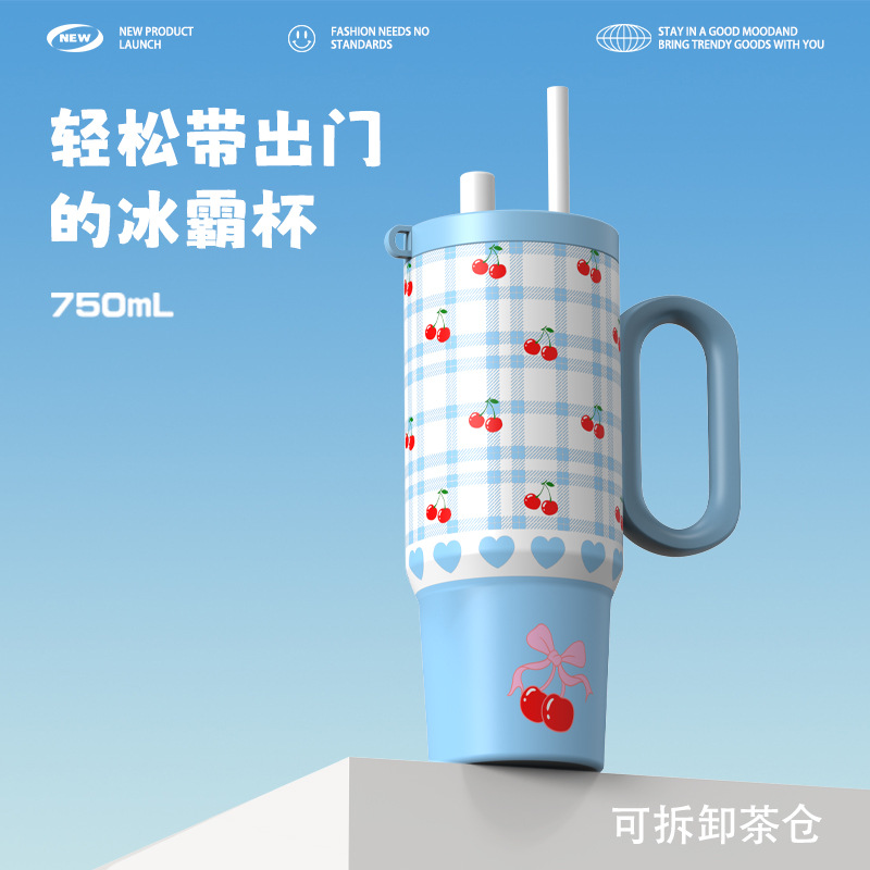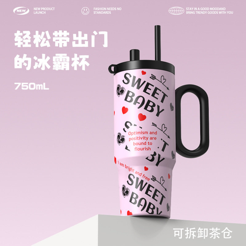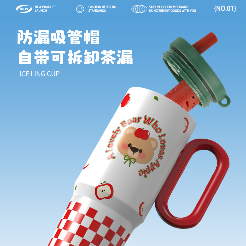 316卡通不锈钢保温杯女生高颜值吸管水杯可爱带把手 不锈钢冰霸杯