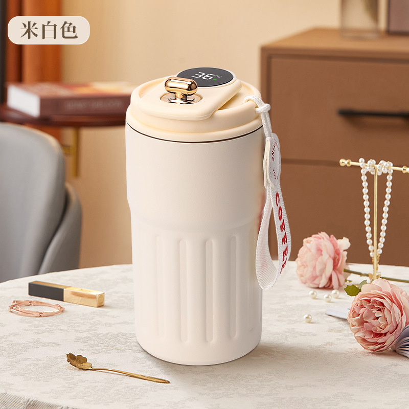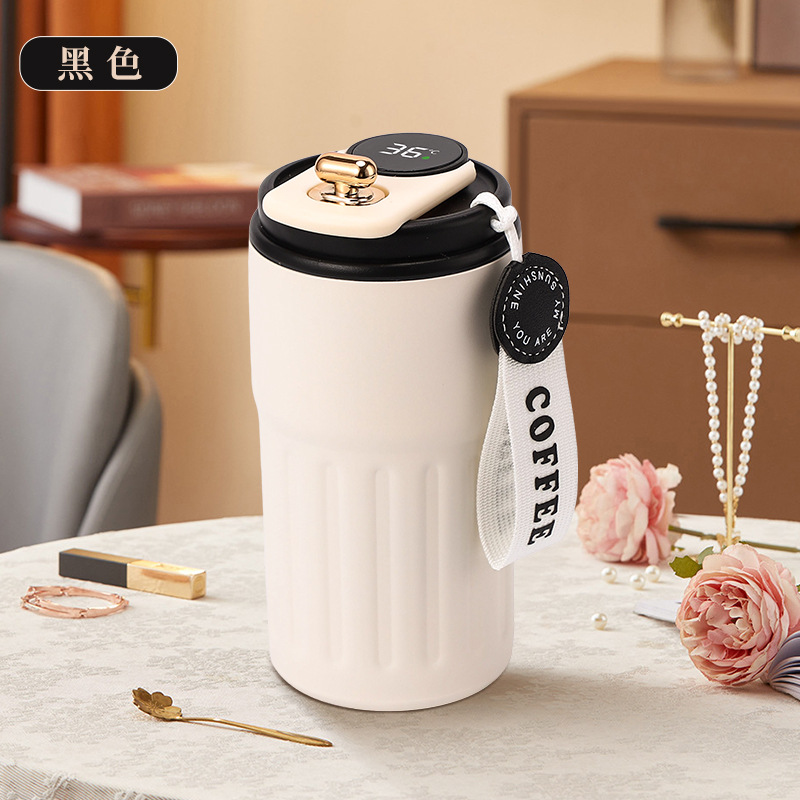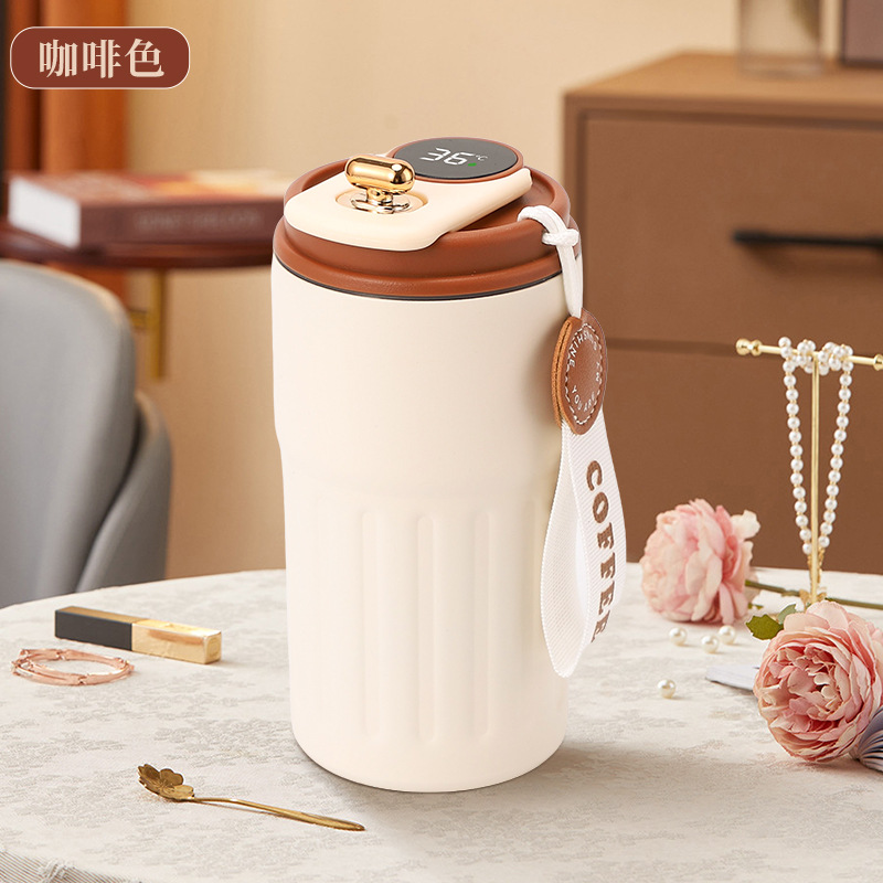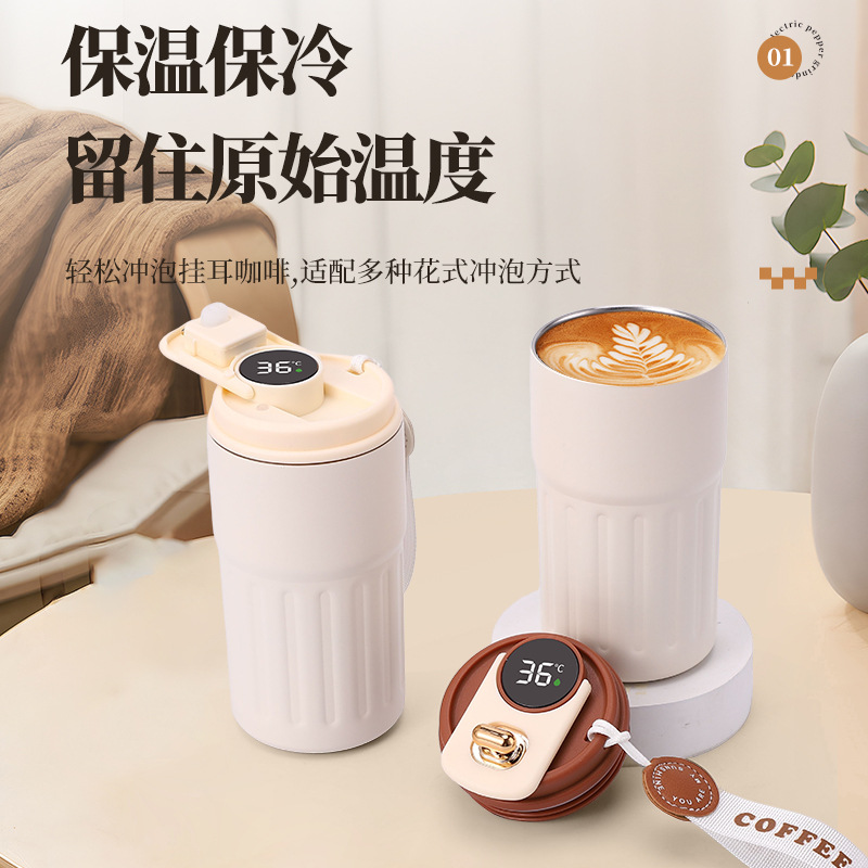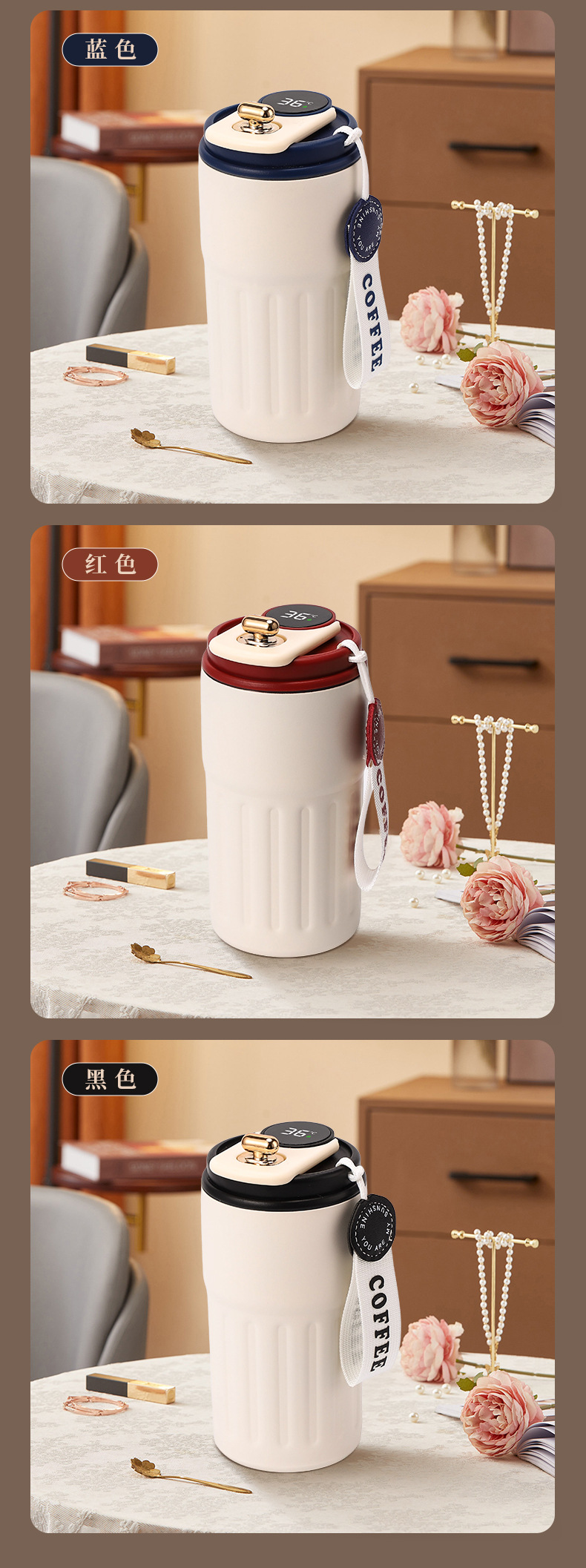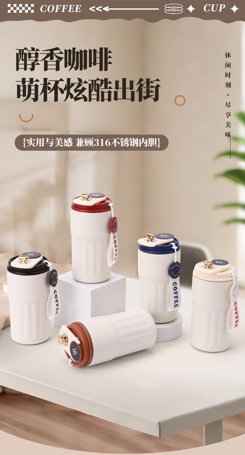 咖啡保温杯女高颜值316不锈钢保温杯车载提绳智能数显咖啡随行杯