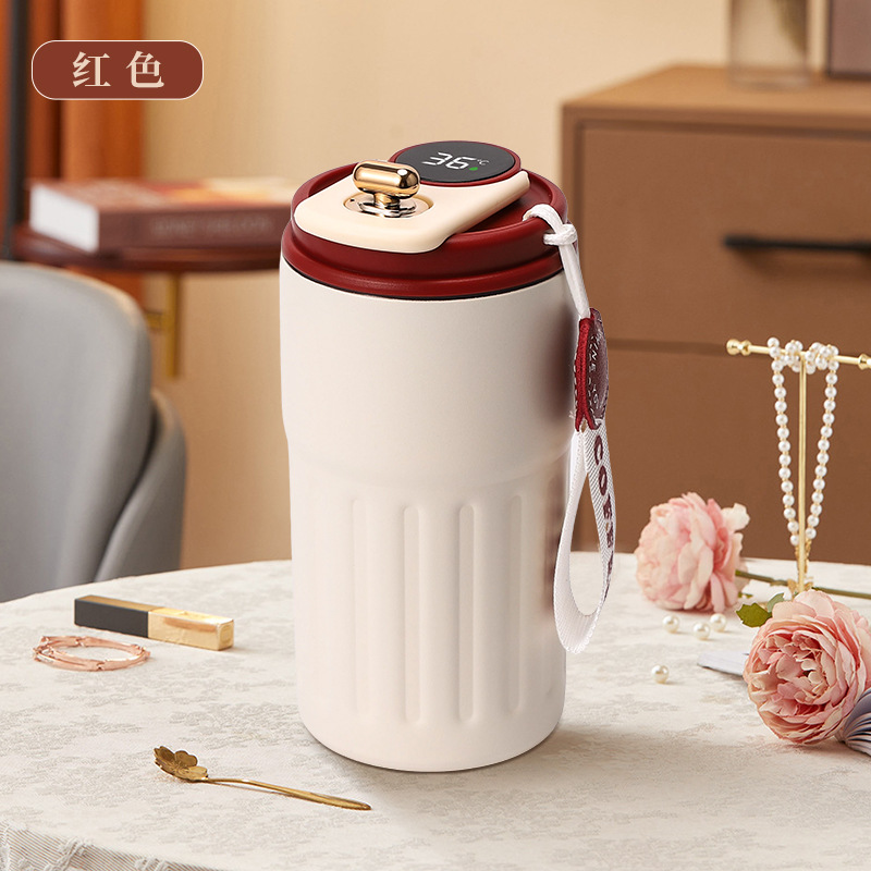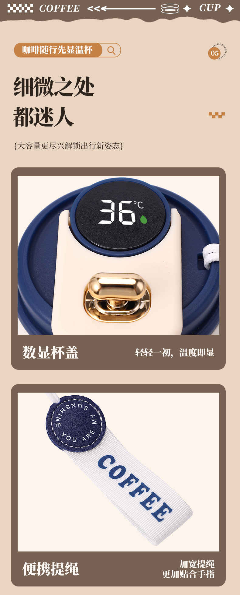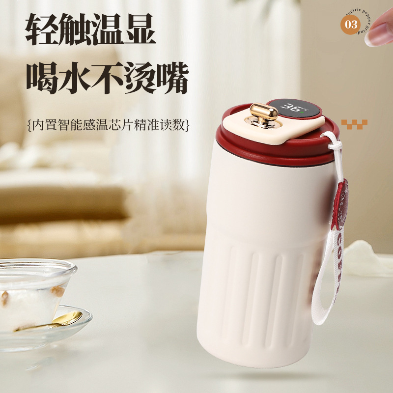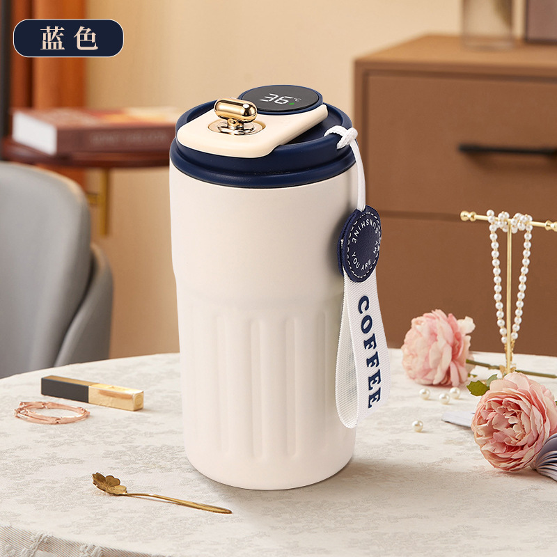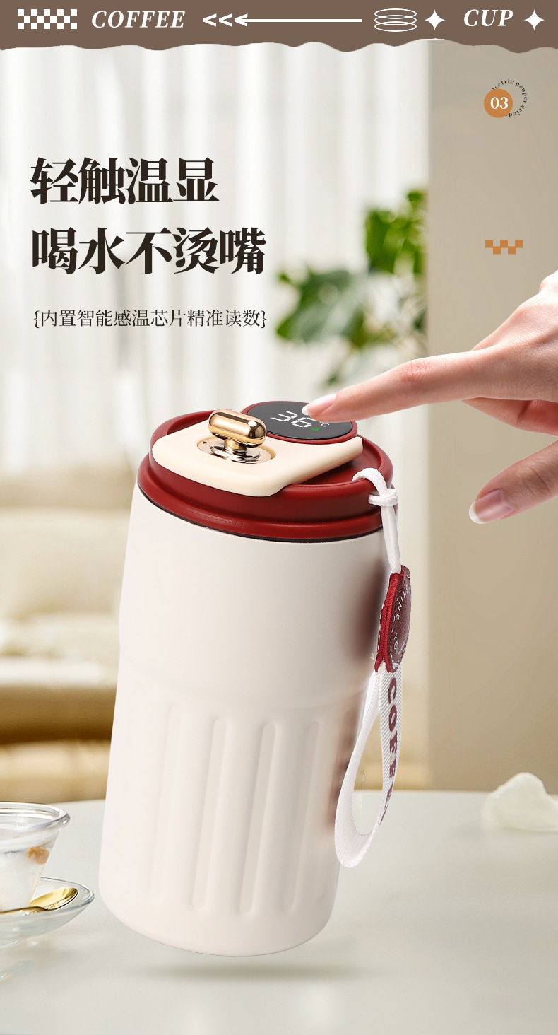 咖啡保温杯女高颜值316不锈钢保温杯车载提绳智能数显咖啡随行杯