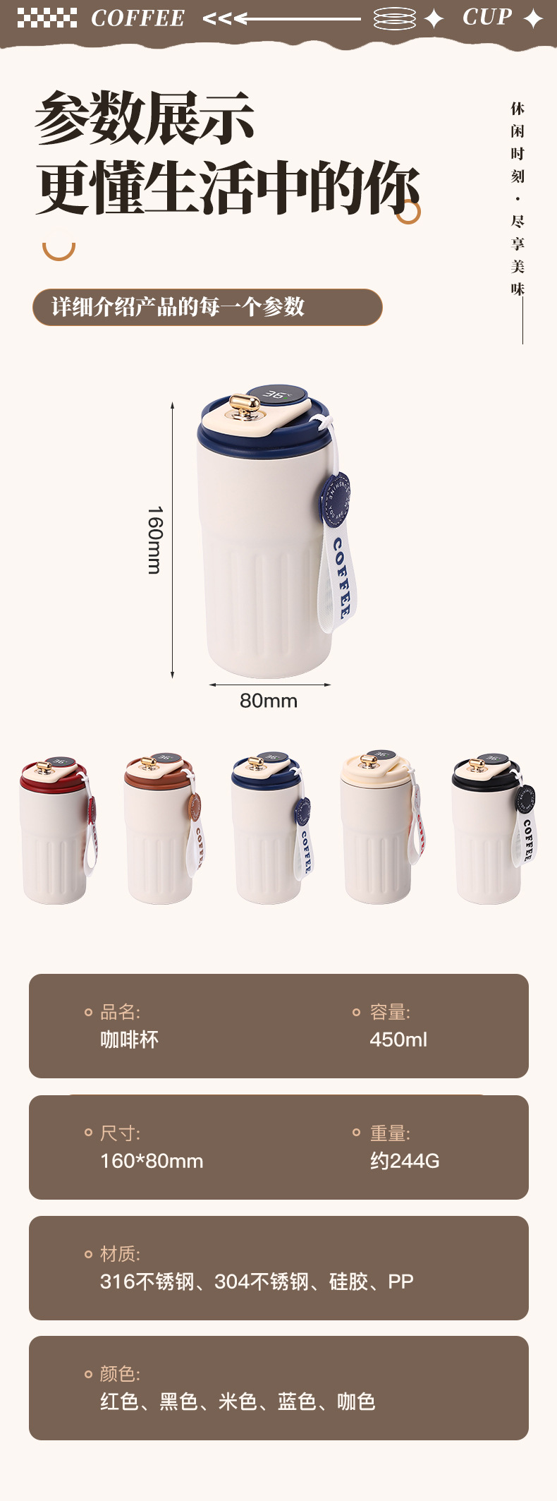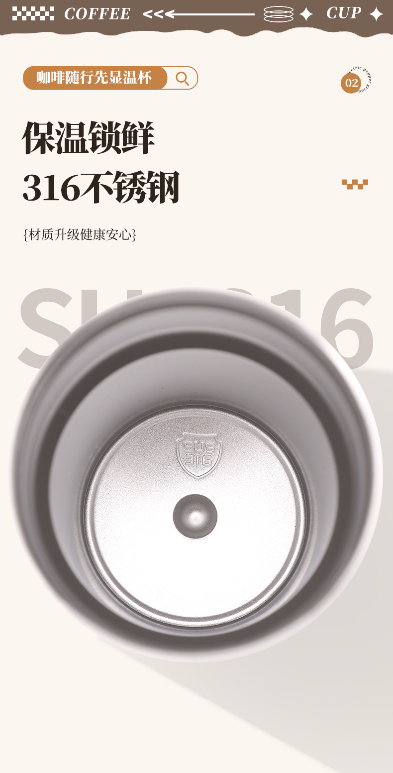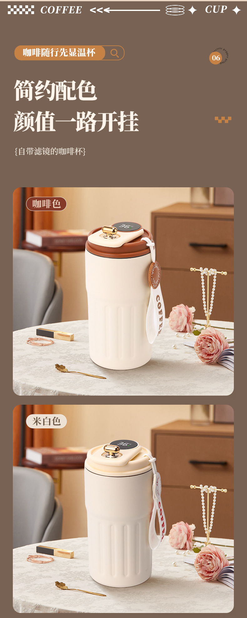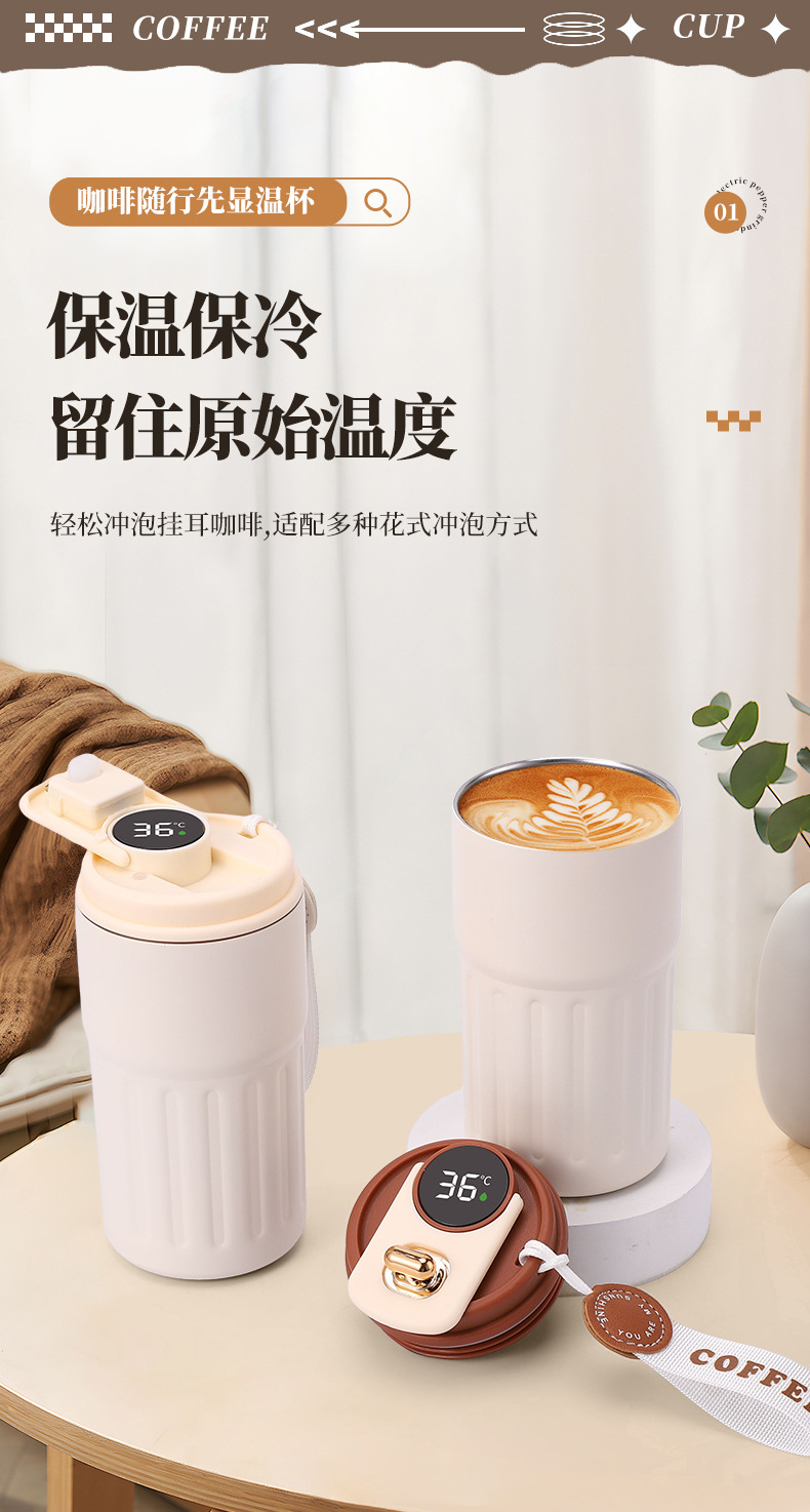 咖啡保温杯女高颜值316不锈钢保温杯车载提绳智能数显咖啡随行杯