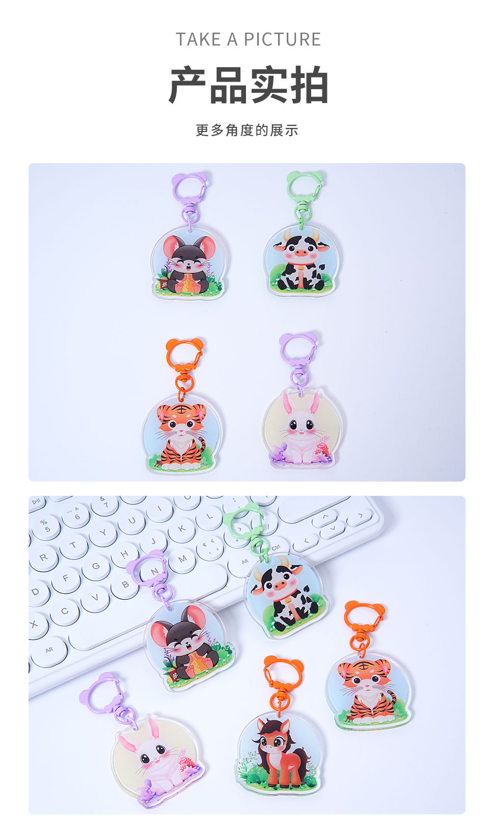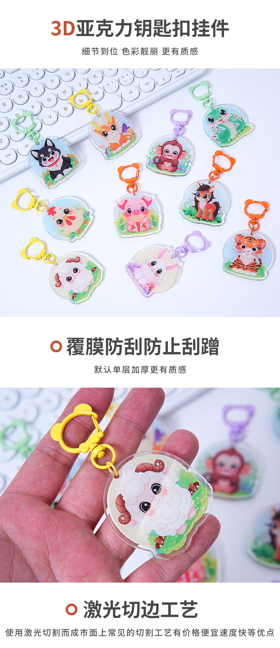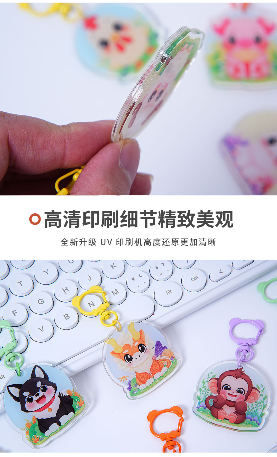 十二生肖系列钥匙扣配件亚克力双面钥匙扣挂件高颜值透明钥匙扣