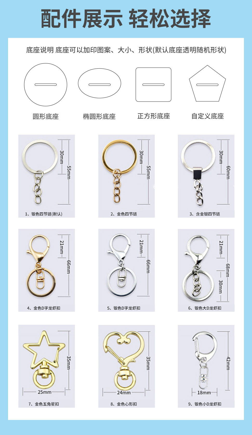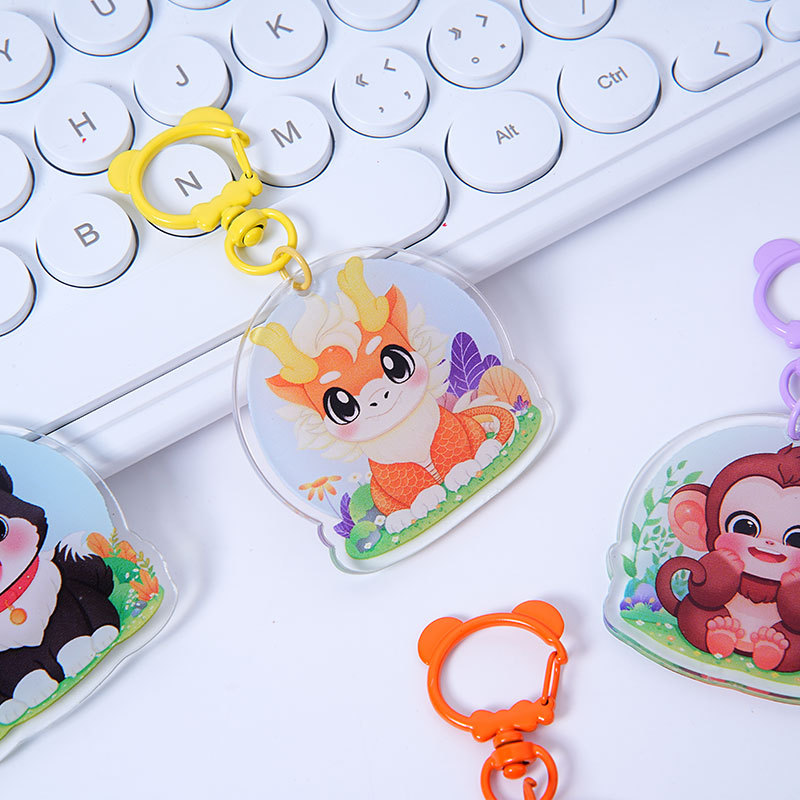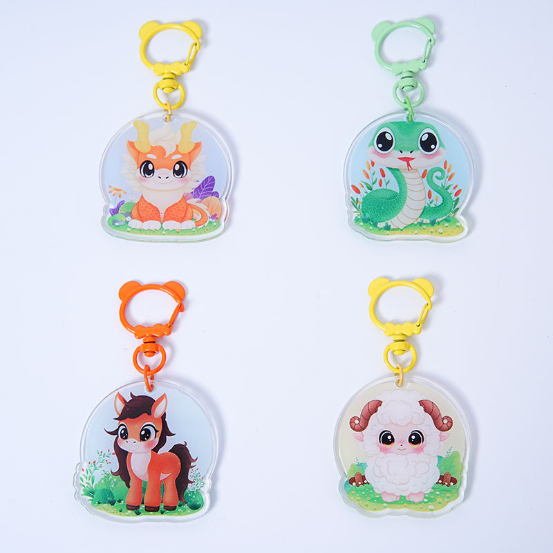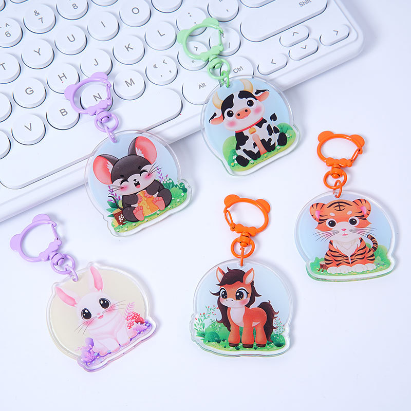 十二生肖系列钥匙扣配件亚克力双面钥匙扣挂件高颜值透明钥匙扣
