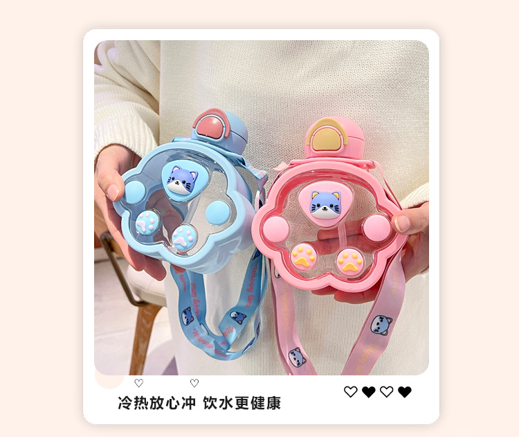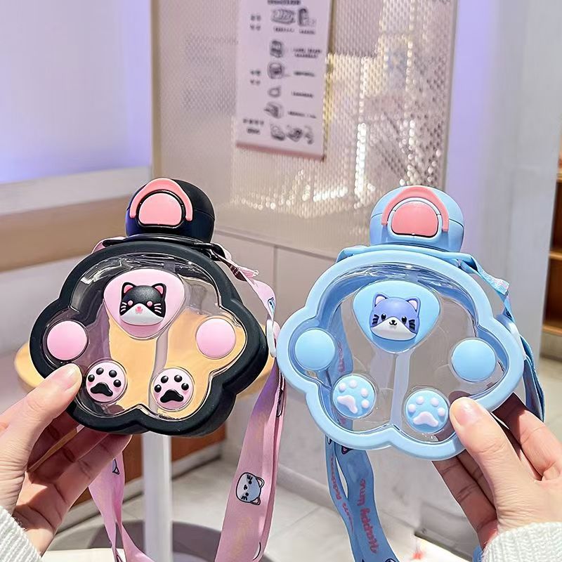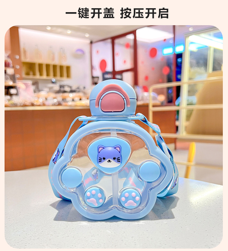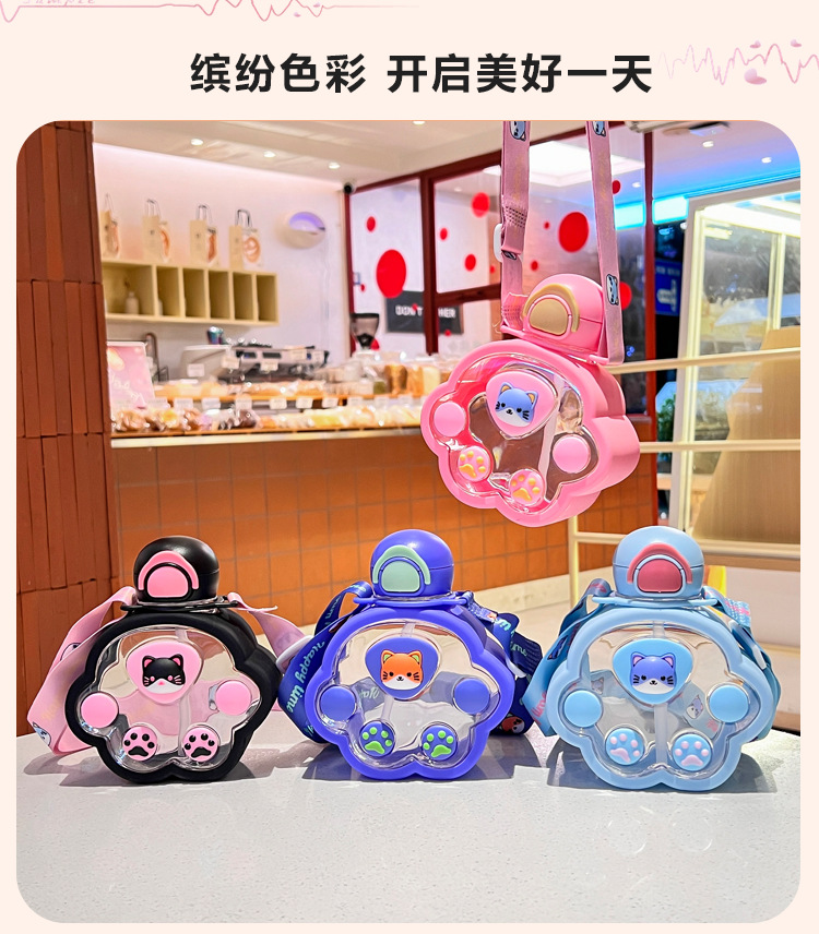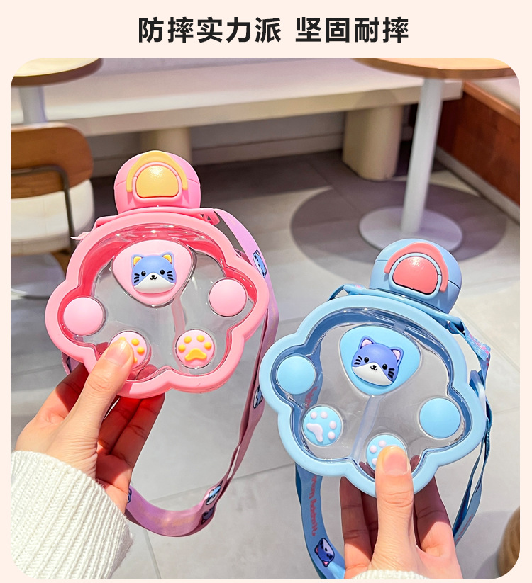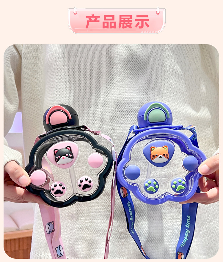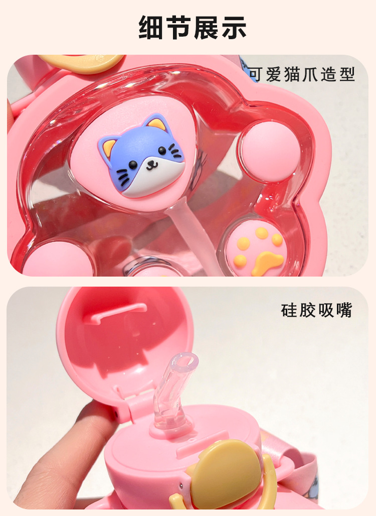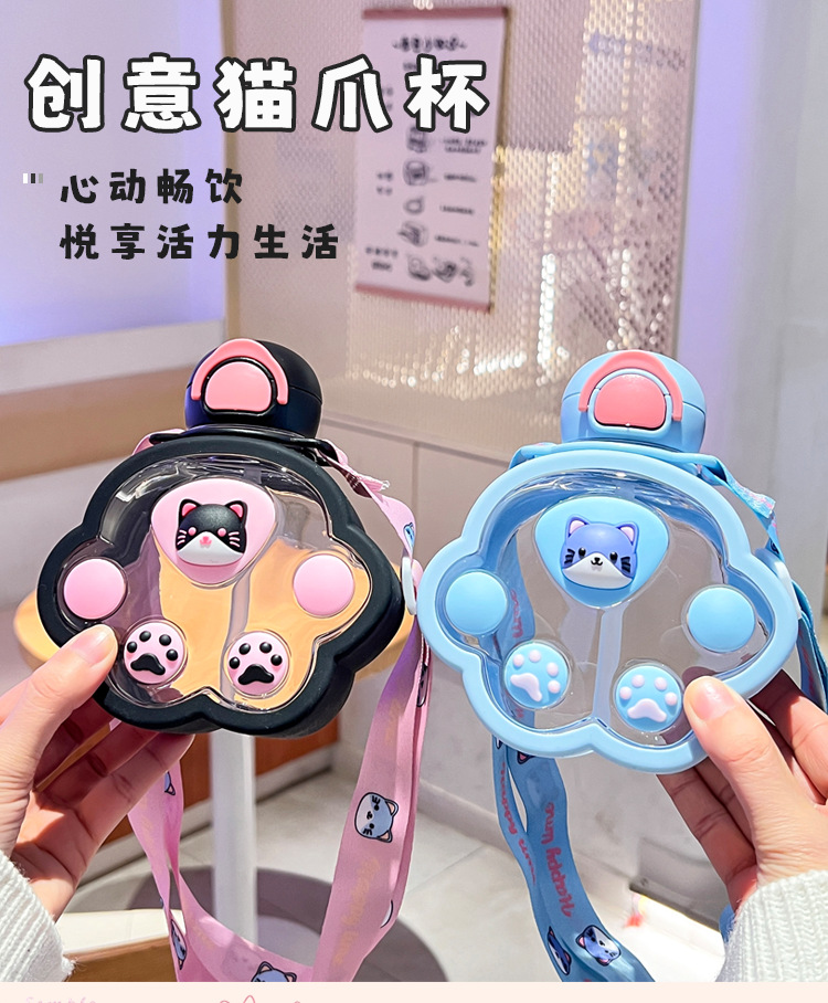 2025新款猫爪塑料杯可爱萌趣儿童吸管杯子便携高颜值猫咪喝水杯子