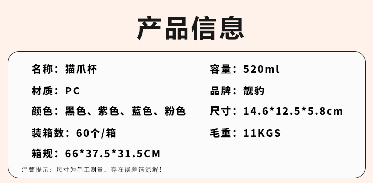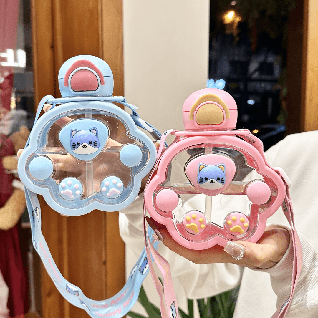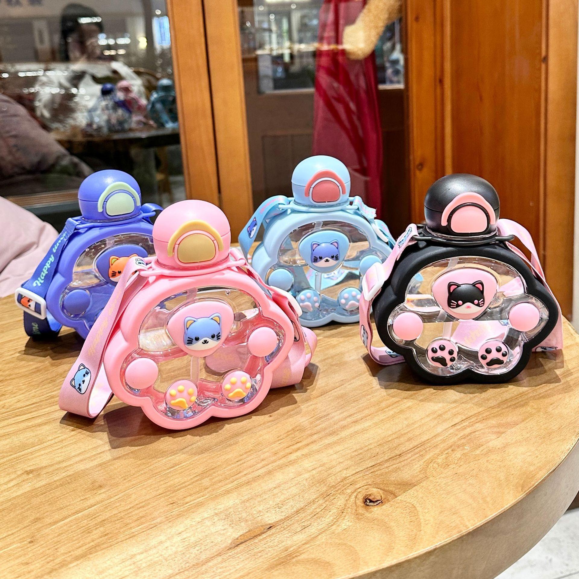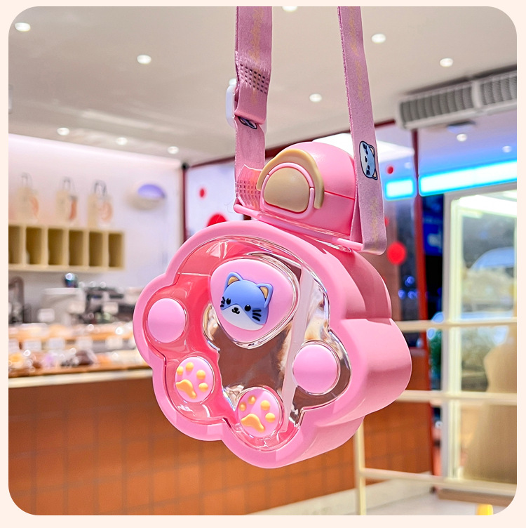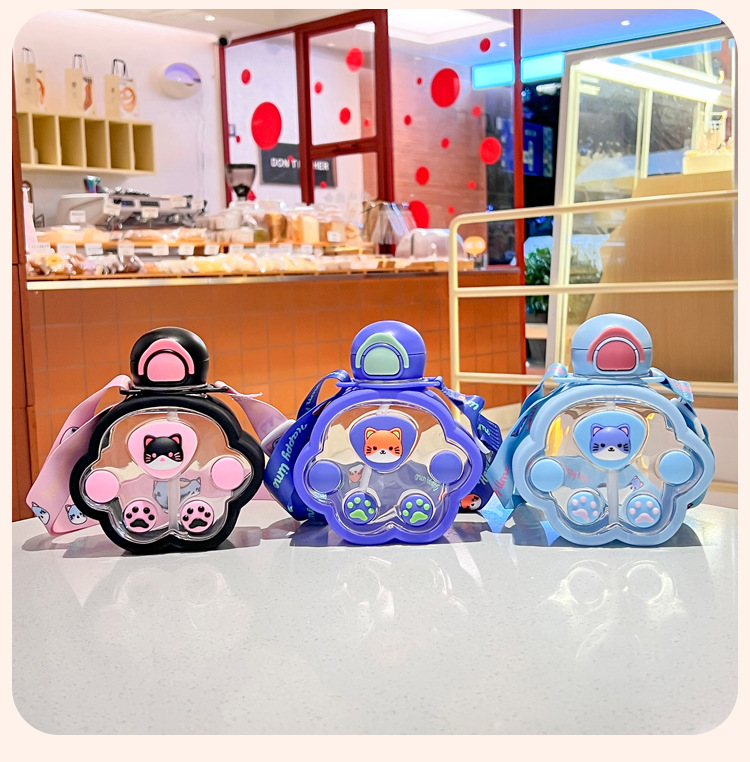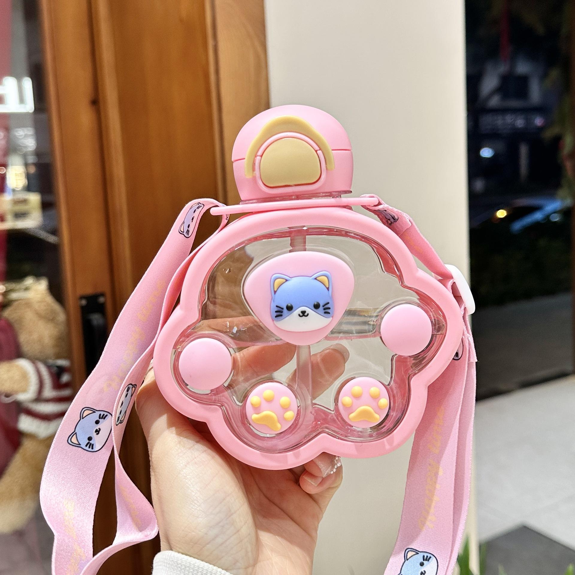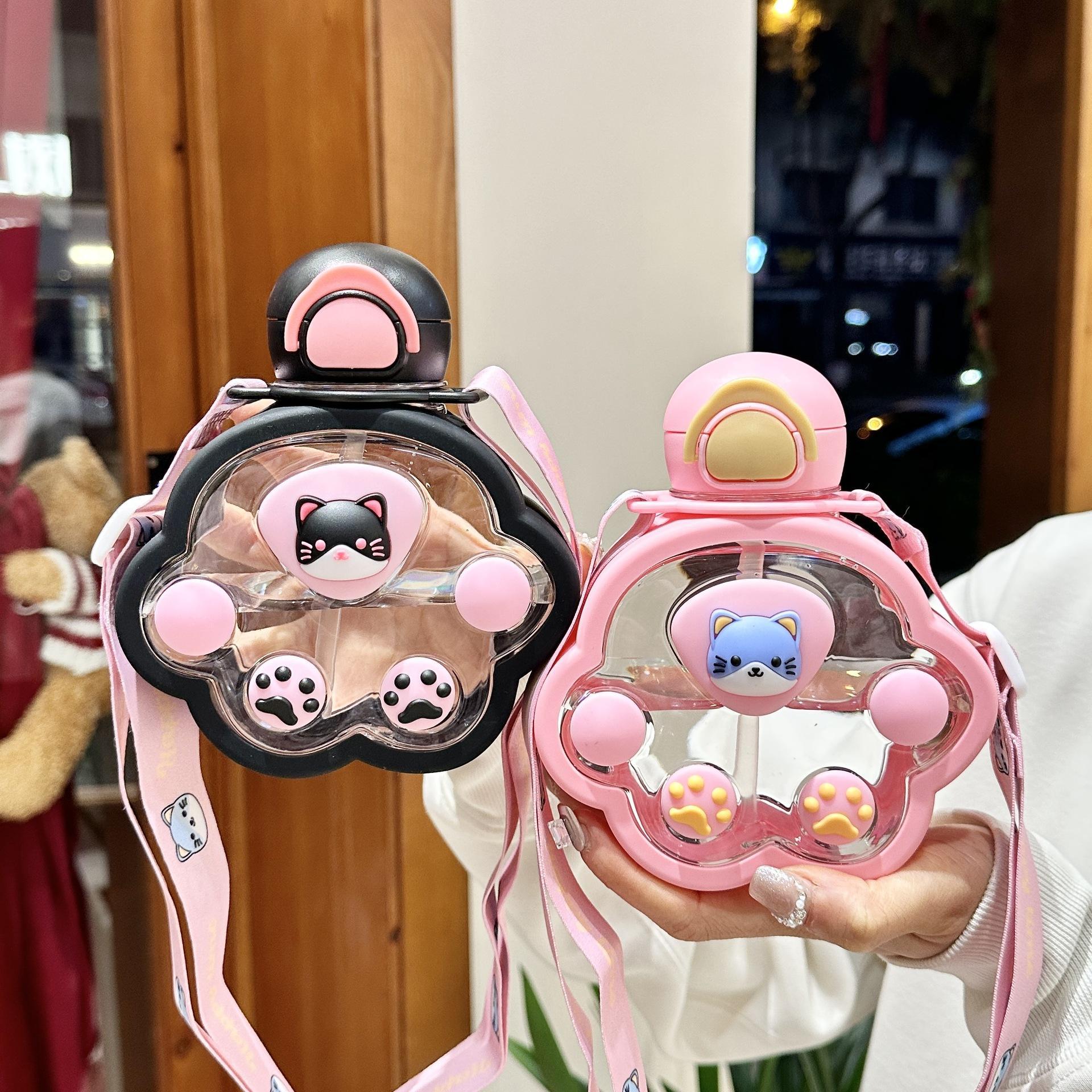 2025新款猫爪塑料杯可爱萌趣儿童吸管杯子便携高颜值猫咪喝水杯子