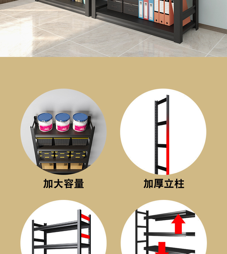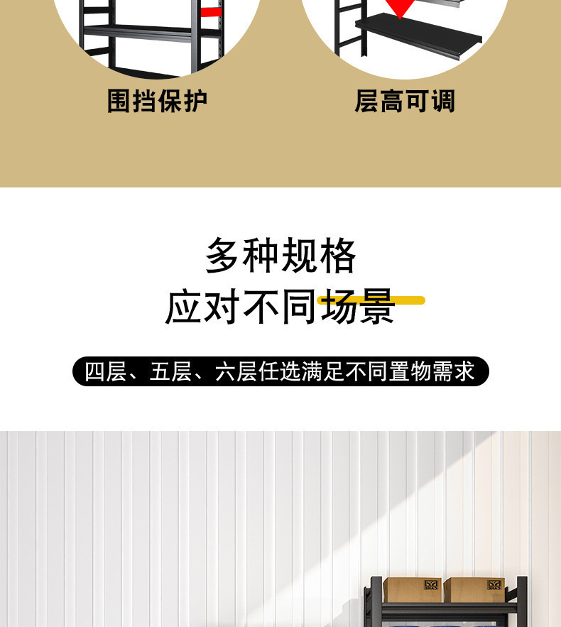 落地多层家用阳台货架置物架杂物间仓库储物架商用超市钢制收纳架
