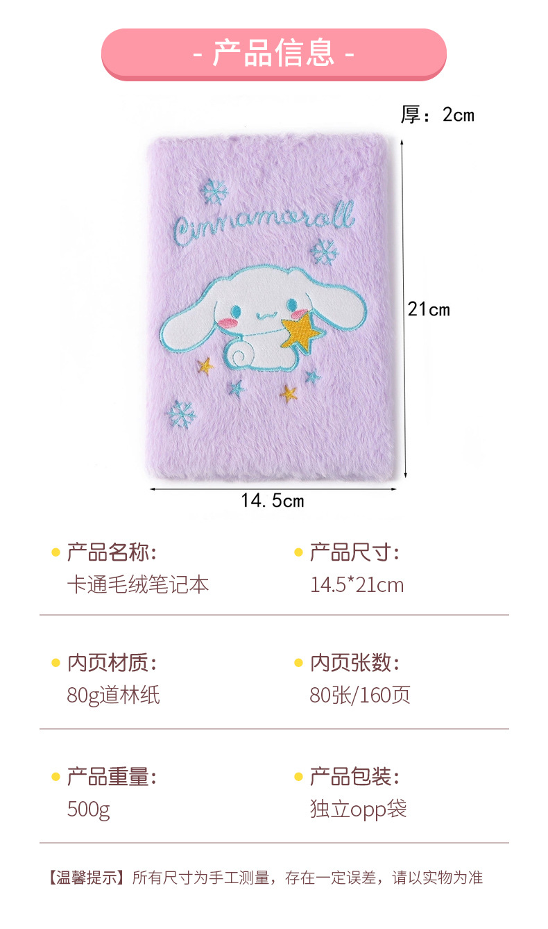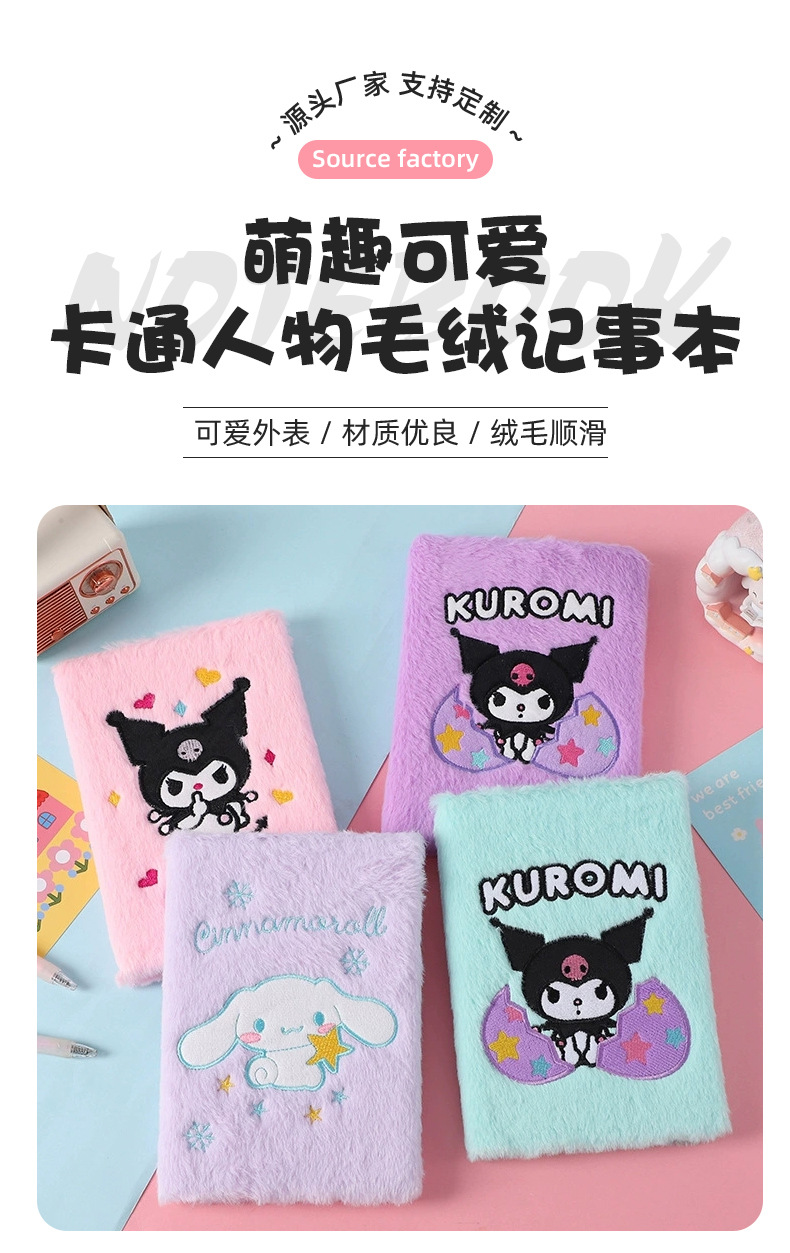 卡通人物毛绒记事本日韩可爱少女风便携笔记本学生学习DIY手账本