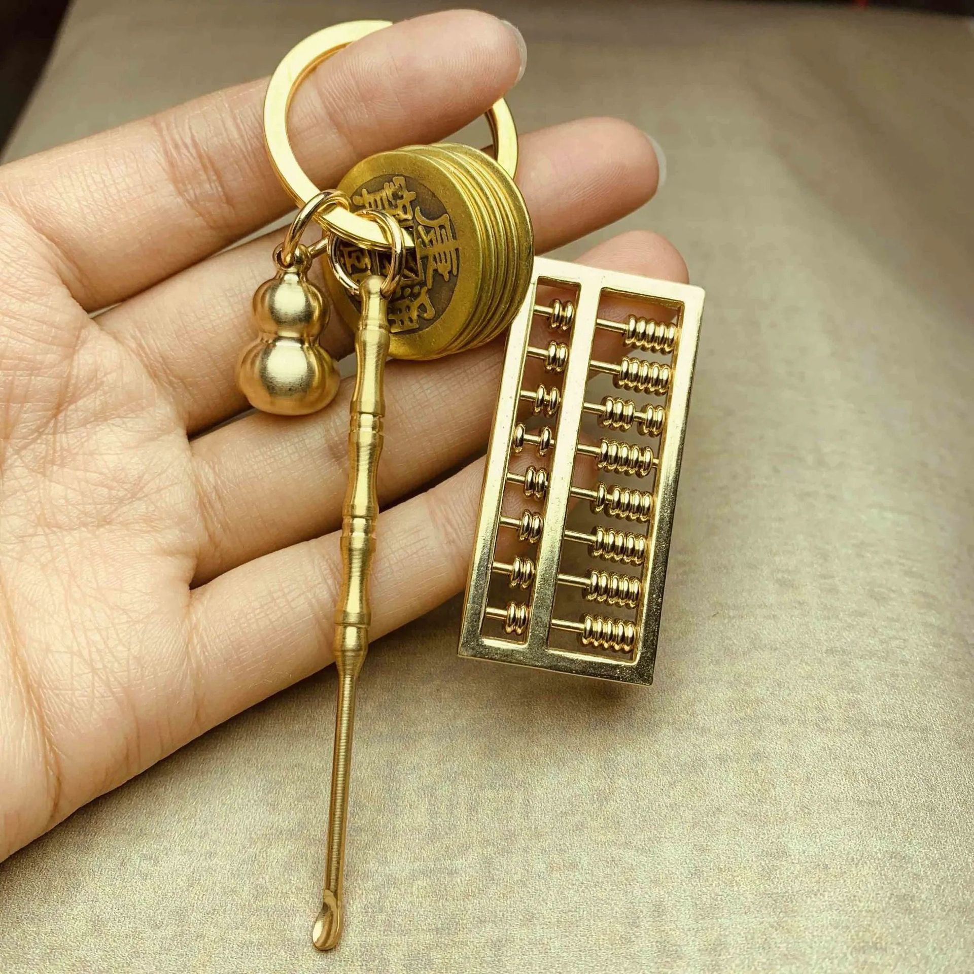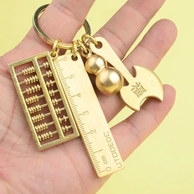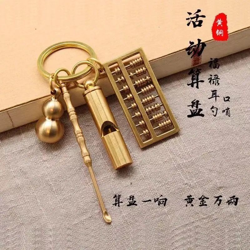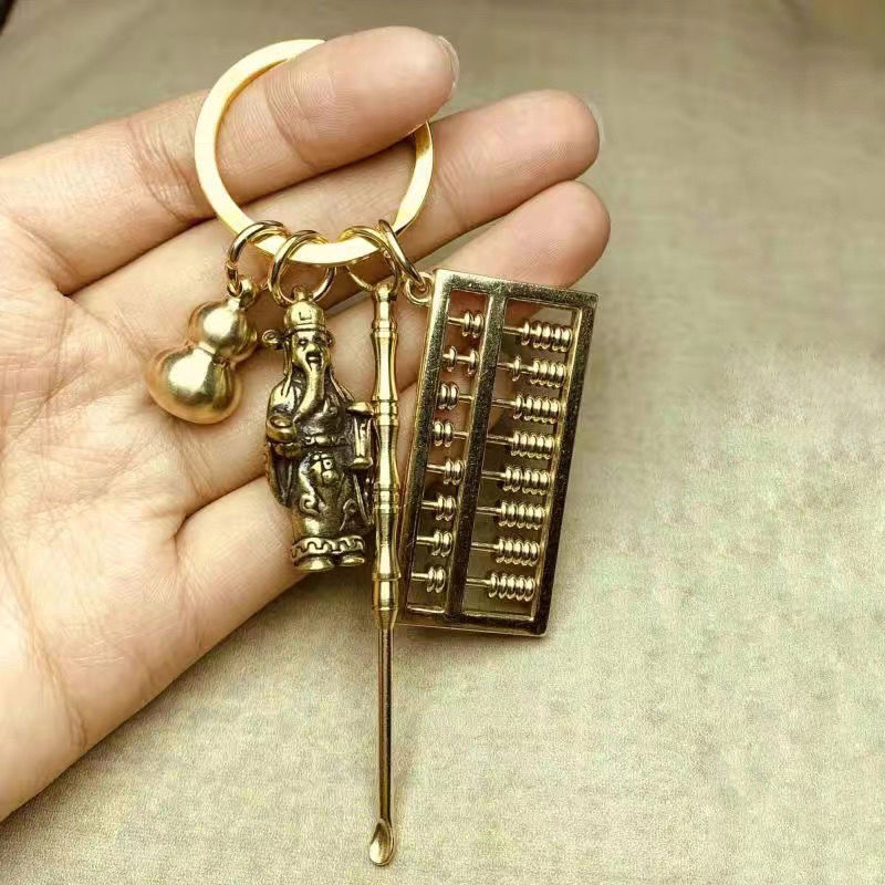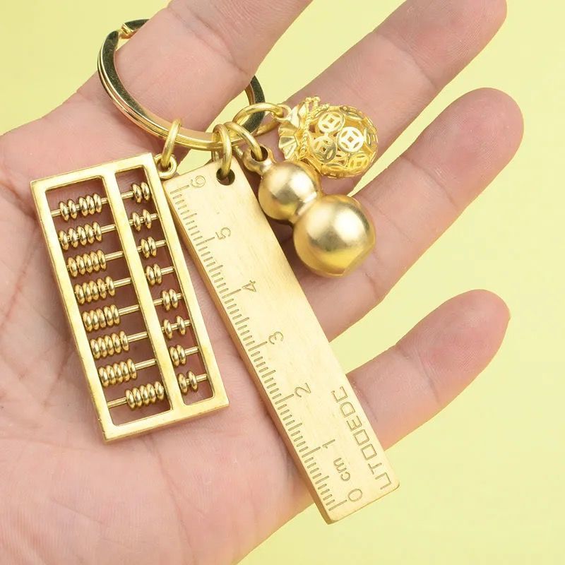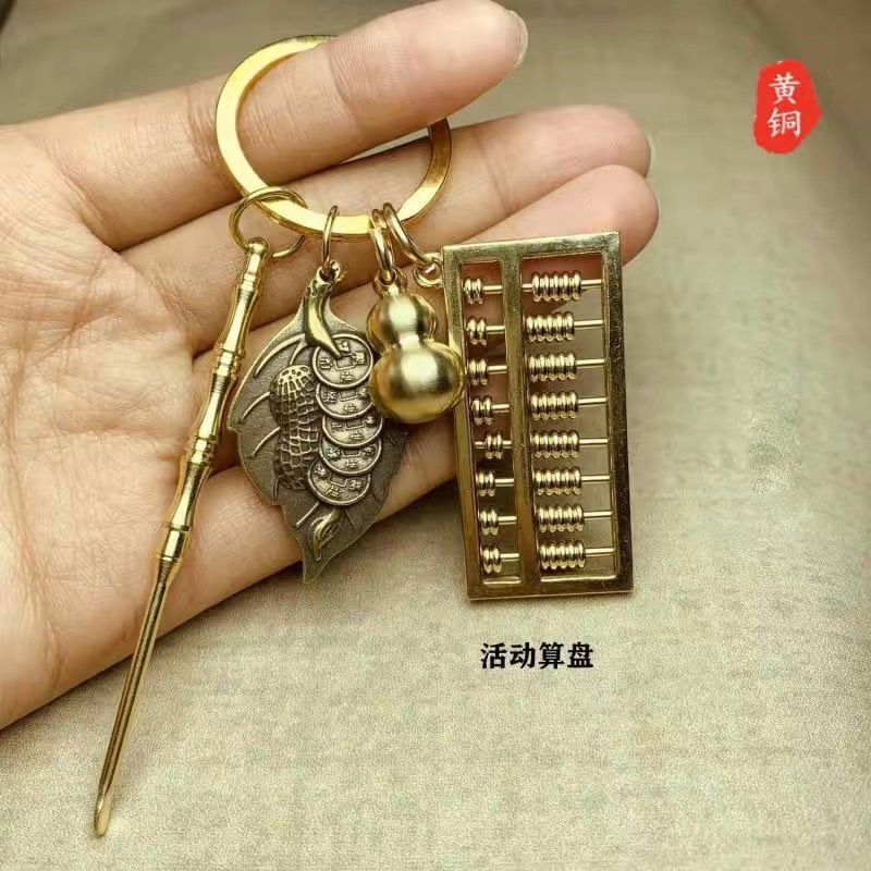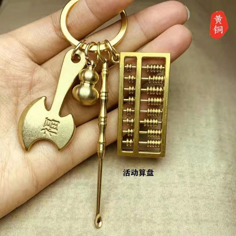 黄铜可拨动算盘钥匙扣葫芦挂件耳勺尺子小饰品钥匙链锁扣男女礼品
