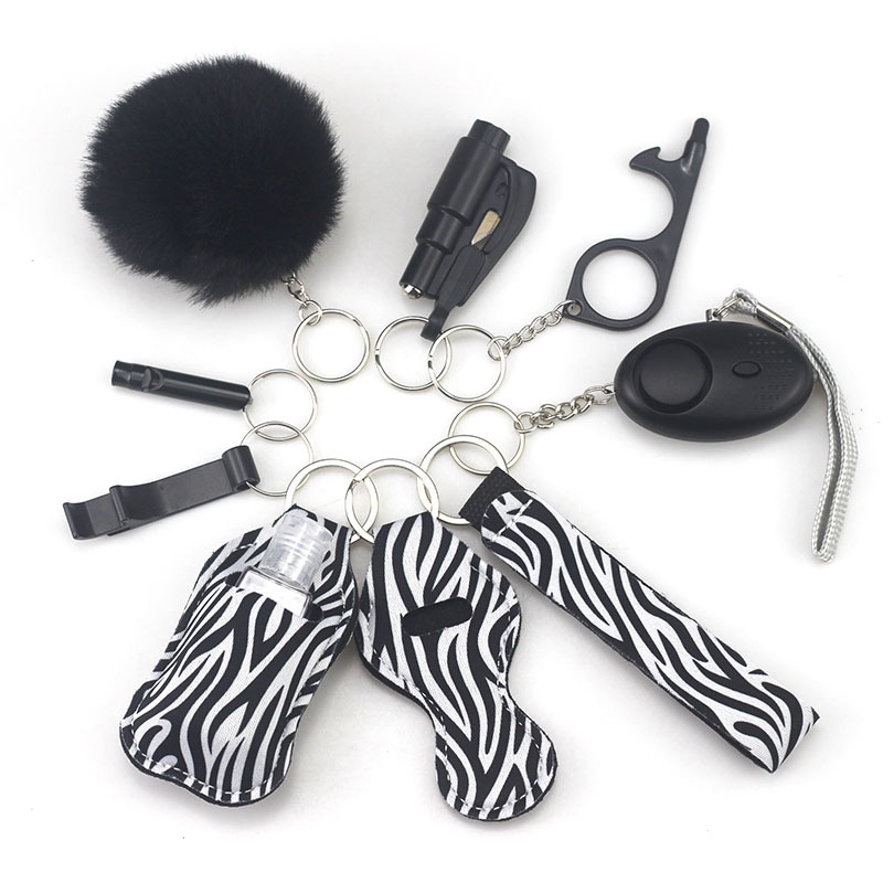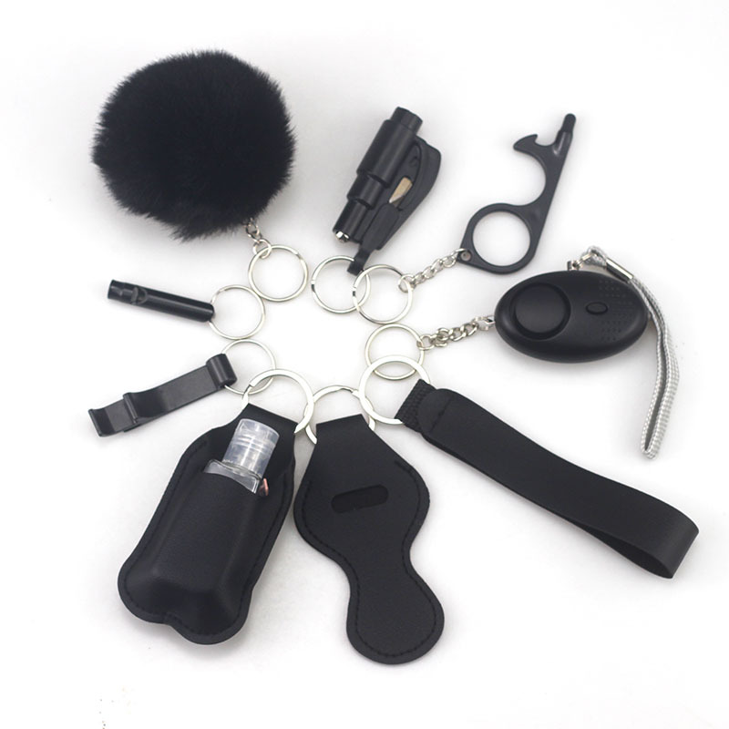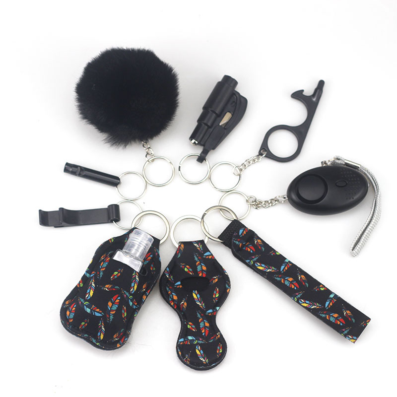 亚马逊户外防身手电报警器10件套钥匙扣饰品配件瓶便捷毛球挂件