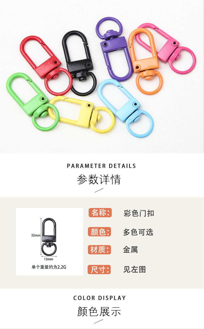 彩色合金烤漆小门扣钥匙扣狗扣diy饰品配件包包玩偶挂扣弹簧扣