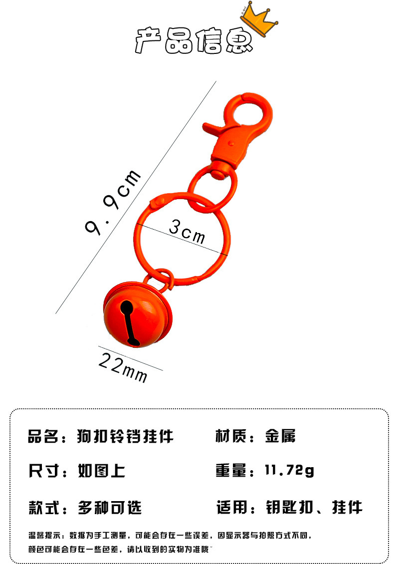 爆款铃铛DIY钥匙扣饰品可爱少女心包包配件彩色挂件钥匙圈diy手工